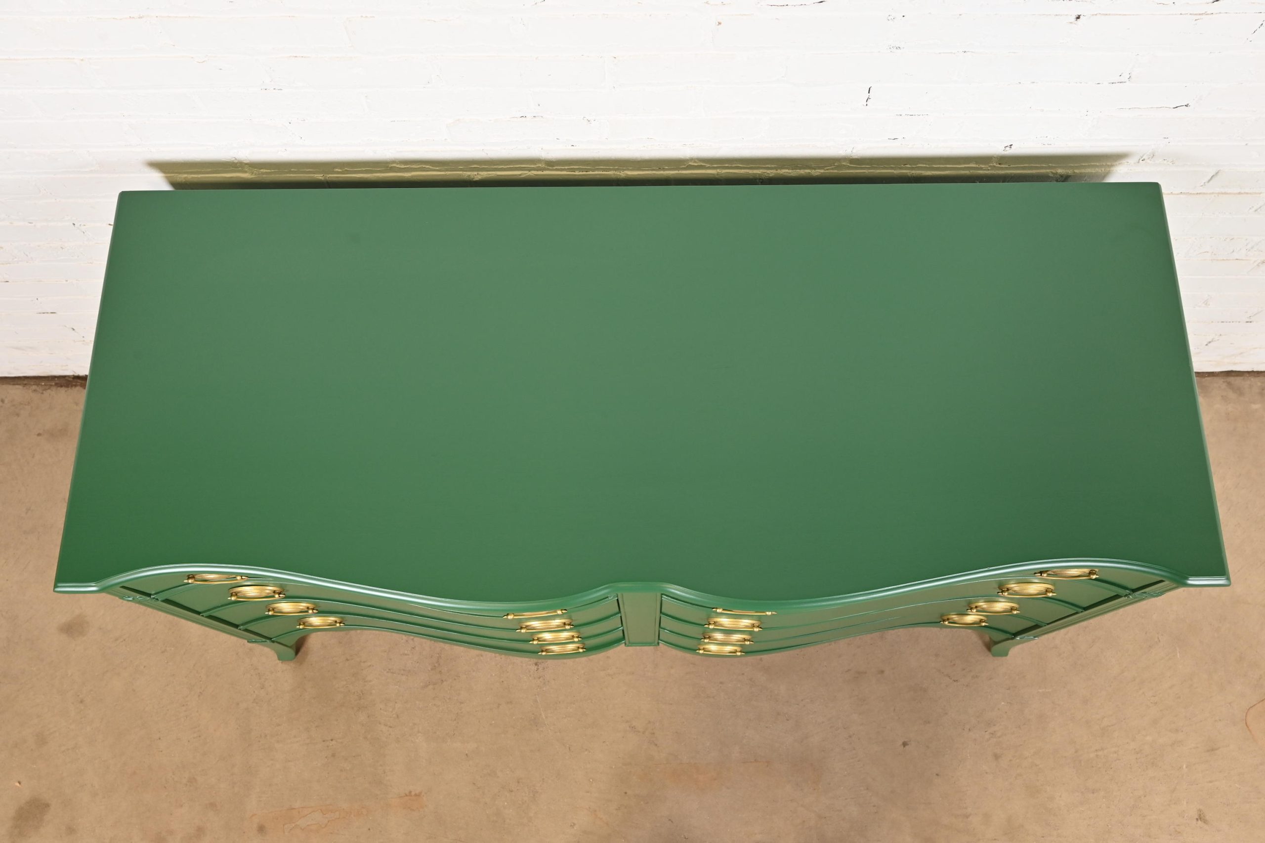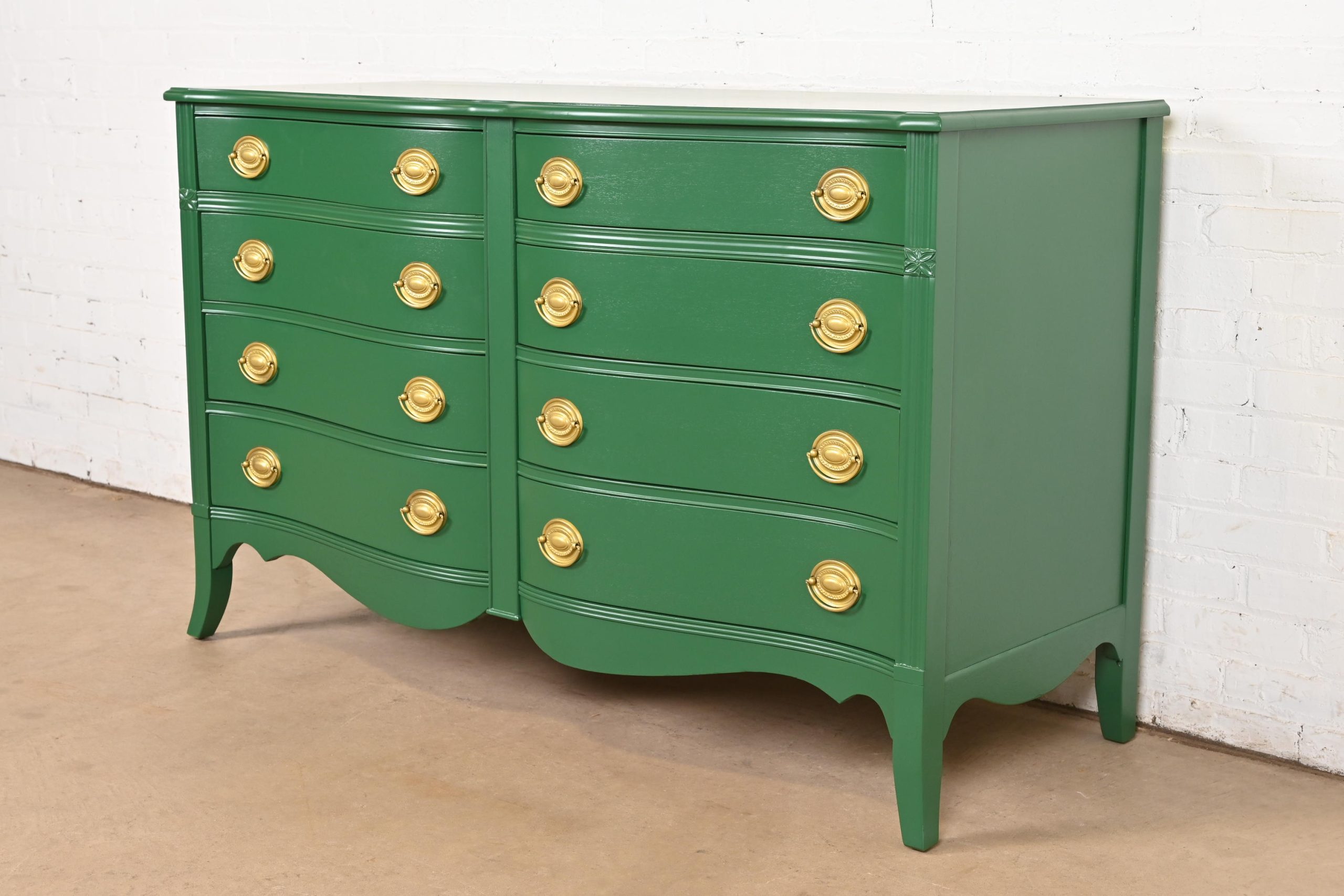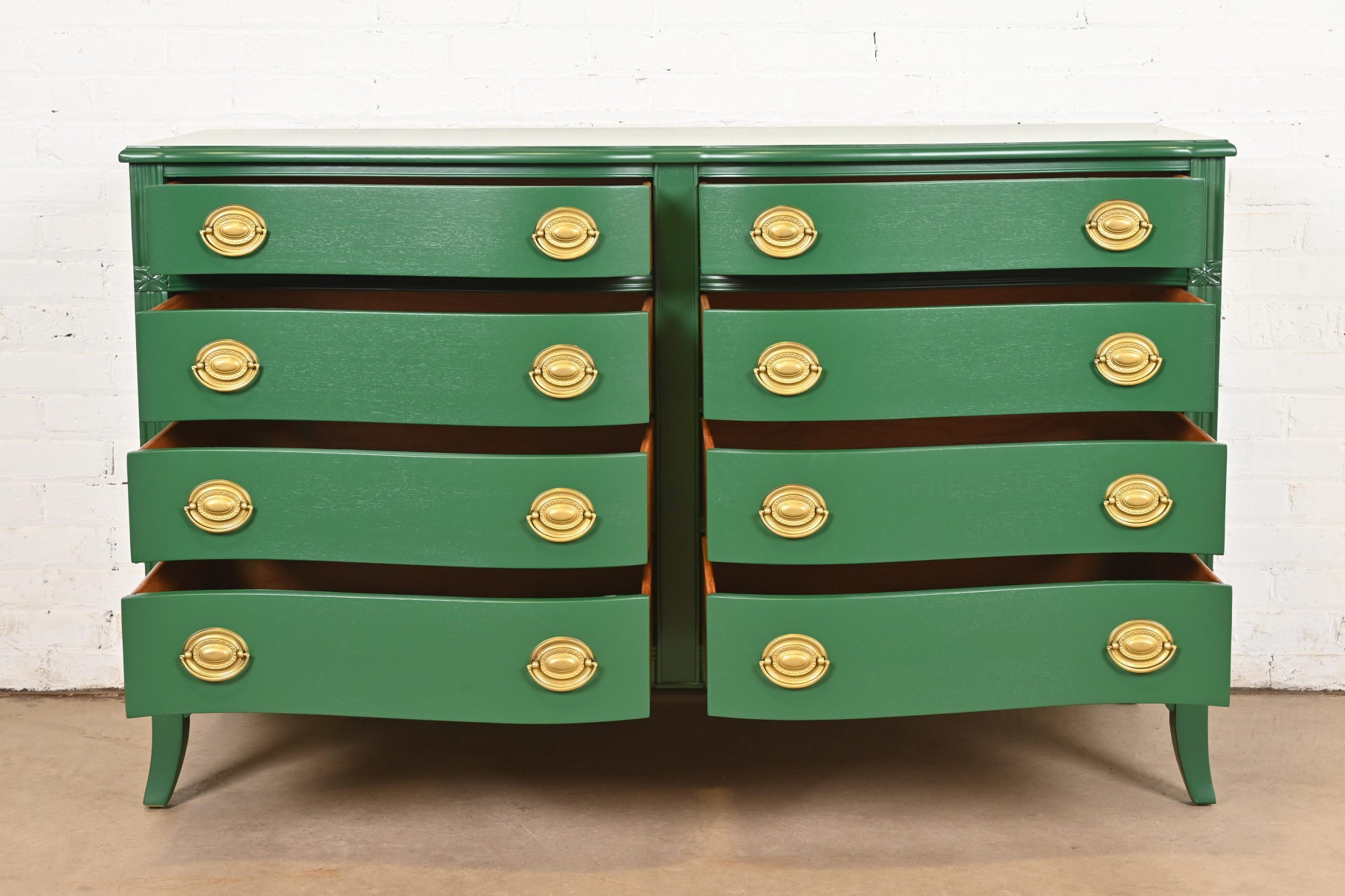 Baker Furniture Style Federal Green Lacquered Eight-Drawer Dresser, Newly Refinished