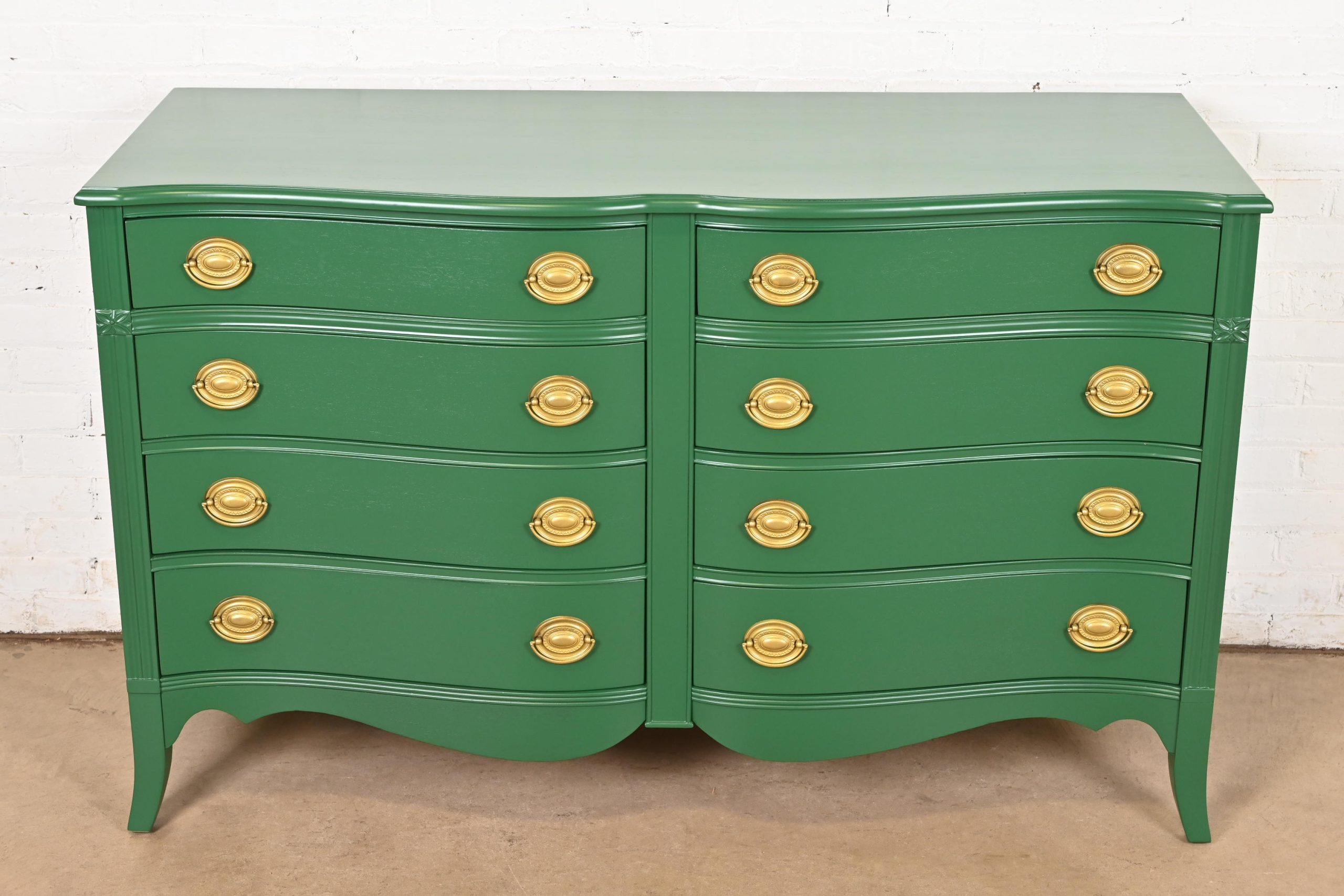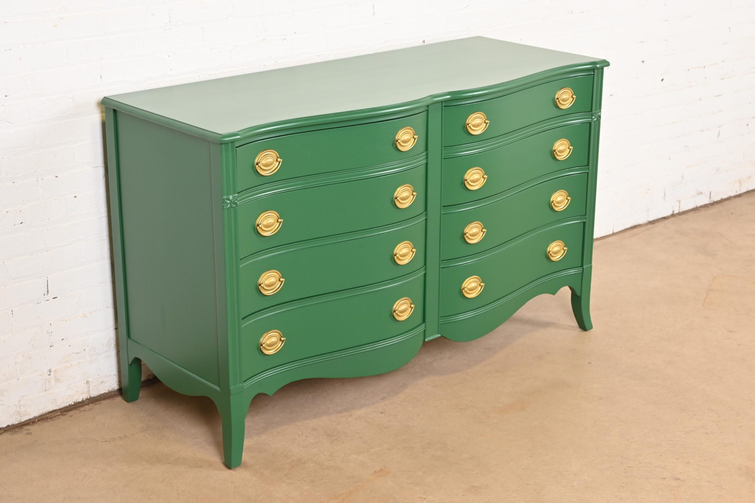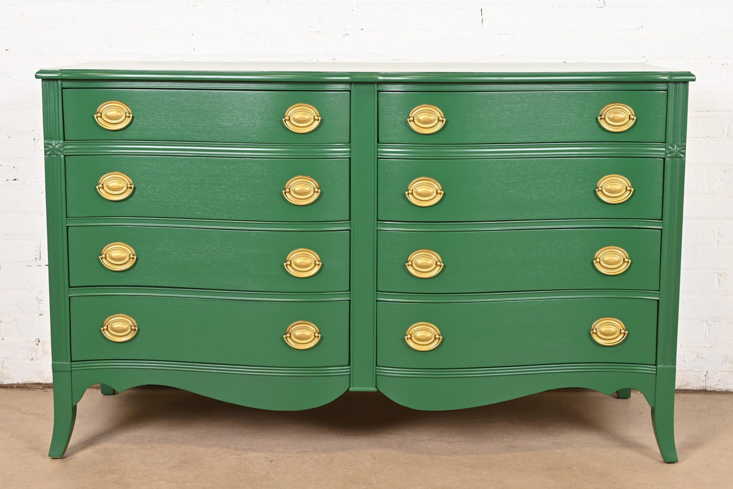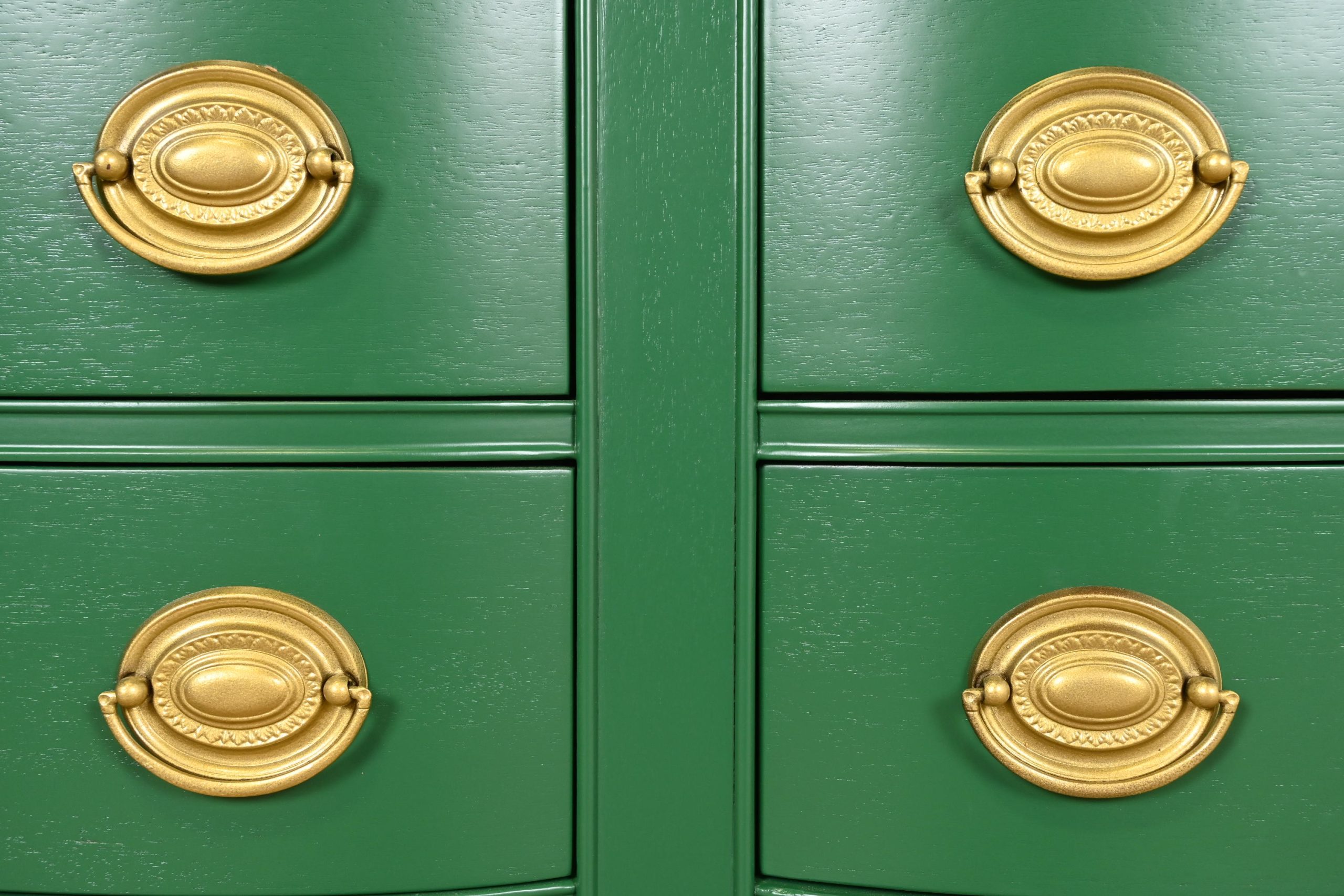 Baker Furniture Style Federal Green Lacquered Eight-Drawer Dresser, Newly Refinished