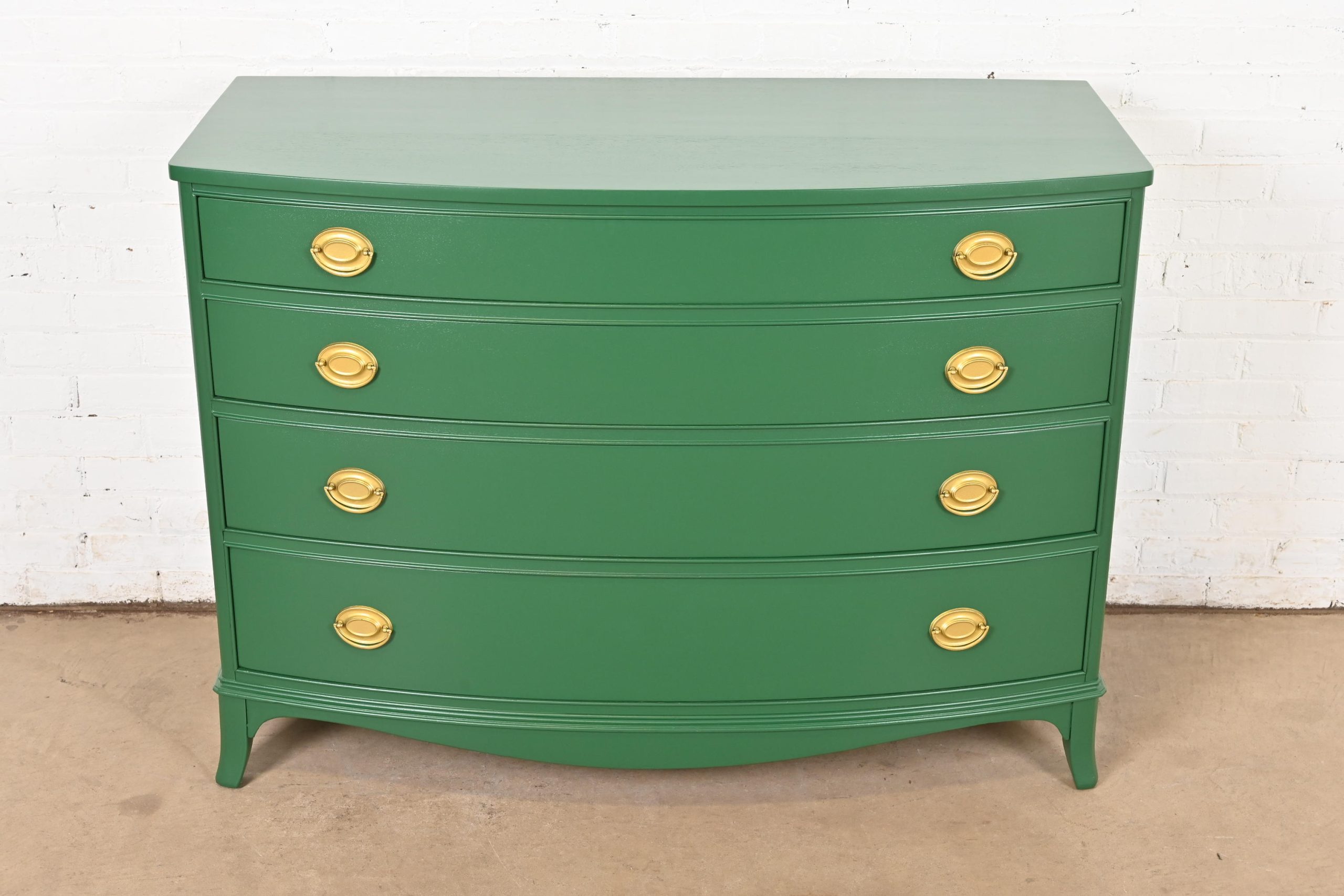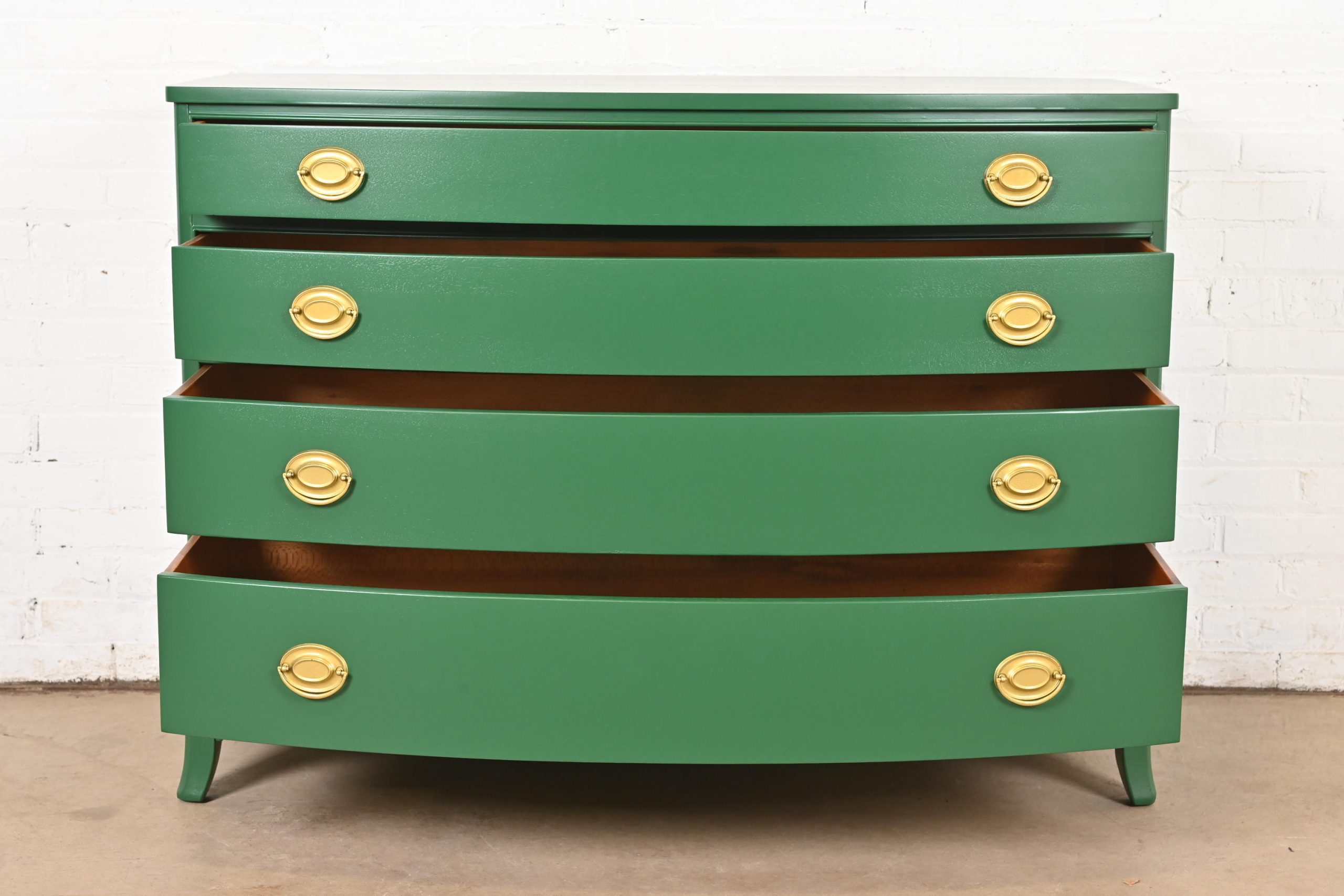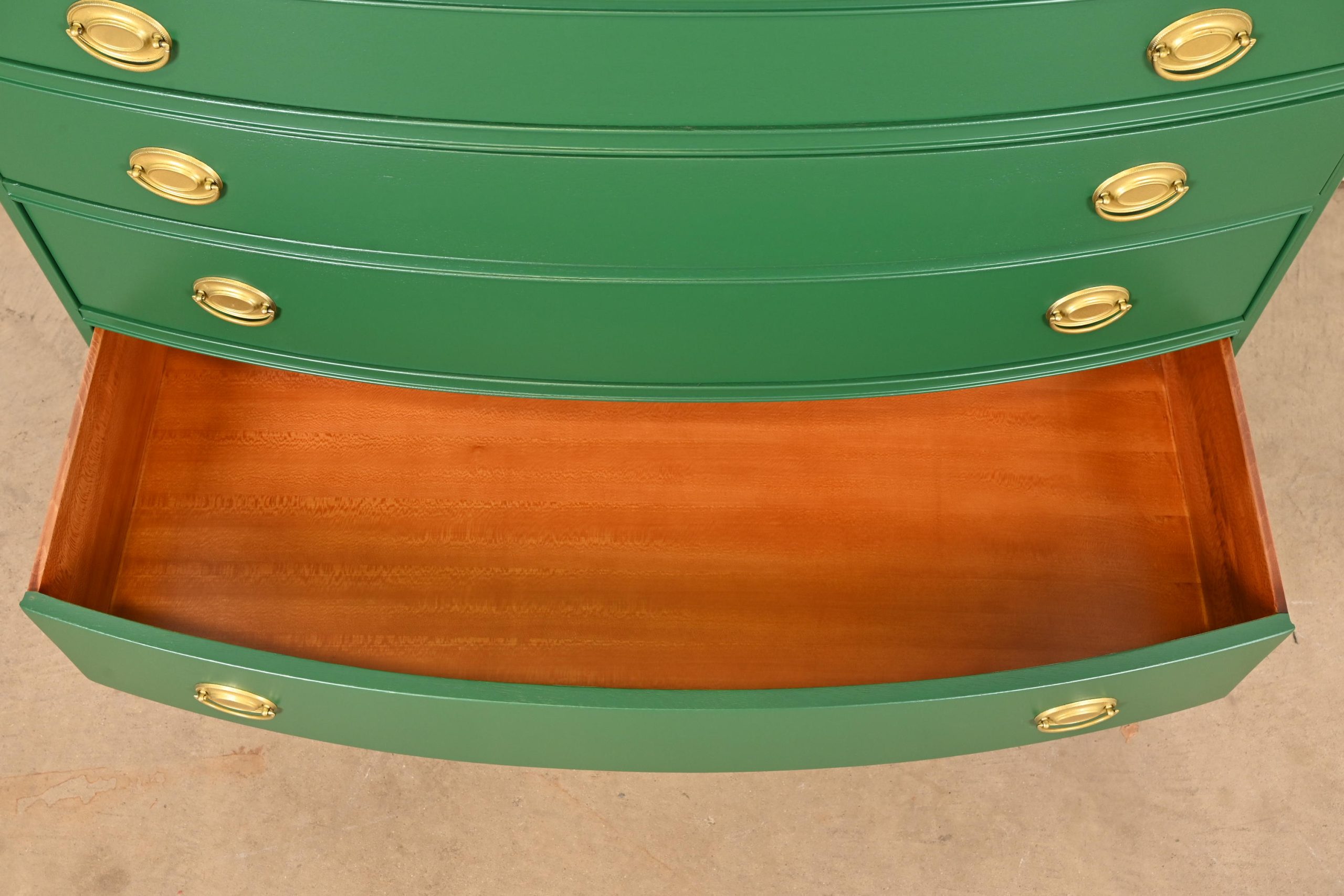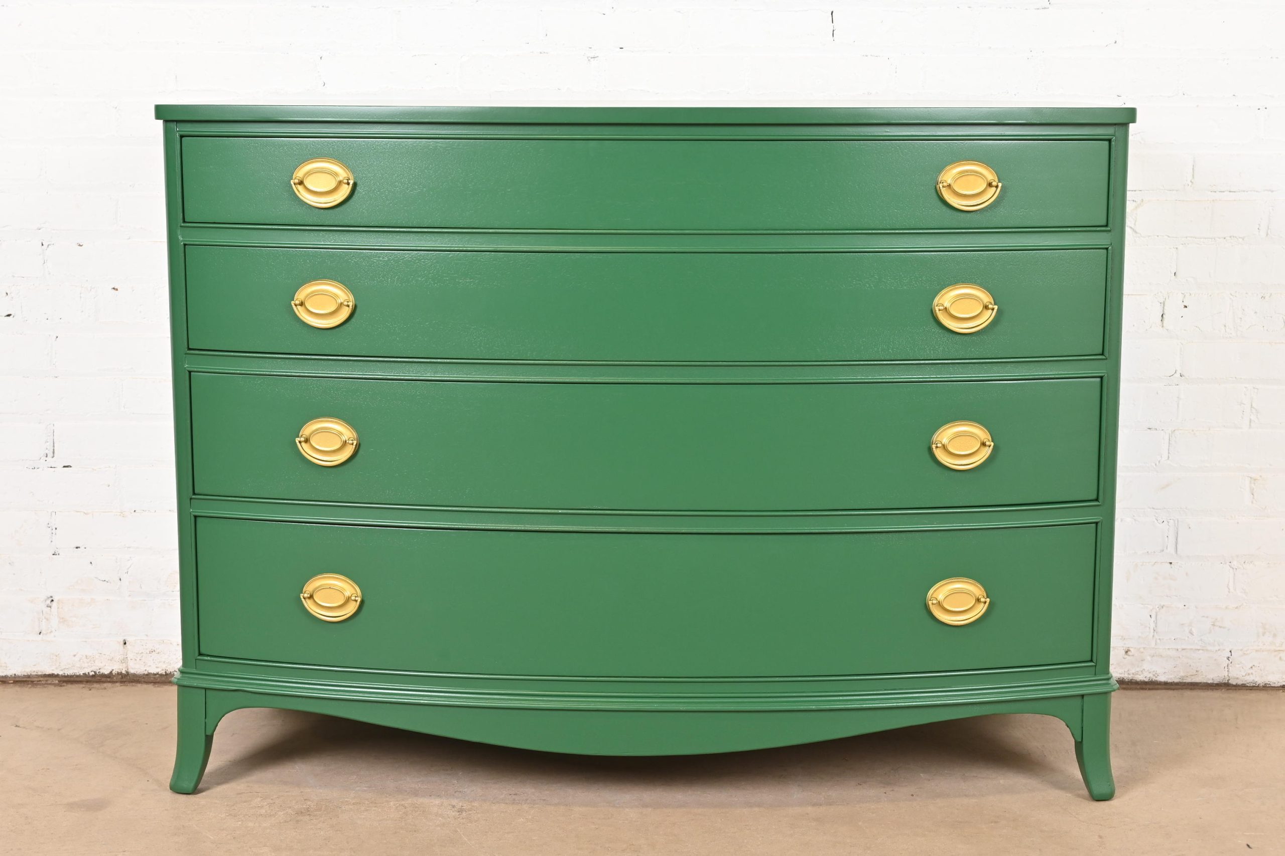 Baker Furniture Style Federal Green Lacquered Mahogany Bow Front Dresser Chest, Newly Refinished