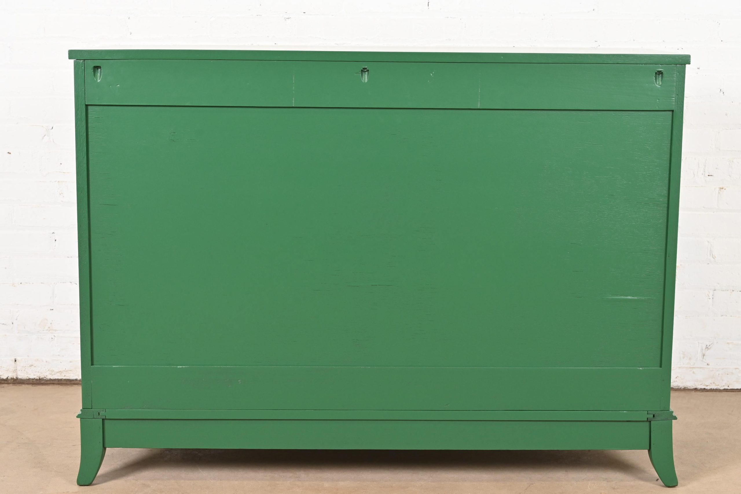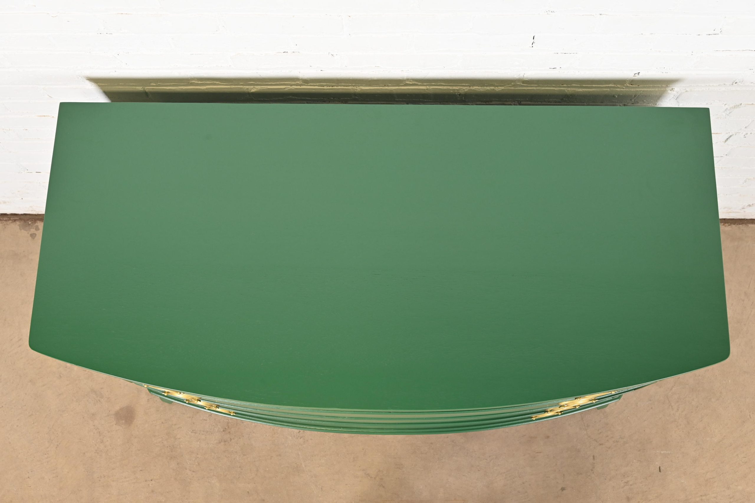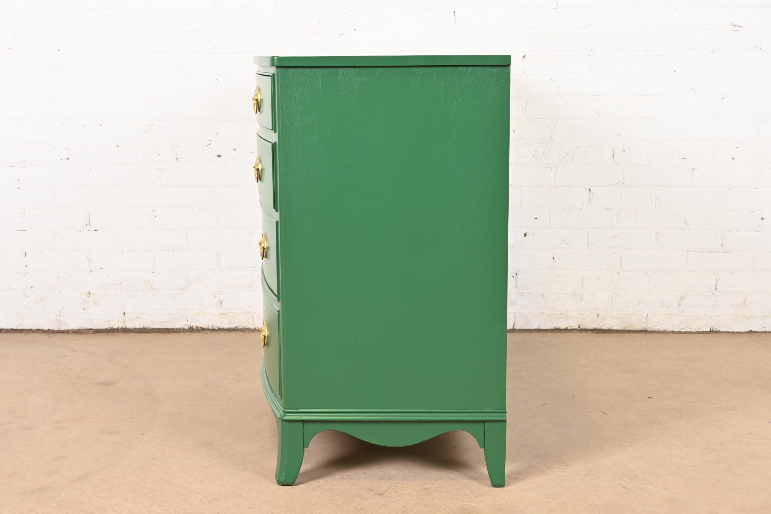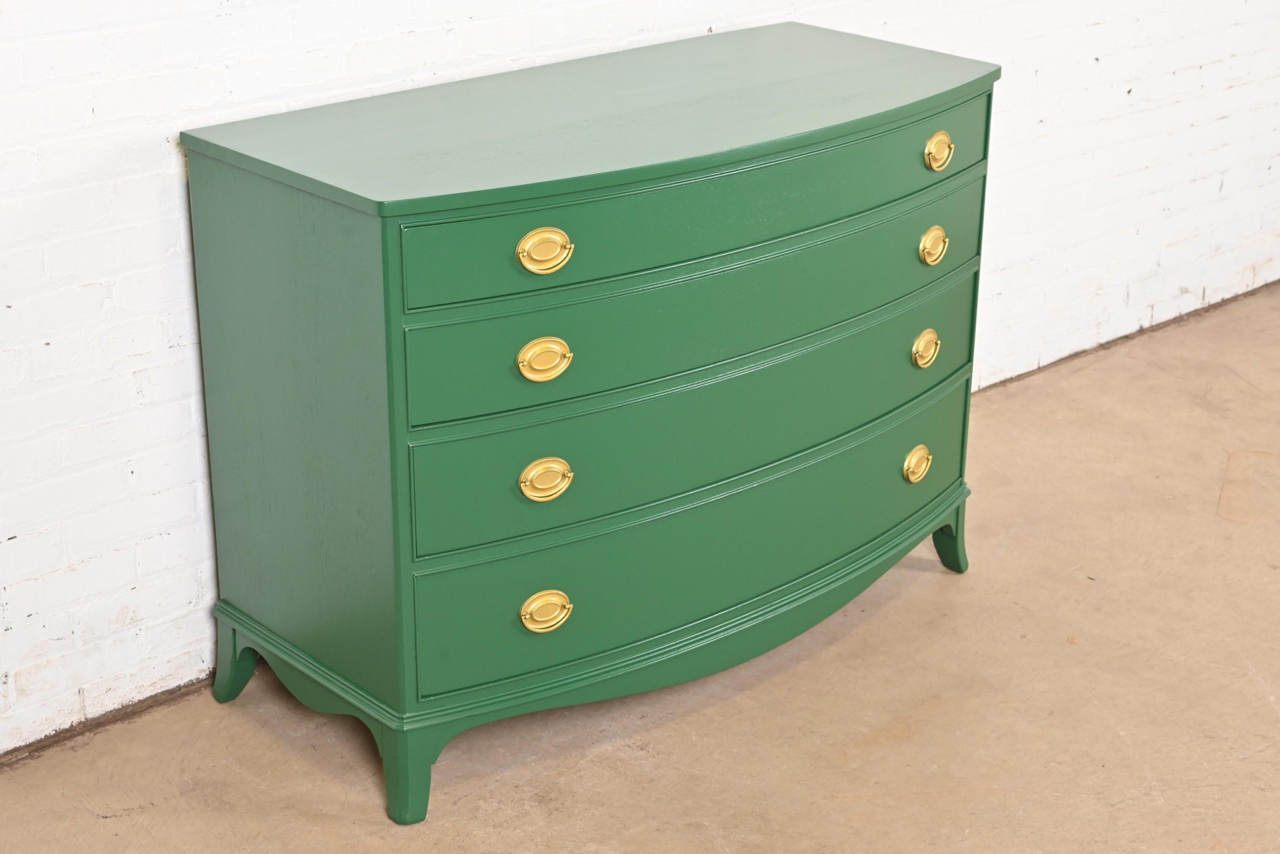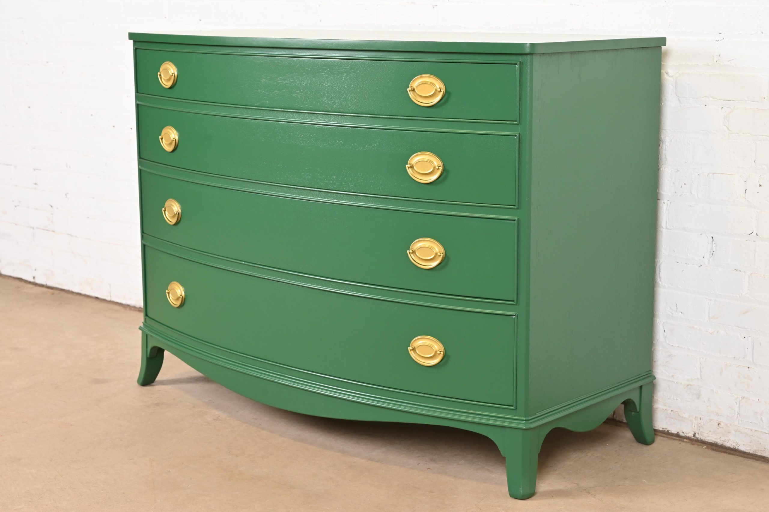 Baker Furniture Style Federal Green Lacquered Mahogany Bow Front Dresser Chest, Newly Refinished