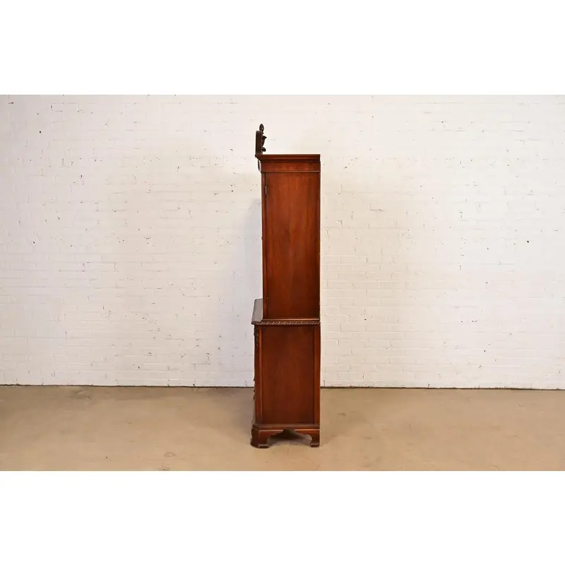 Baker Furniture Style Georgian Burled Mahogany Breakfront Bookcase Cabinet, Circa 1960s