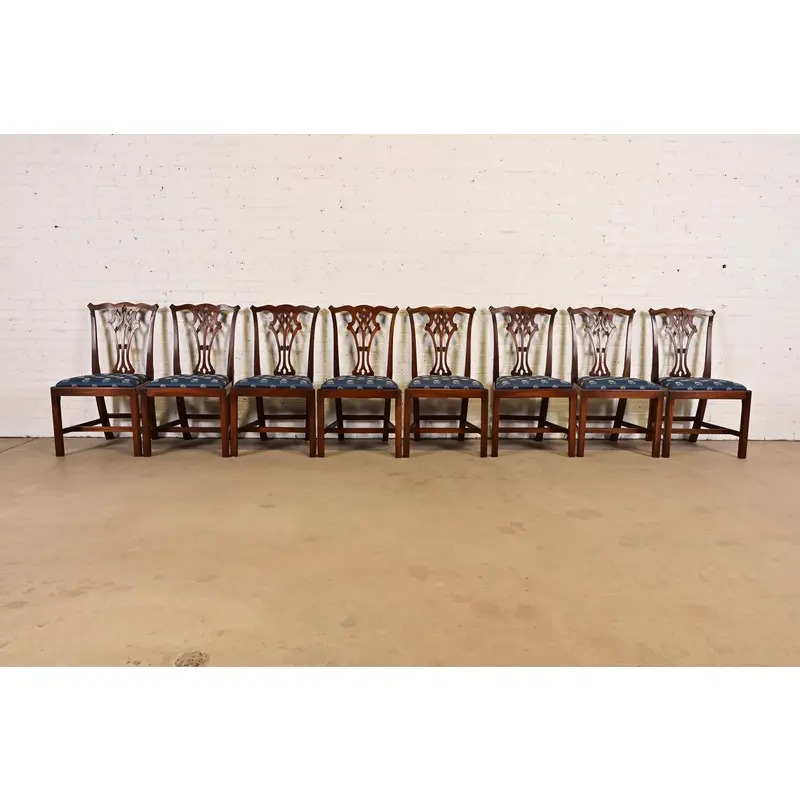 A gorgeous set of eight Georgian or Chippendale style dining chairs