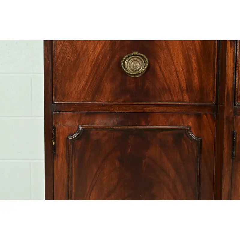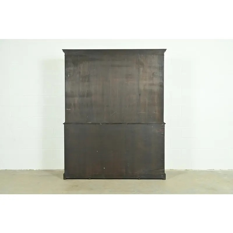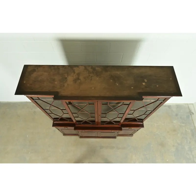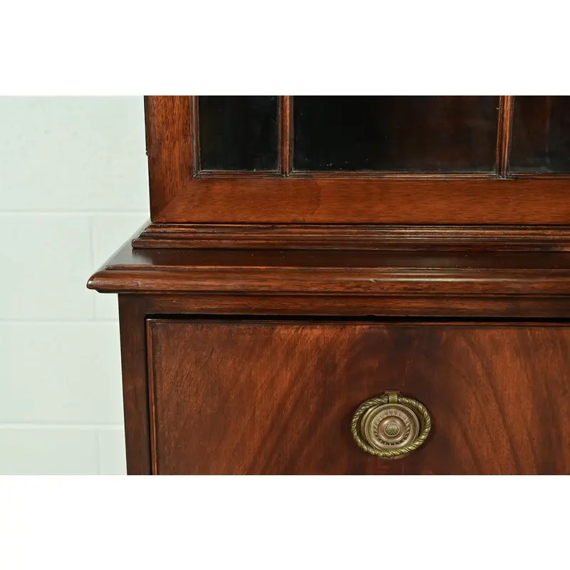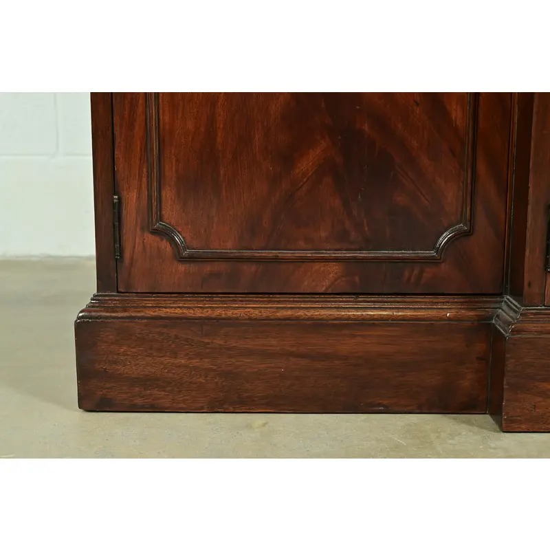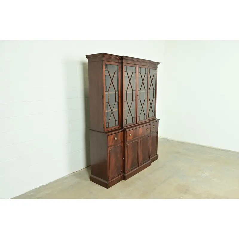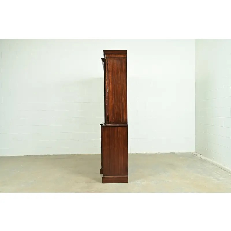 Baker Furniture Style Georgian Flame Mahogany Breakfront Bookcase Cabinet With Drop Front Secretary Desk