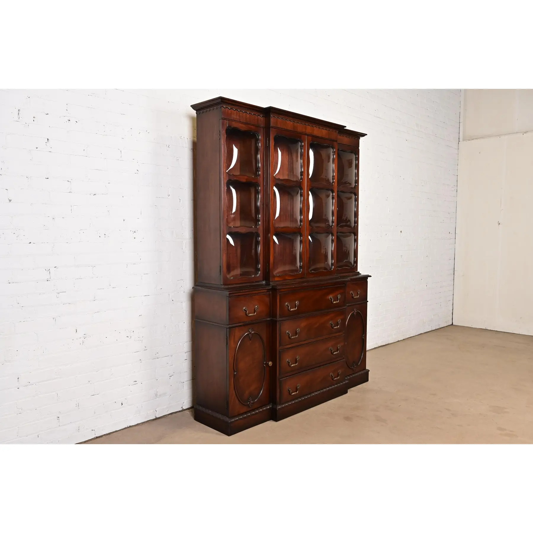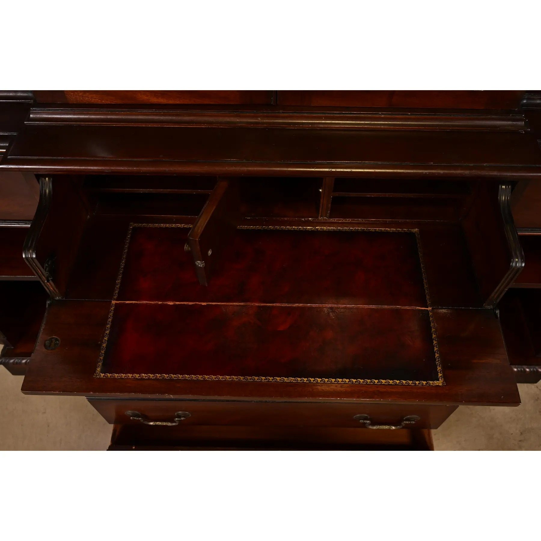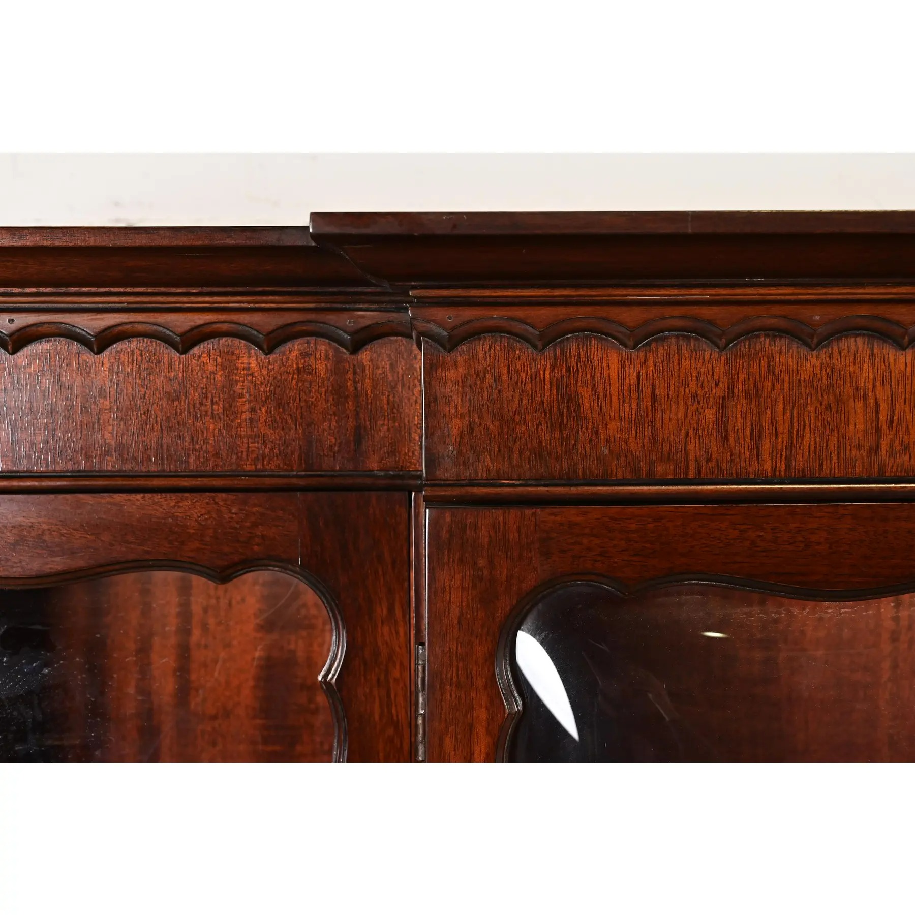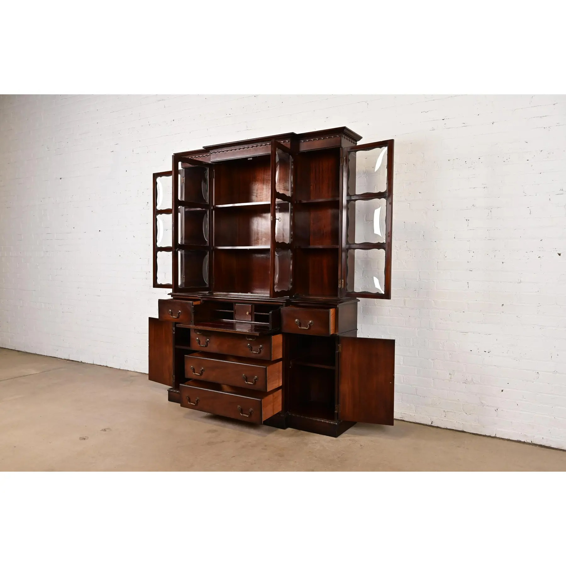 A beautiful Georgian or Chippendale style breakfront bookcase or dining cabinet with drop front secretary desk