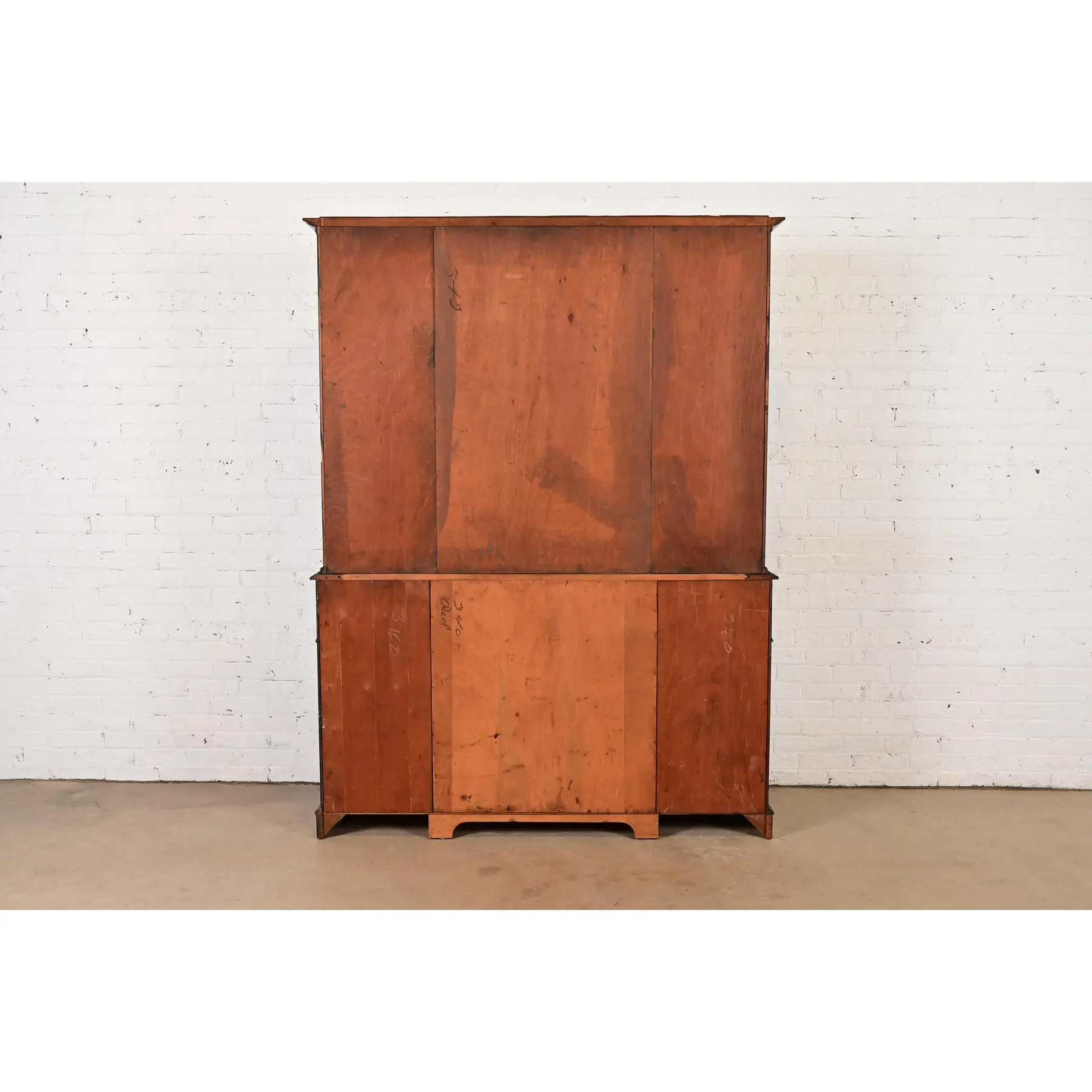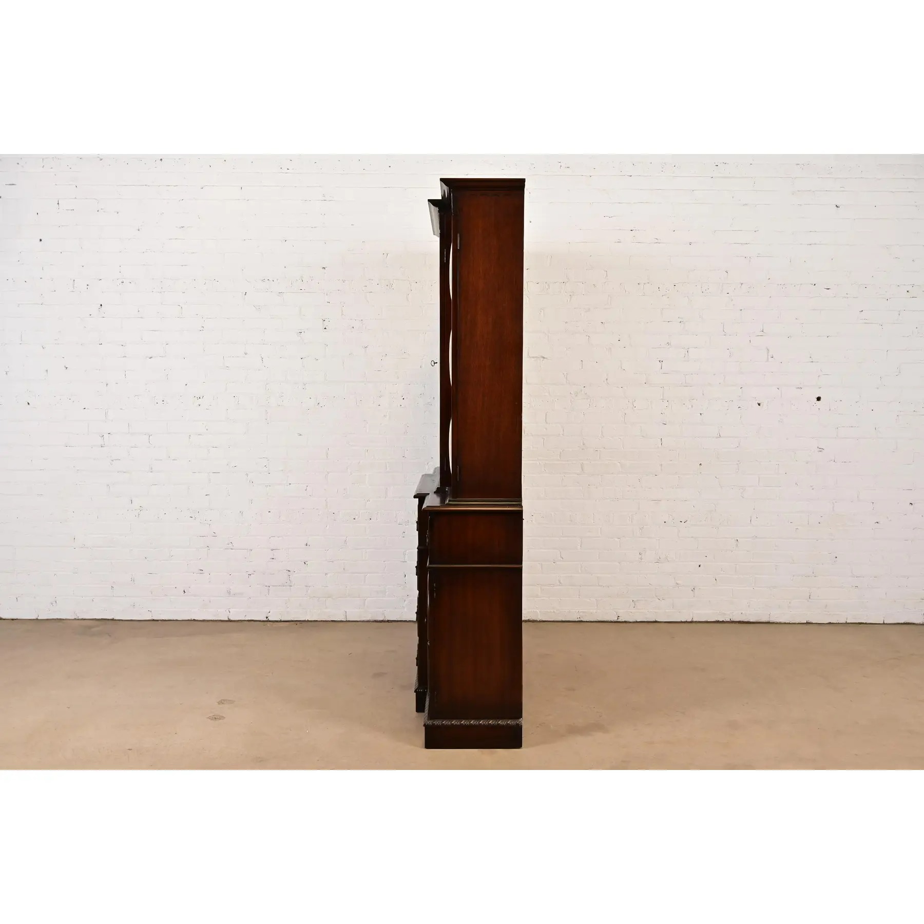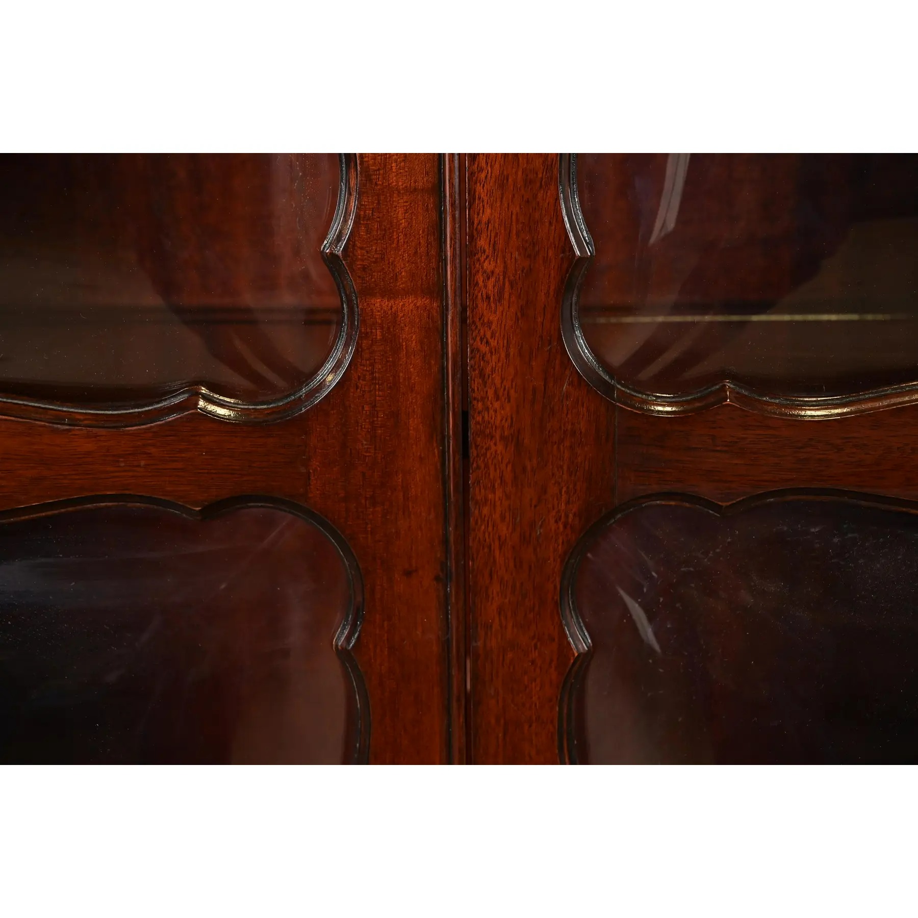 Stunning mahogany, with bubble glass front doors, embossed leather writing desk, and original brass hardware.