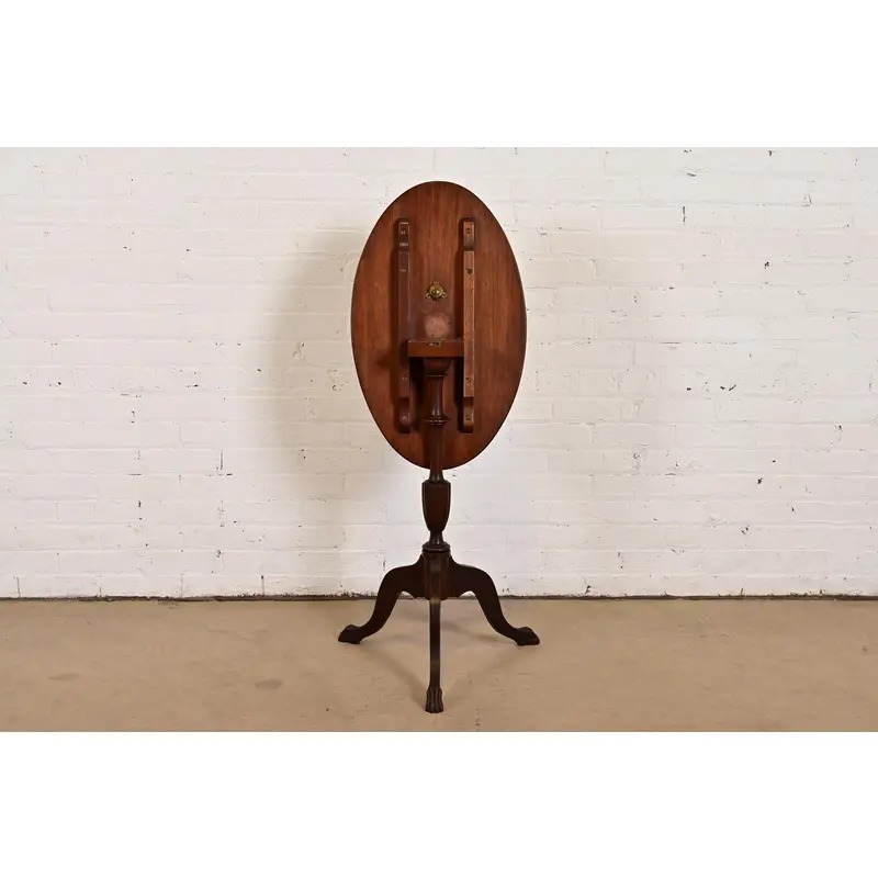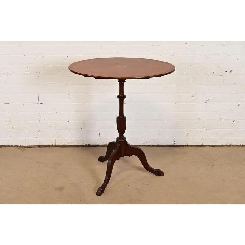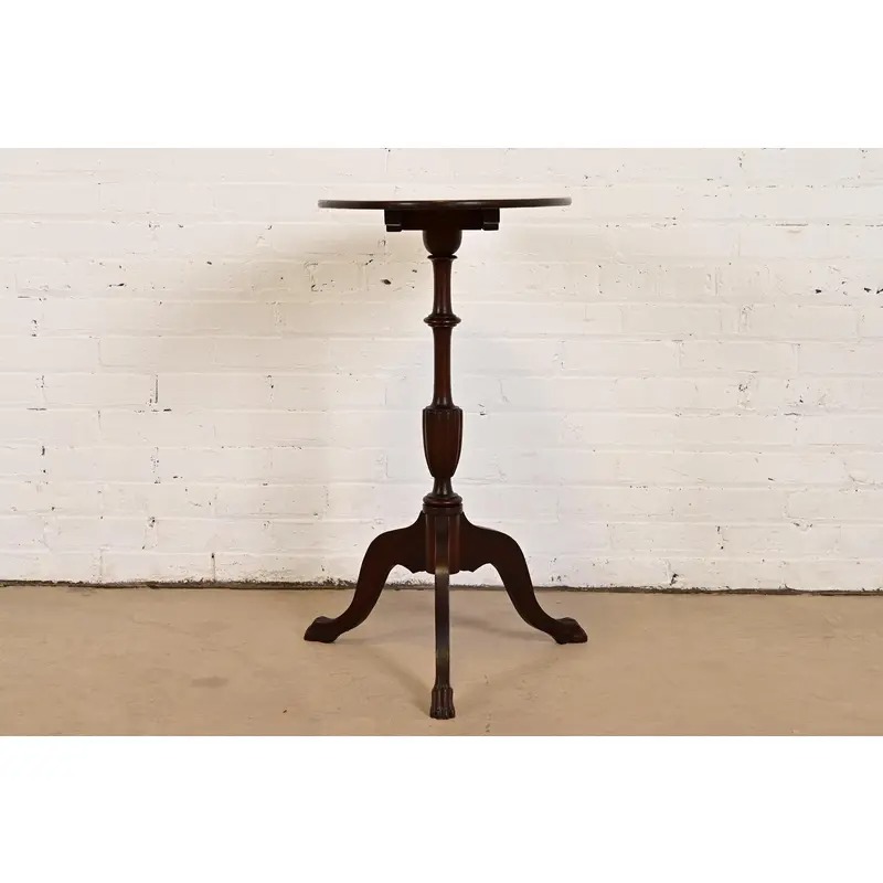 A gorgeous Georgian or Chippendale style solid tilt-top pedestal side table or tea table