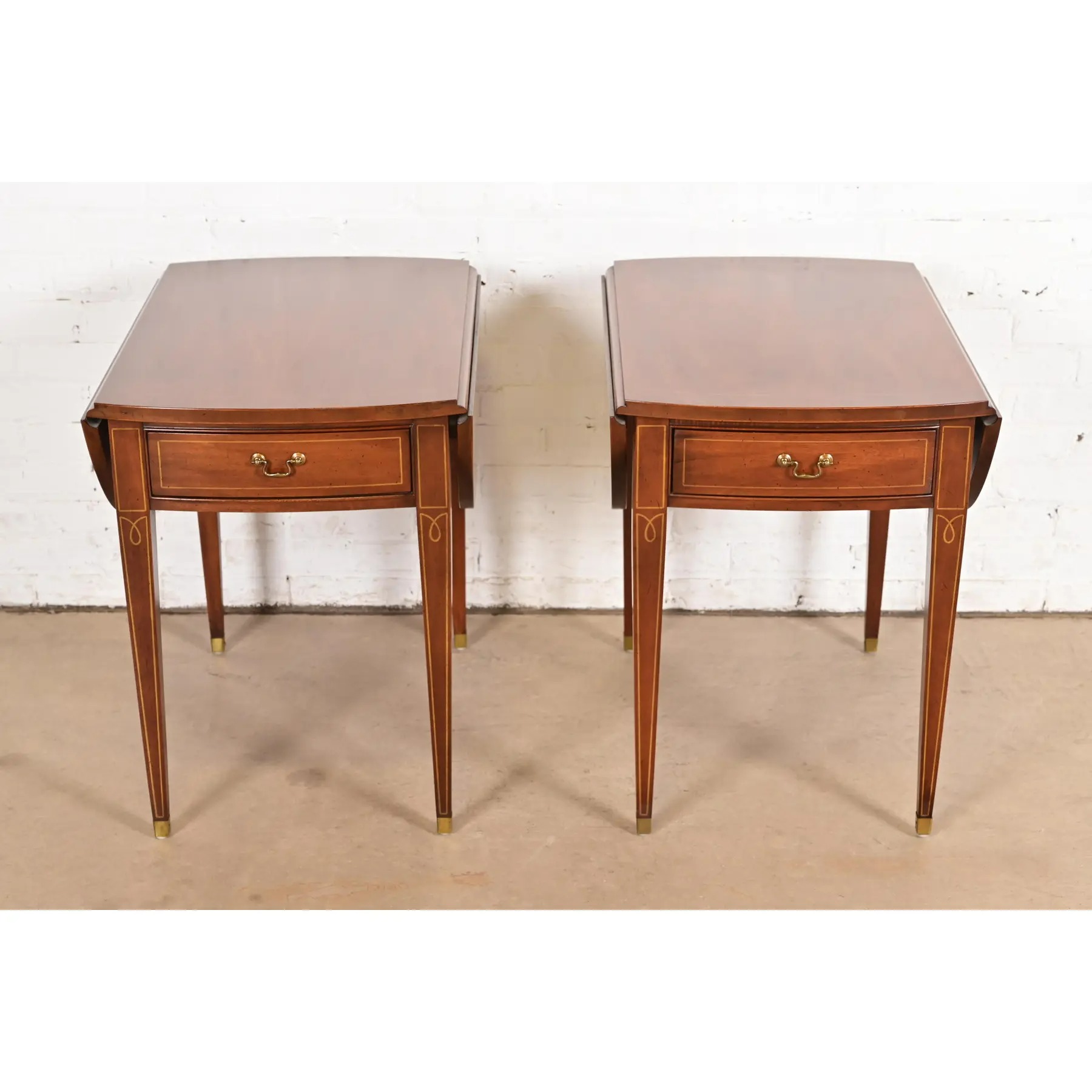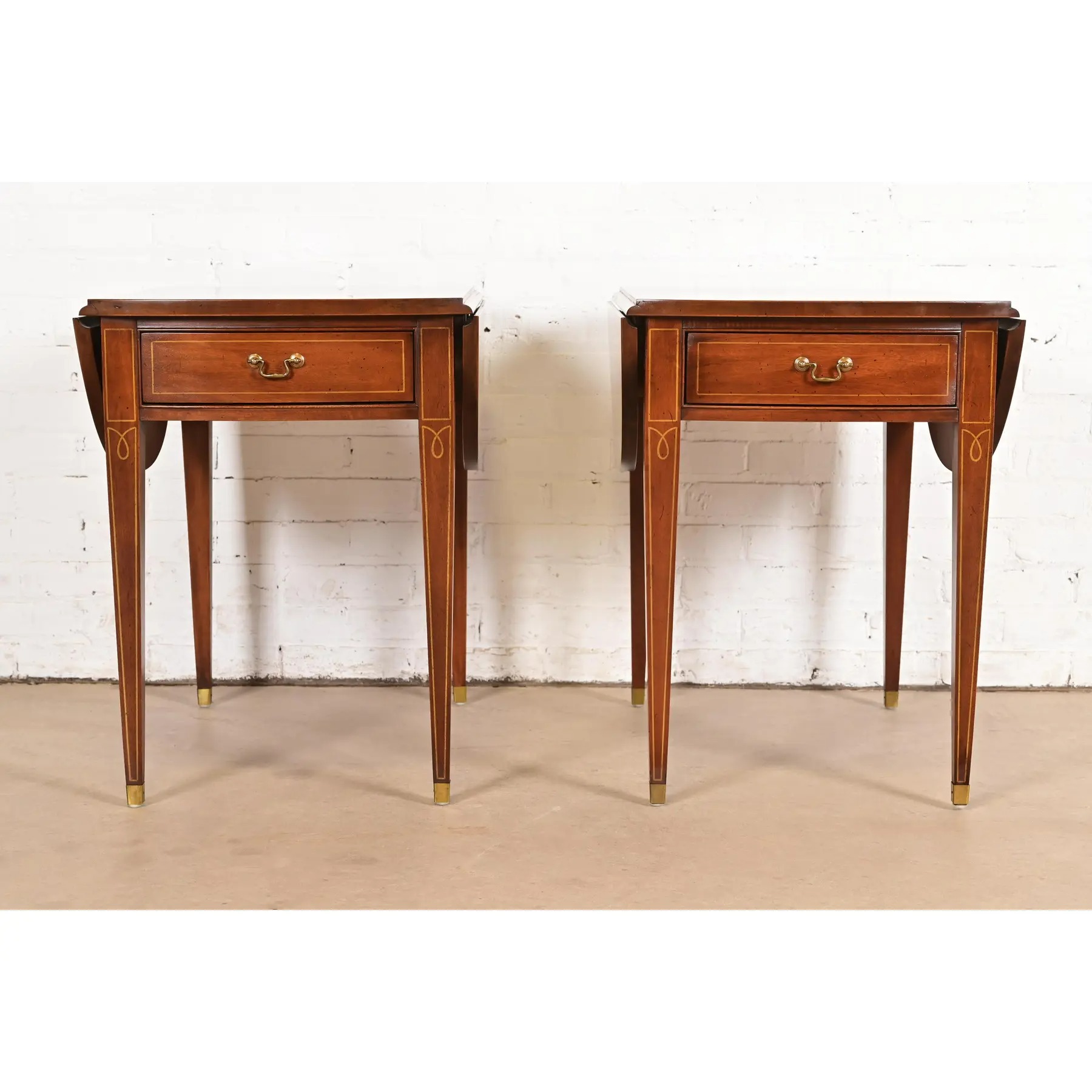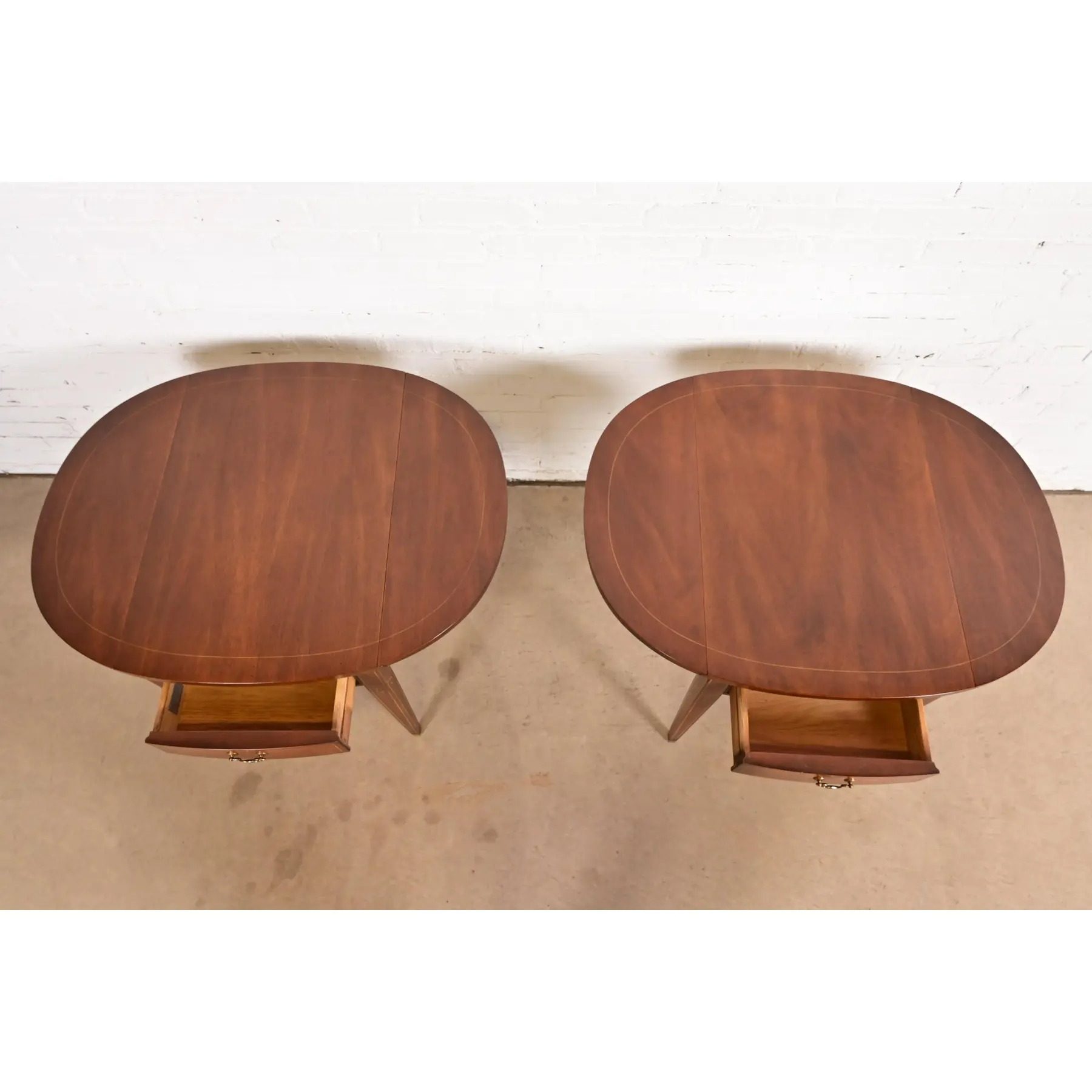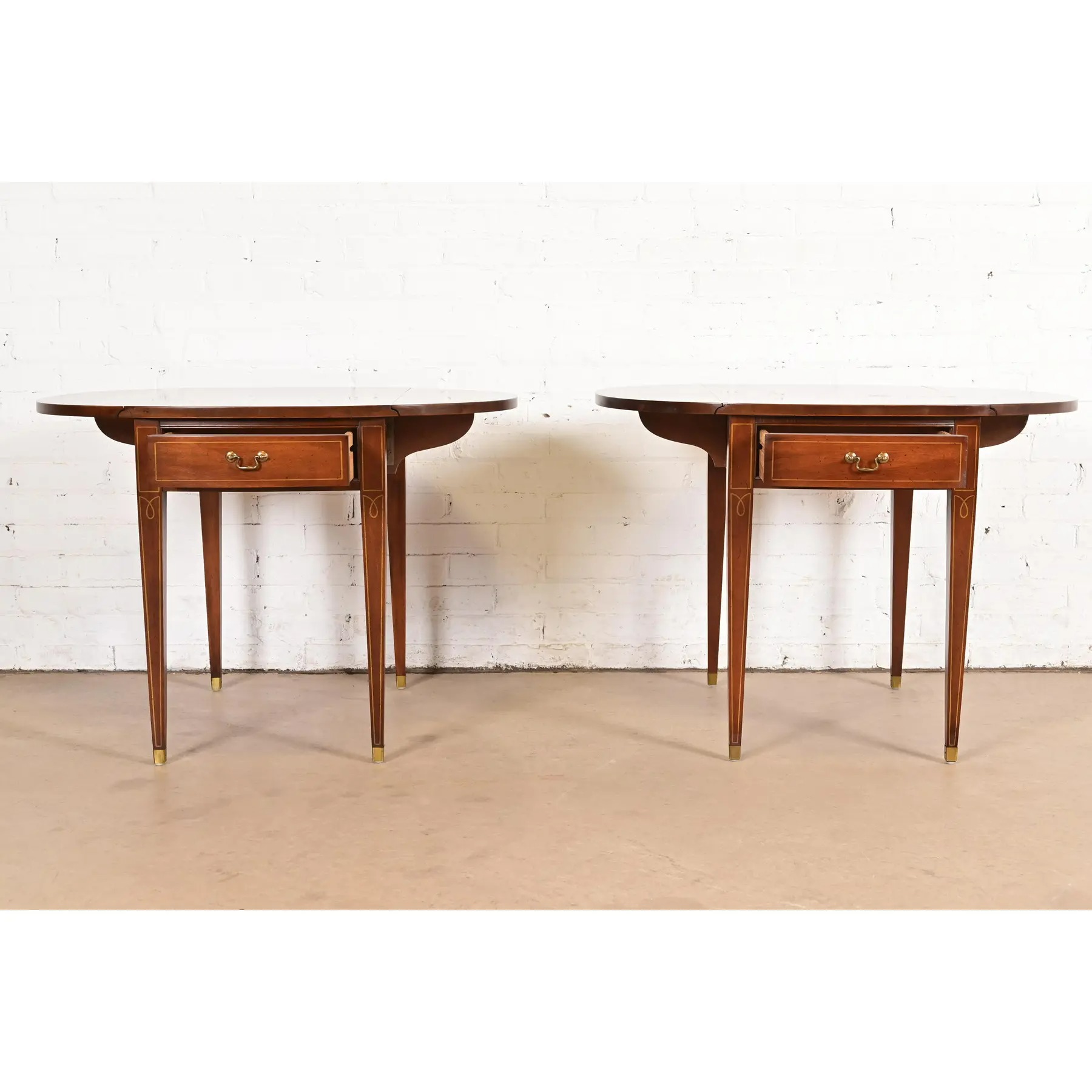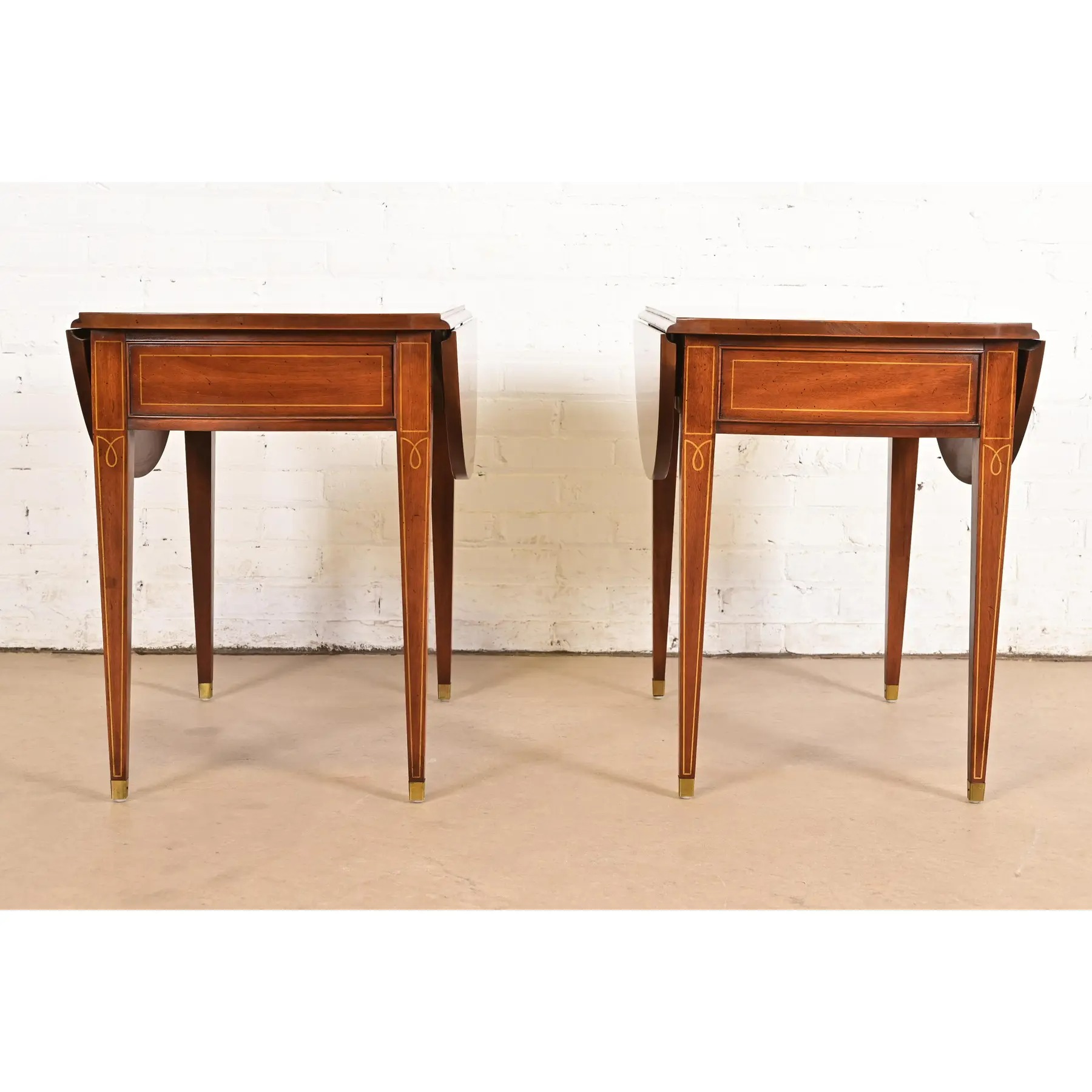 Baker Furniture Style Mahogany Drop Leaf Pembroke Side Tables, Pair