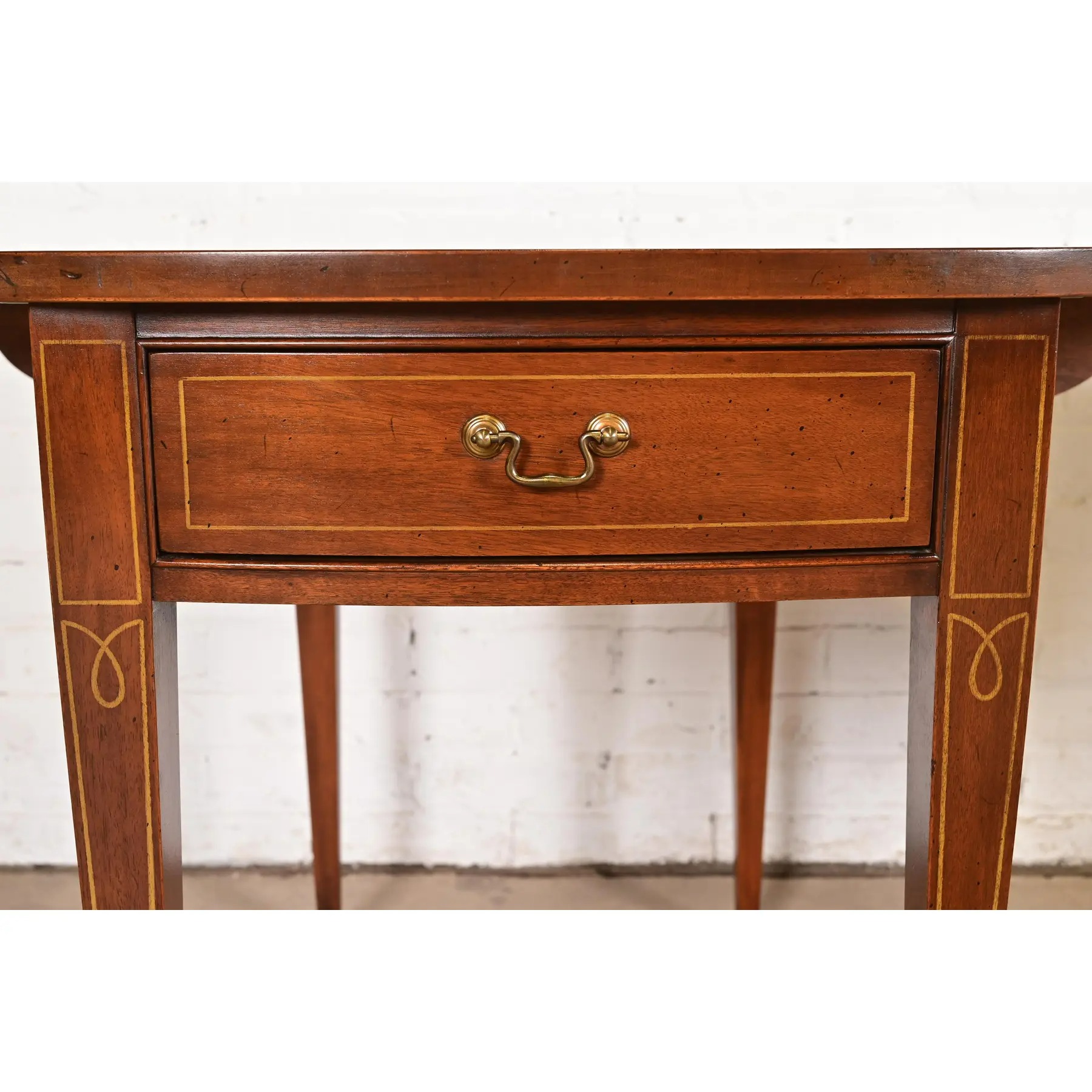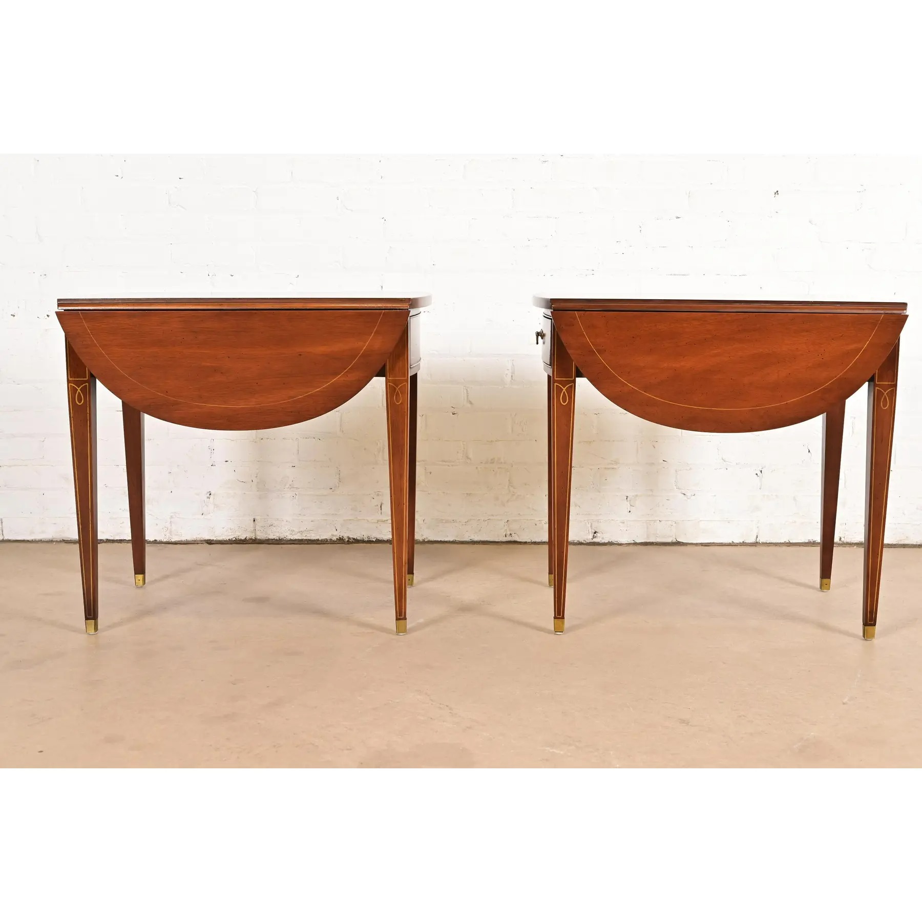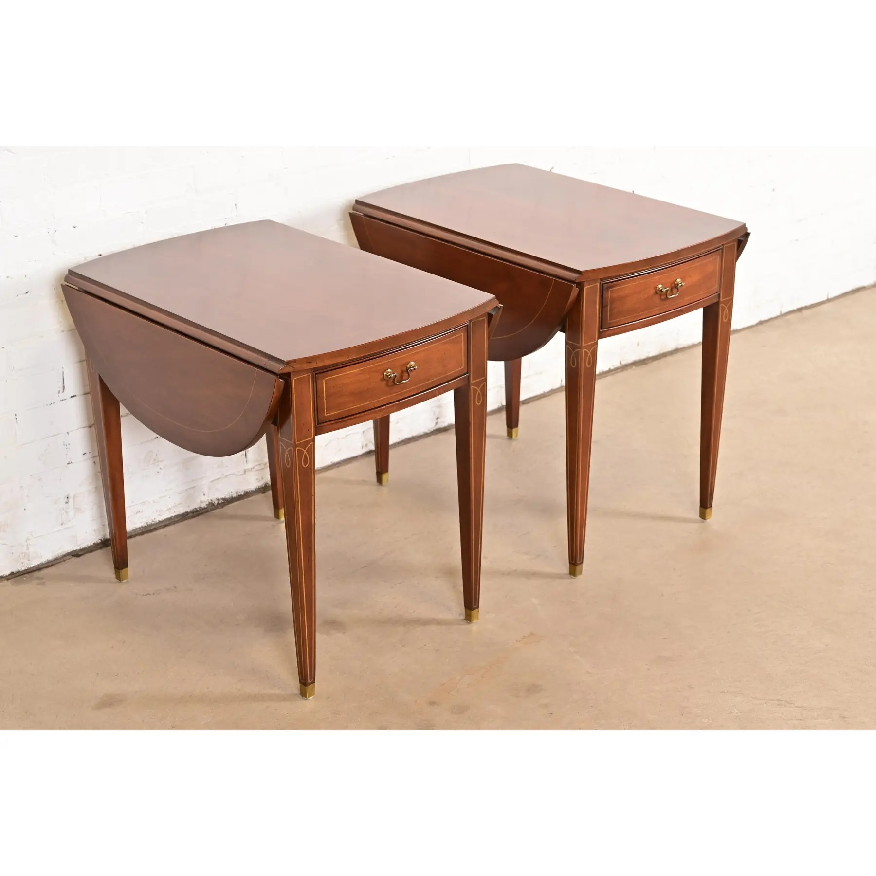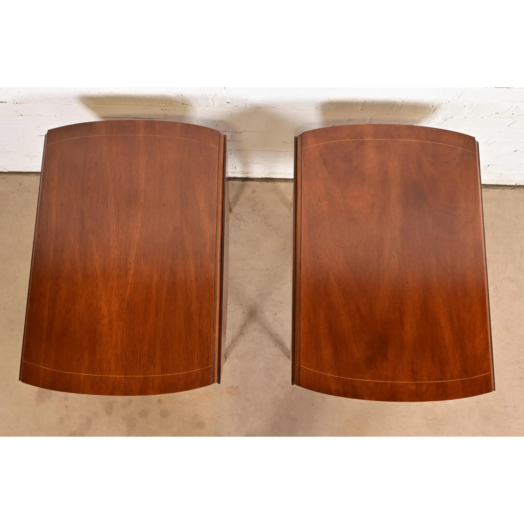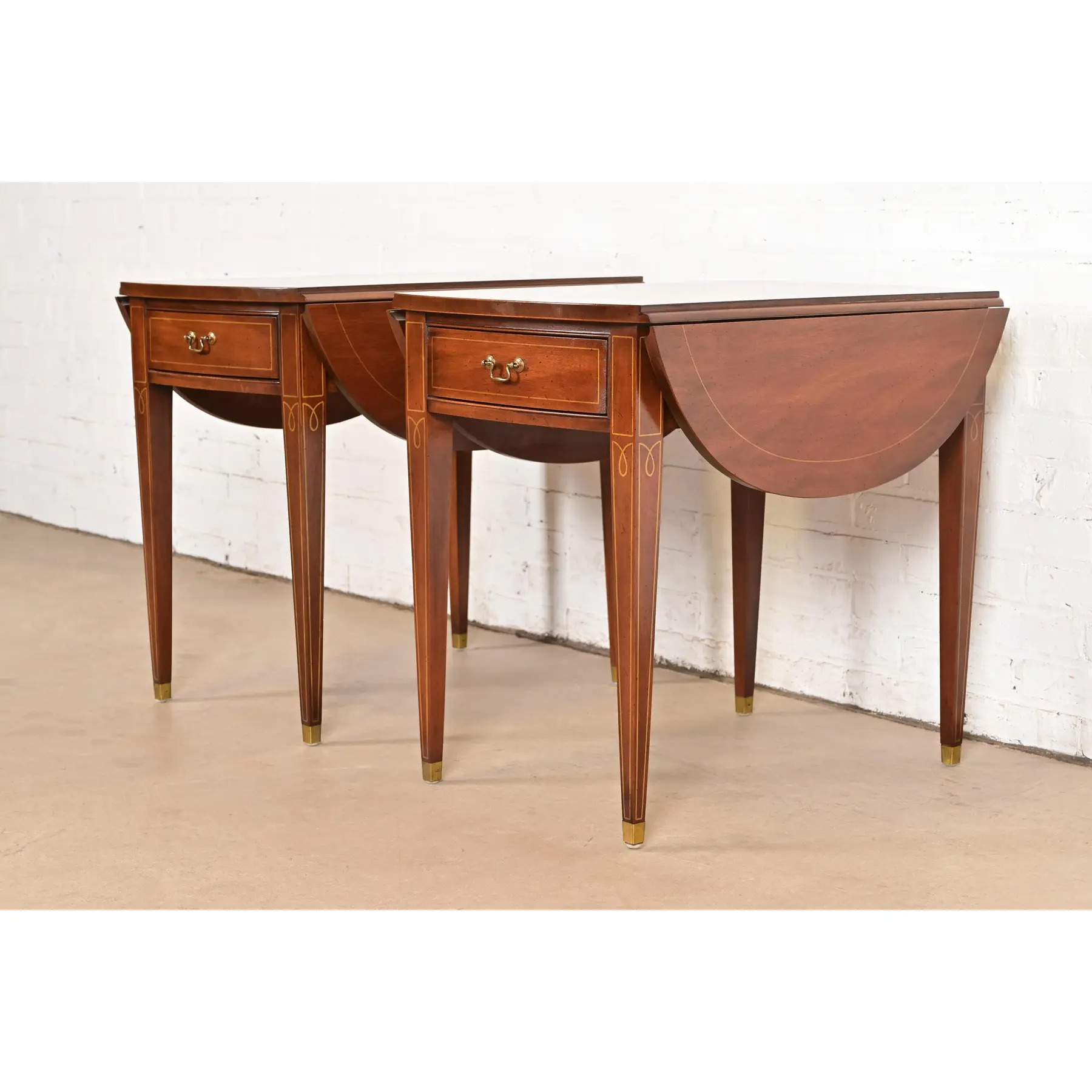 Baker Furniture Style Mahogany Drop Leaf Pembroke Side Tables, Pair