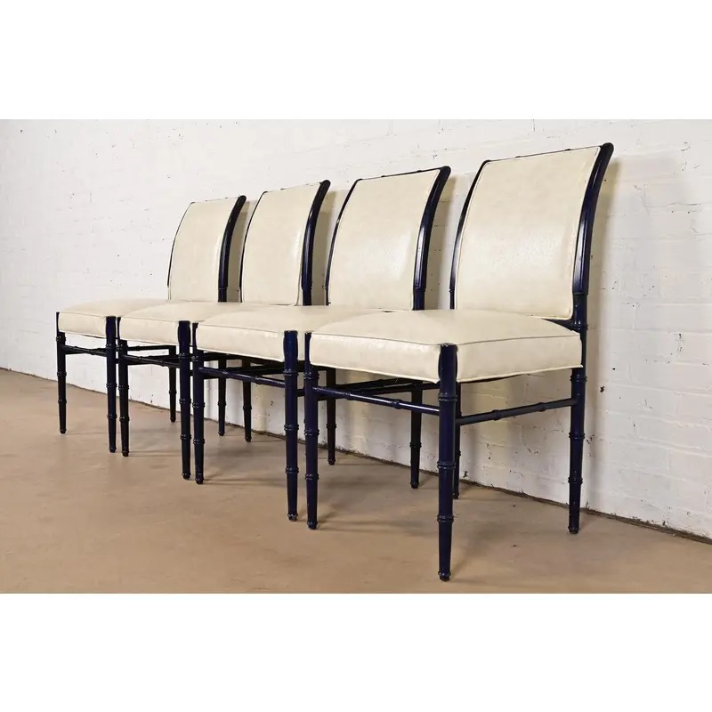 Baker Furniture Style Mid-Century Hollywood Regency Ebonized Faux Bamboo Dining Chairs, Set of Four