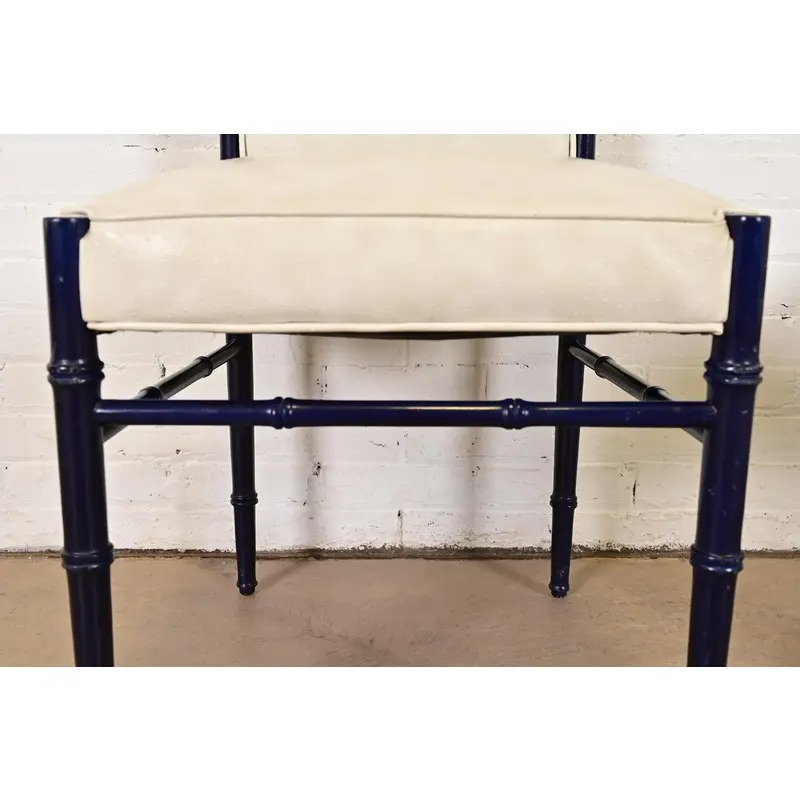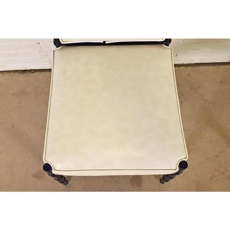 Ebonized bamboo form walnut frames, with cream vinyl upholstered seats and backs.