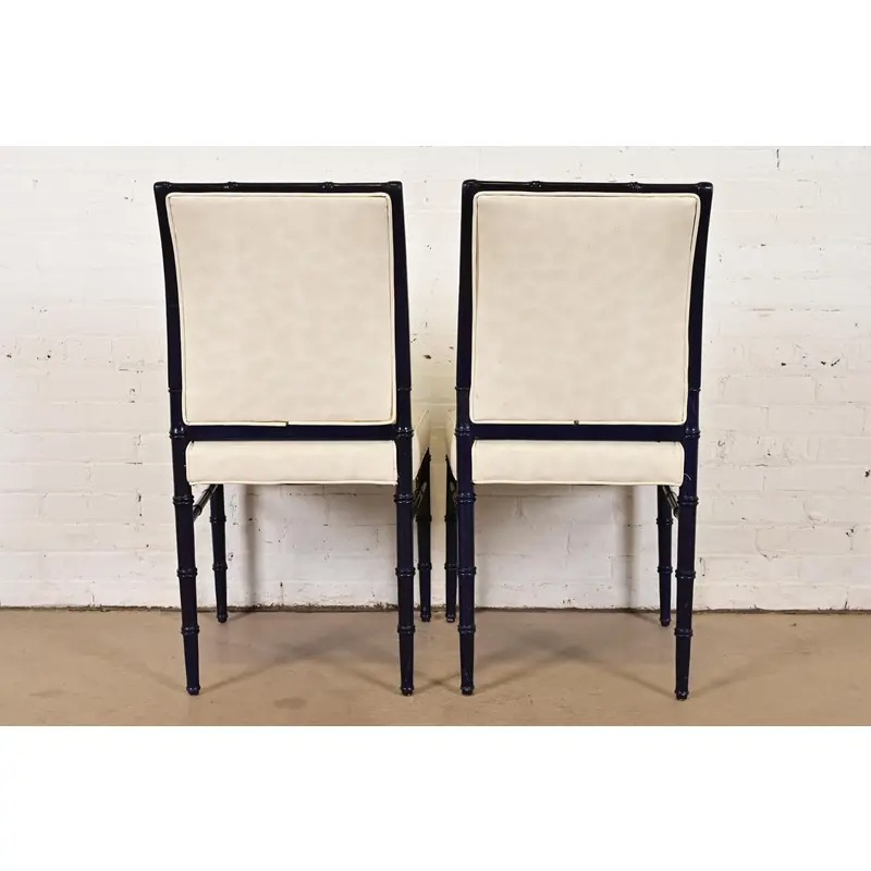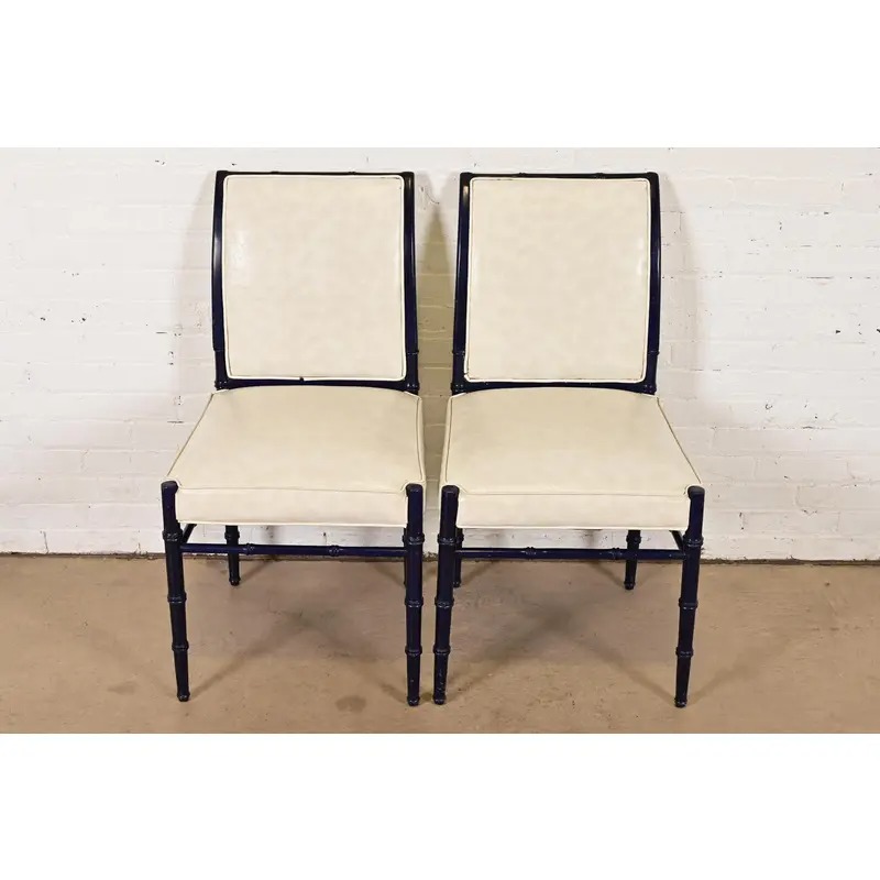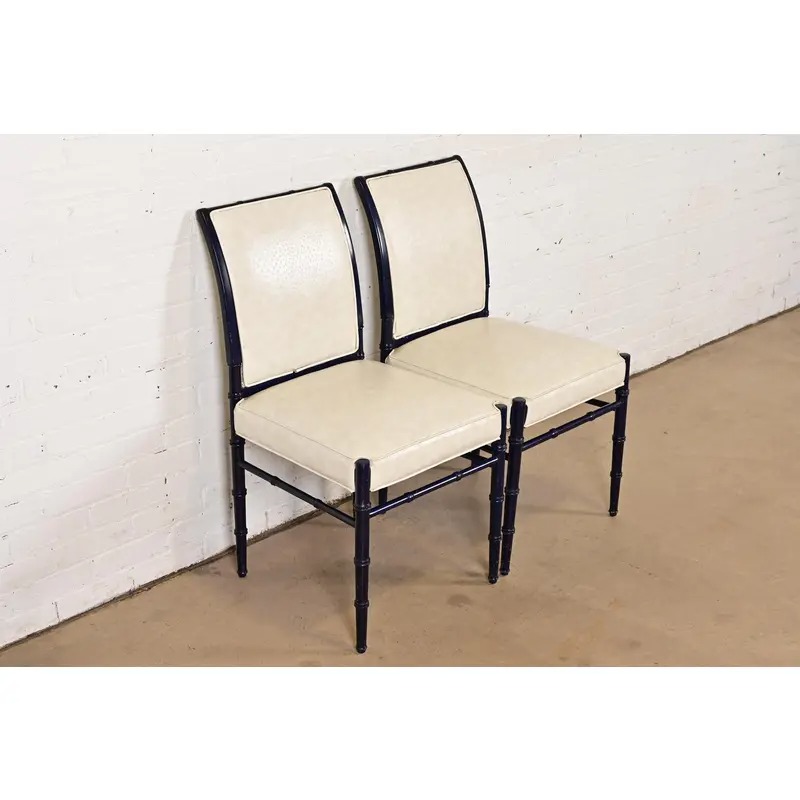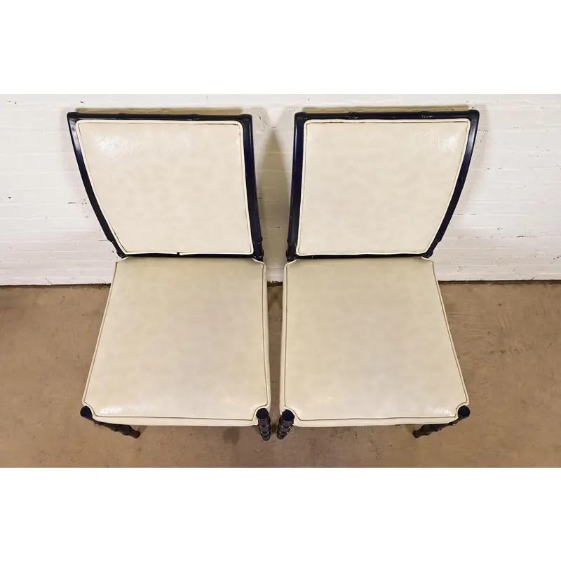 Baker Furniture Style Mid-Century Hollywood Regency Ebonized Faux Bamboo Side Chairs or Dining Chairs, Pair