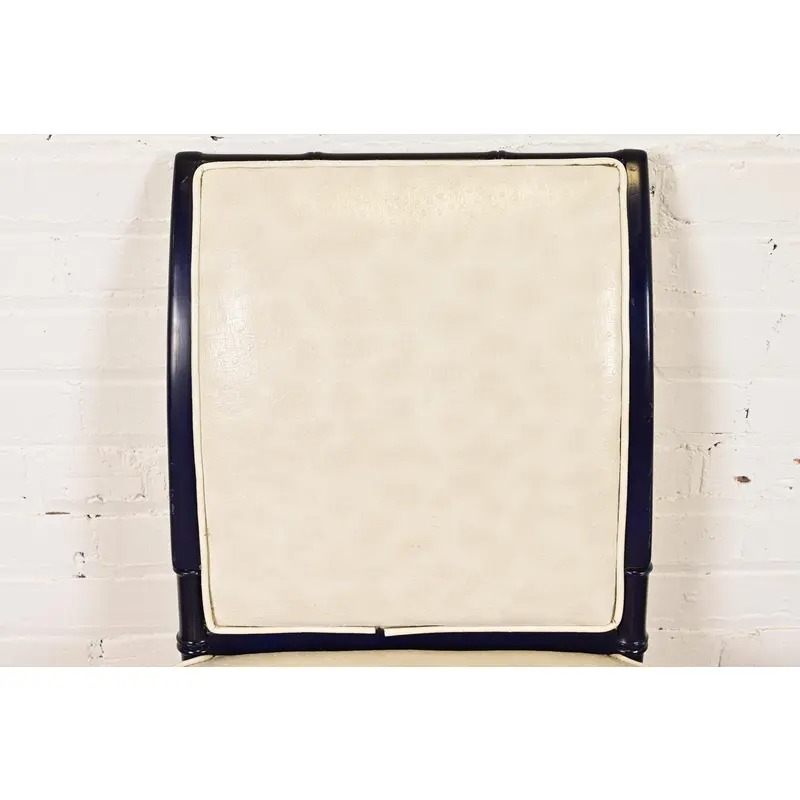 Ebonized bamboo form walnut frames, with cream vinyl upholstered seats and backs.