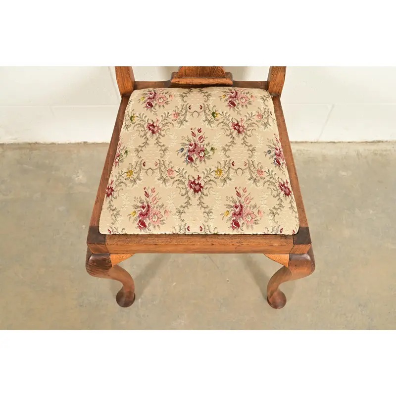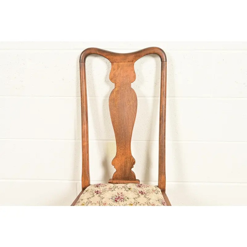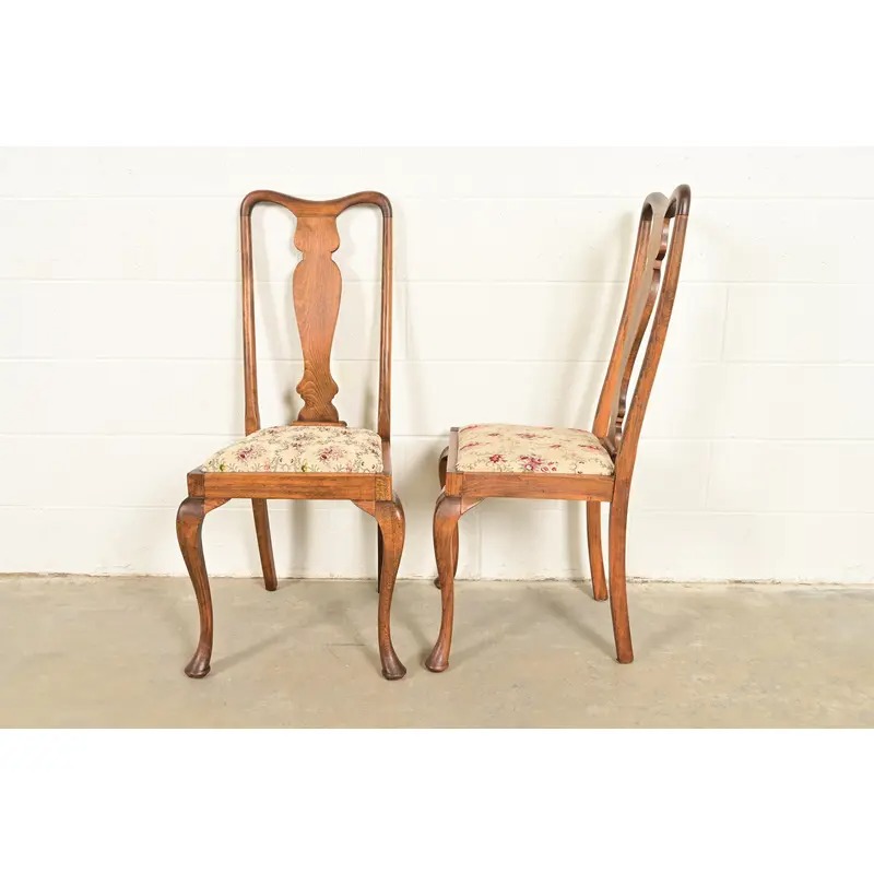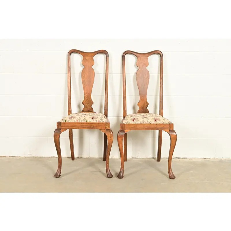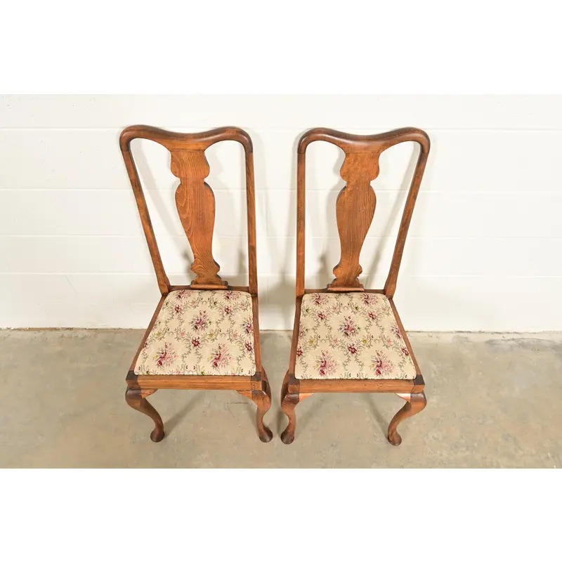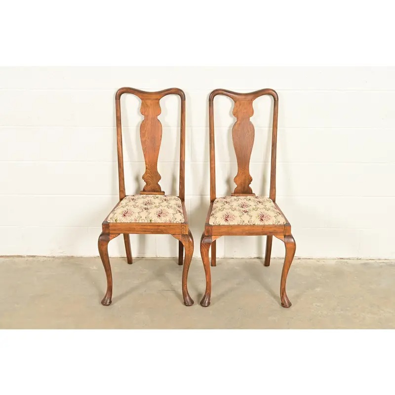Baker Furniture Style Queen Anne Solid Oak Side Chairs or Dining Chairs, Pair
