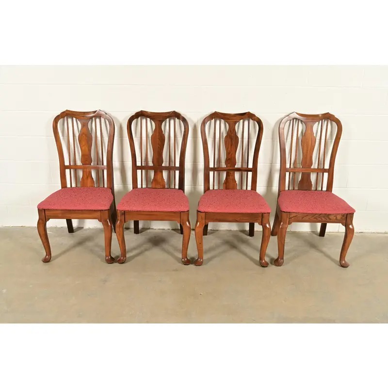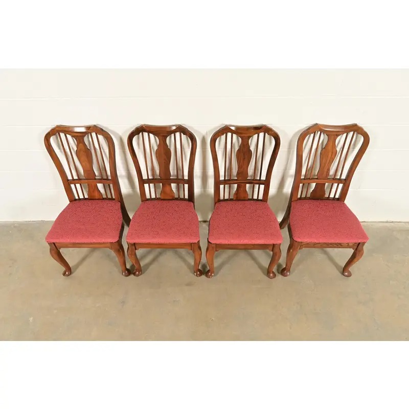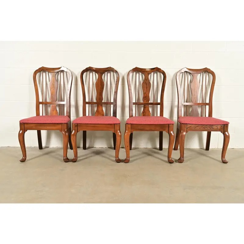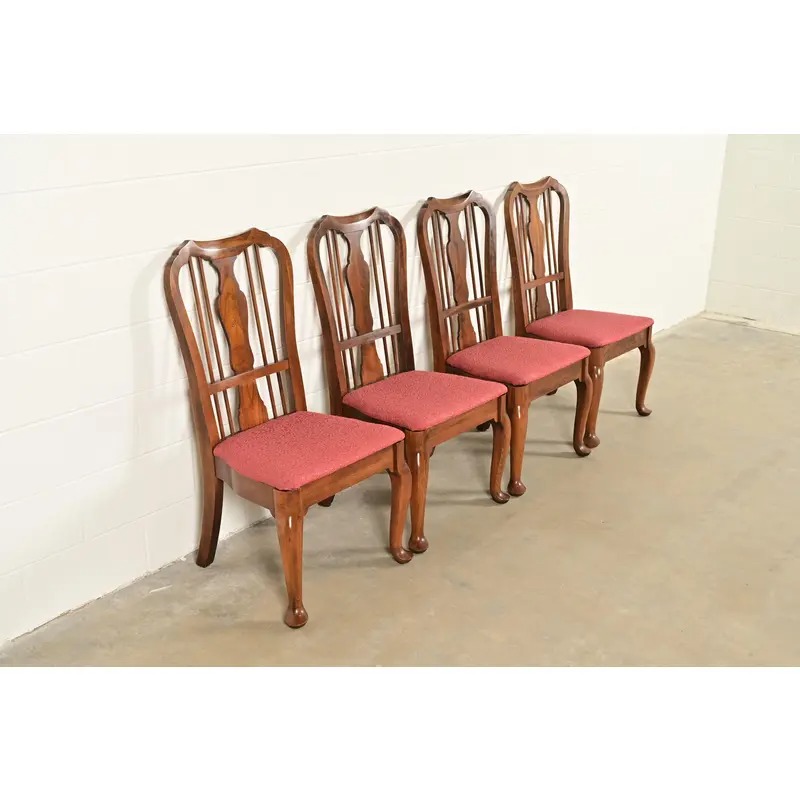 Baker Furniture Style Queen Anne Solid Walnut Dining Chairs, Set of Four