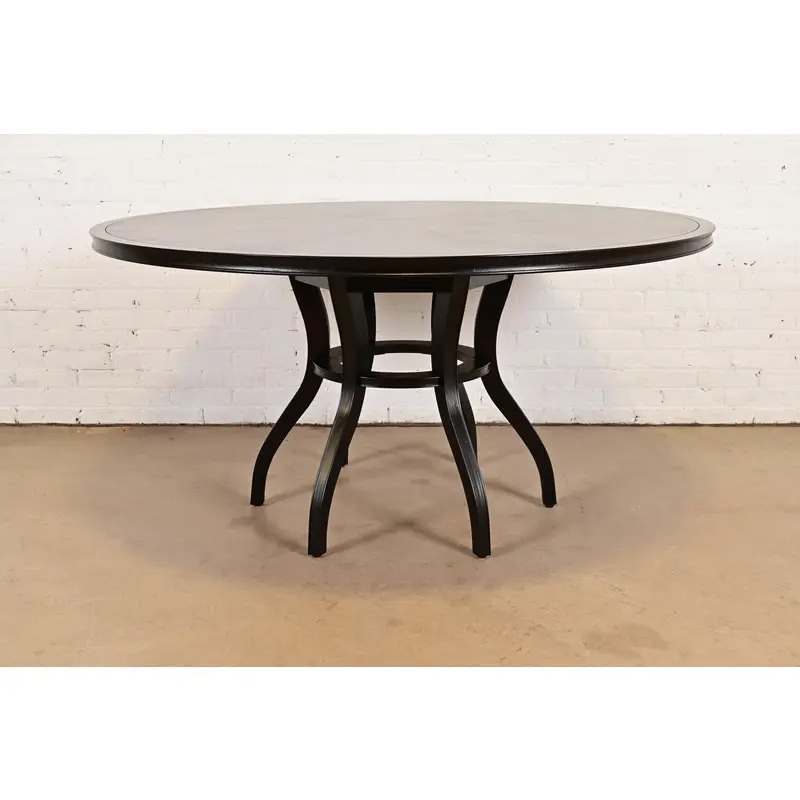 A gorgeous modern Art Deco or Regency style dark mahogany round pedestal center table or dining table
