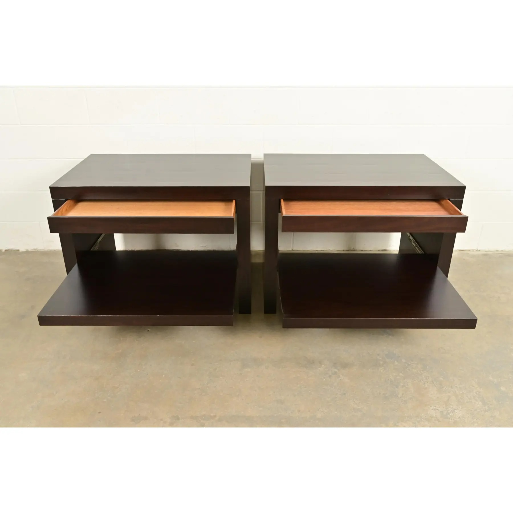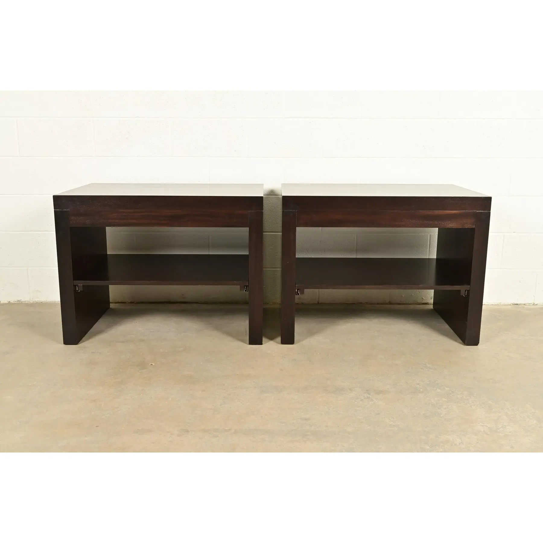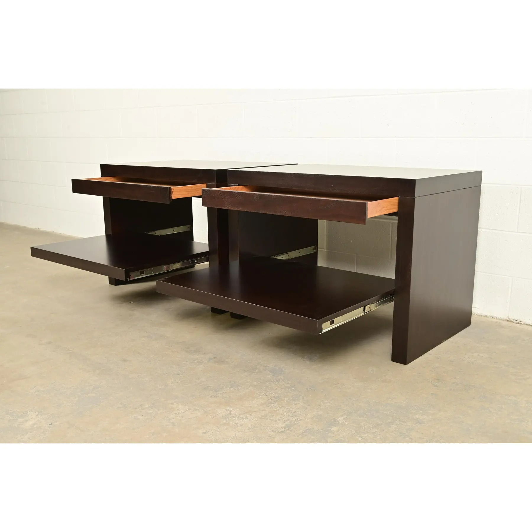 Barbara Barry for Baker Furniture Modern Oversized Dark Mahogany Nightstands, Newly Refinished