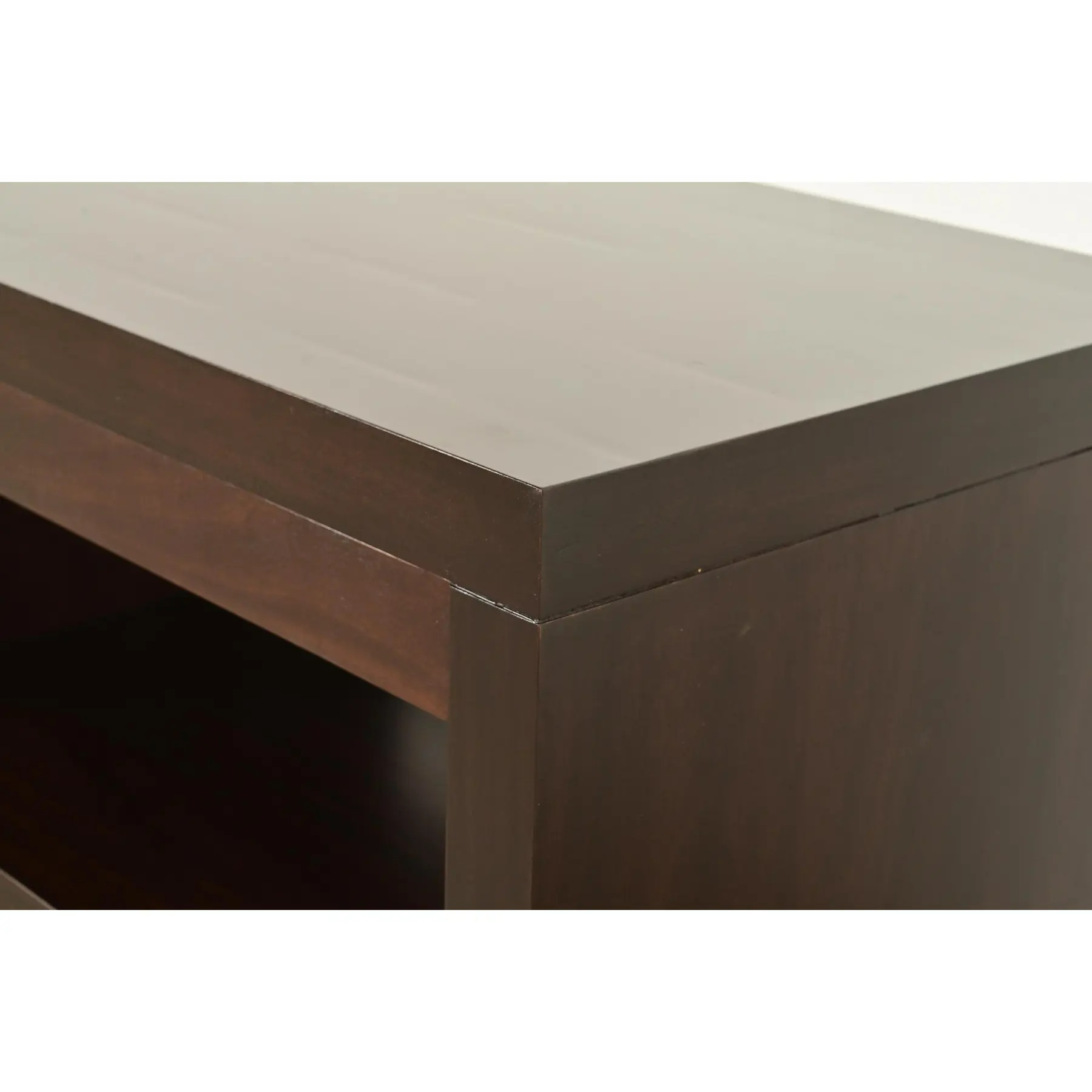 A stylish pair of Modern dark mahogany oversized two-tier bedside tables or nightstands