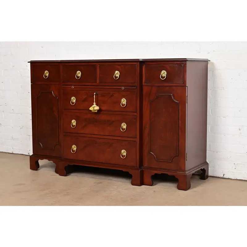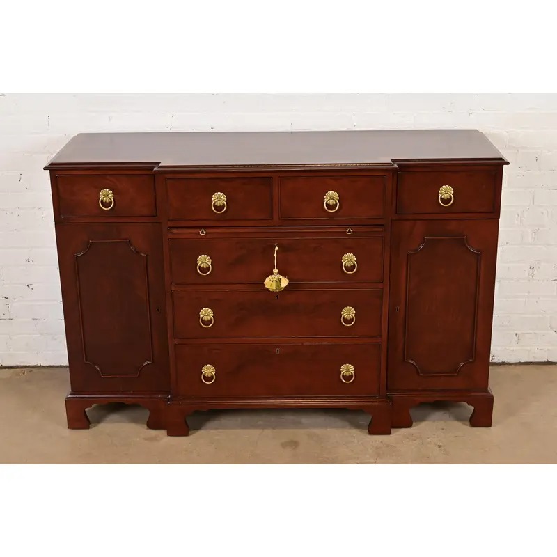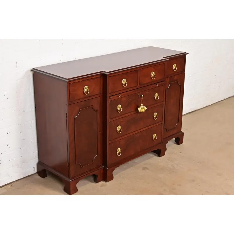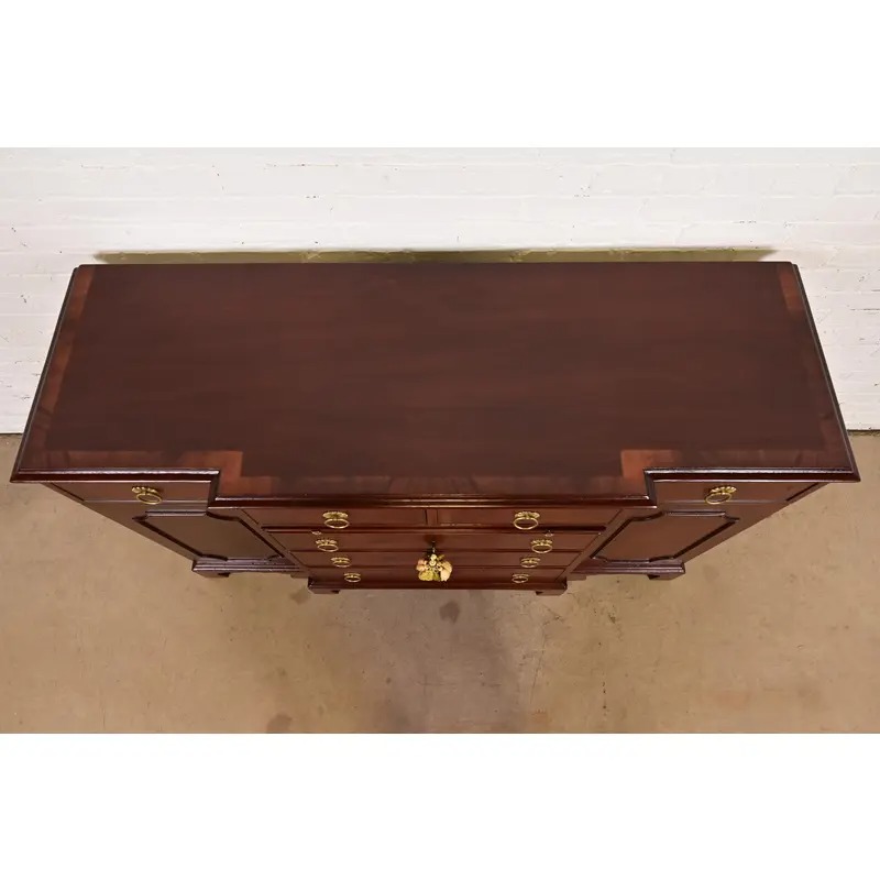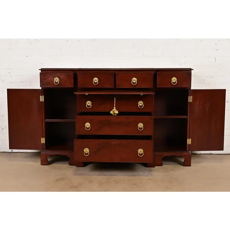 Beacon Hill Collection Chippendale Flame Mahogany Breakfront Sideboard or Bar Cabinet, Circa 1940s