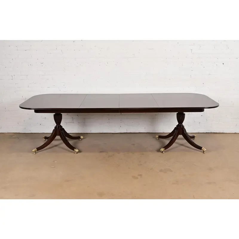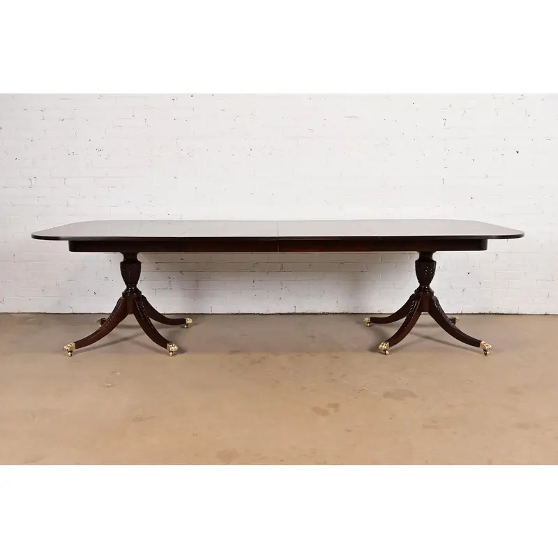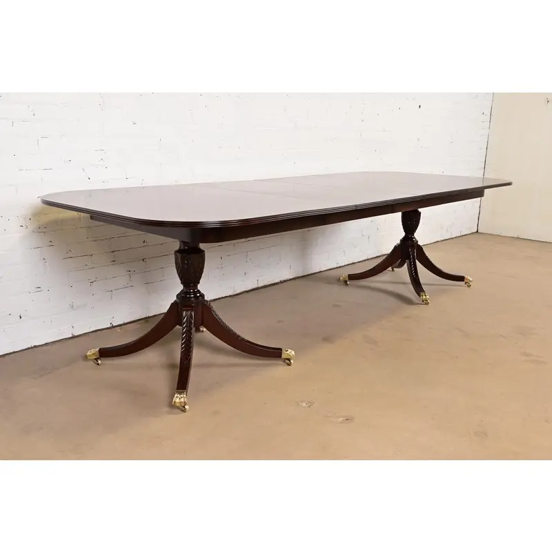 Beacon Hill Georgian Banded Mahogany Double Pedestal Extension Dining Table, Newly Refinished