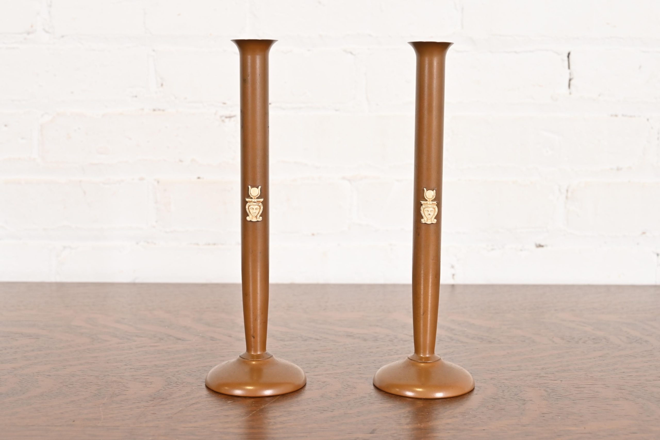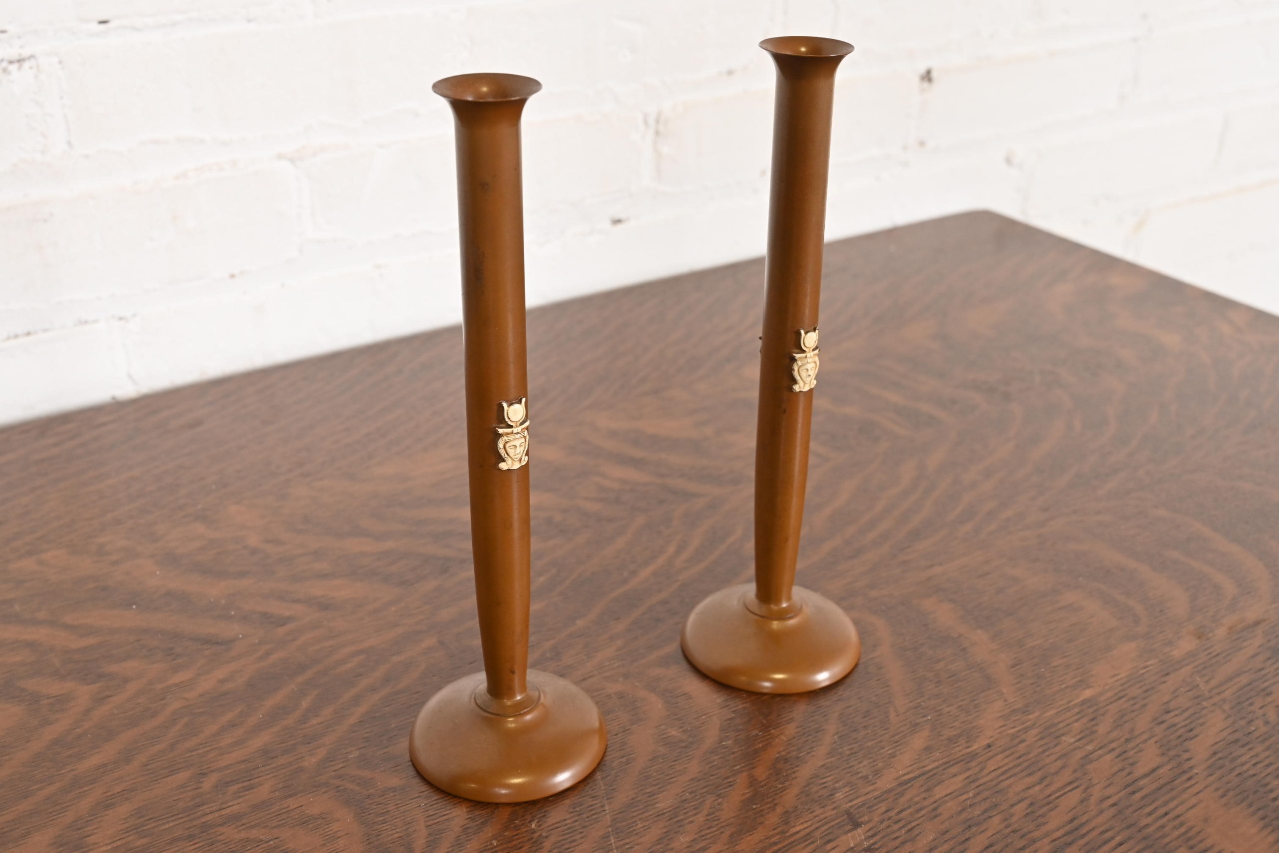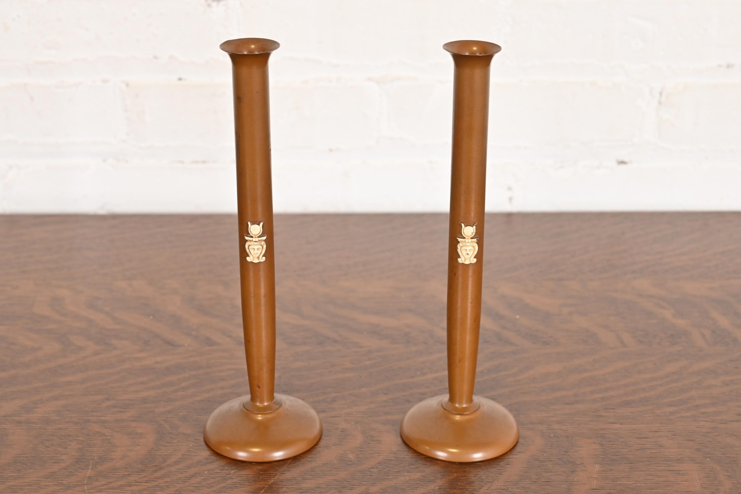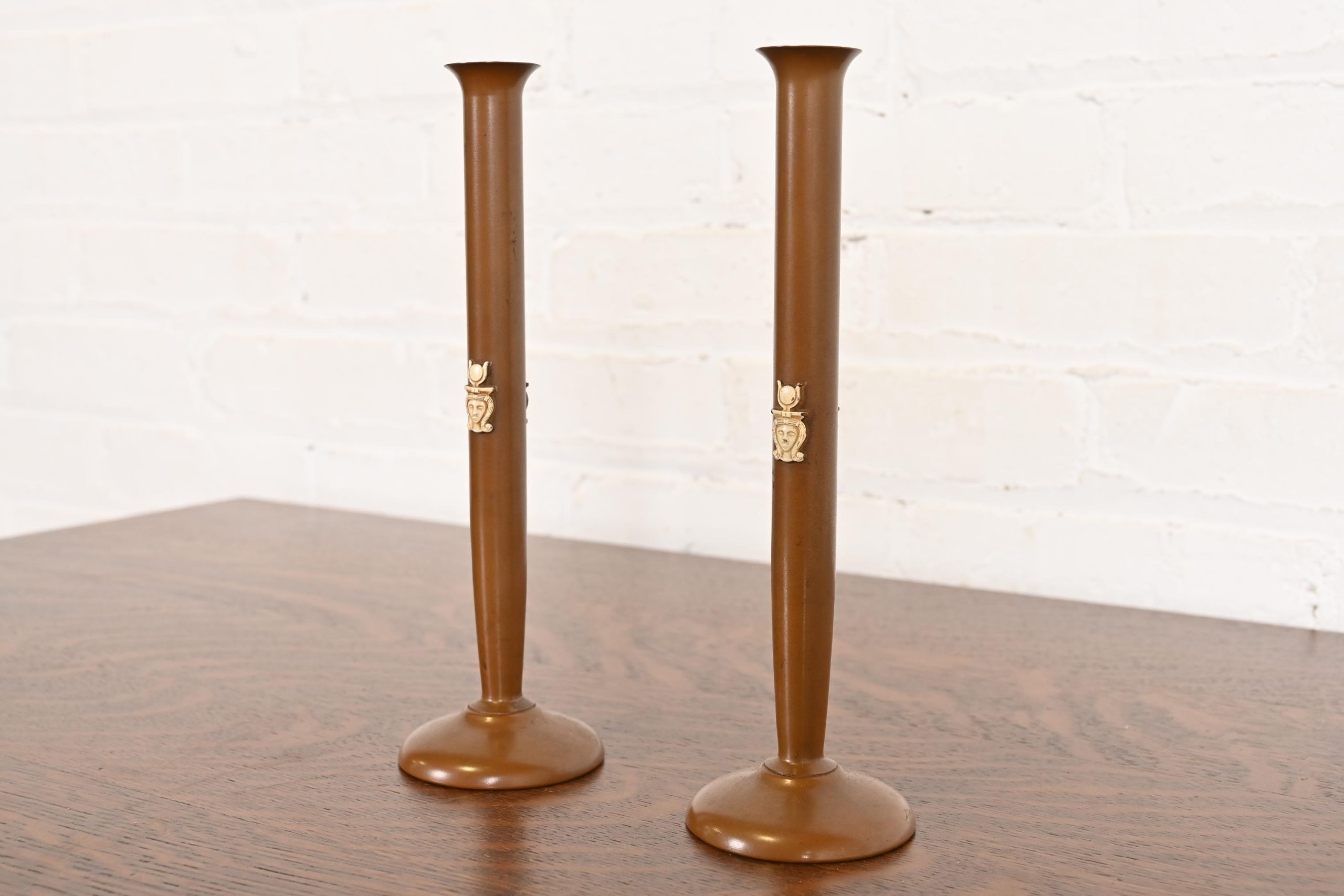 Benedict Studios Arts & Crafts Bronze Bud Vases, Pair