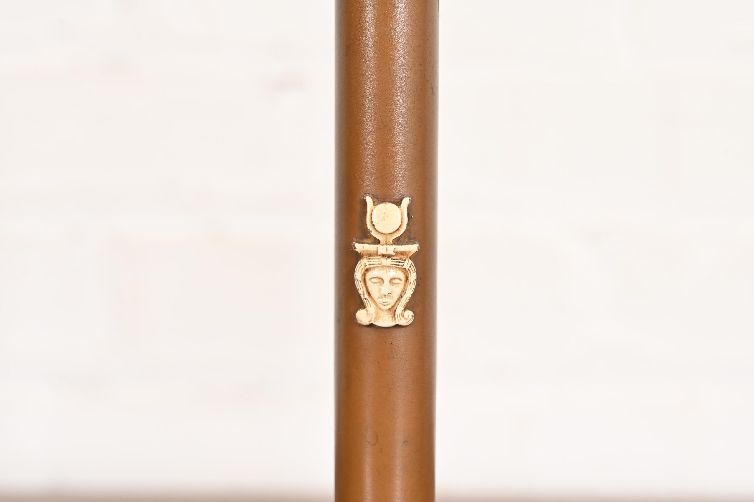 A gorgeous pair of Arts & Crafts period bronze bud vases with emblem of a classical Greek figure