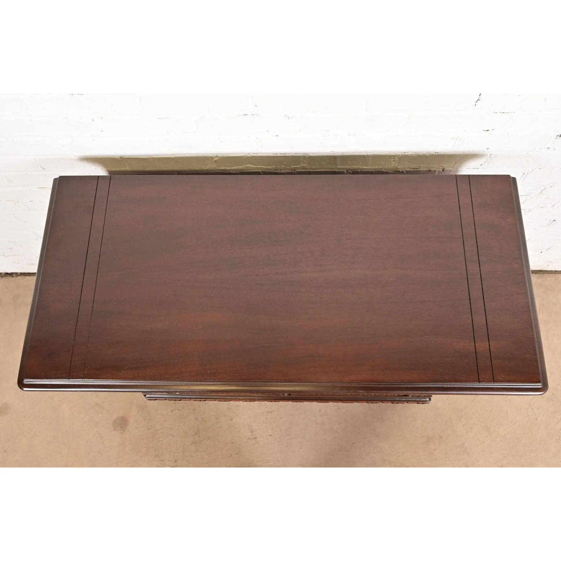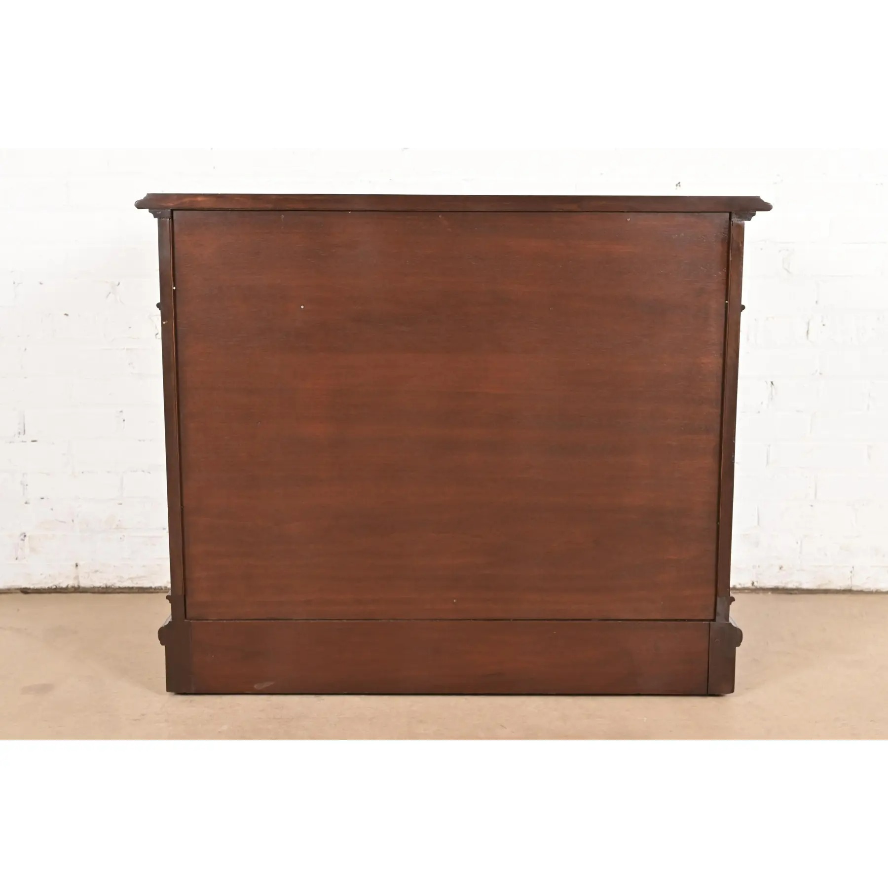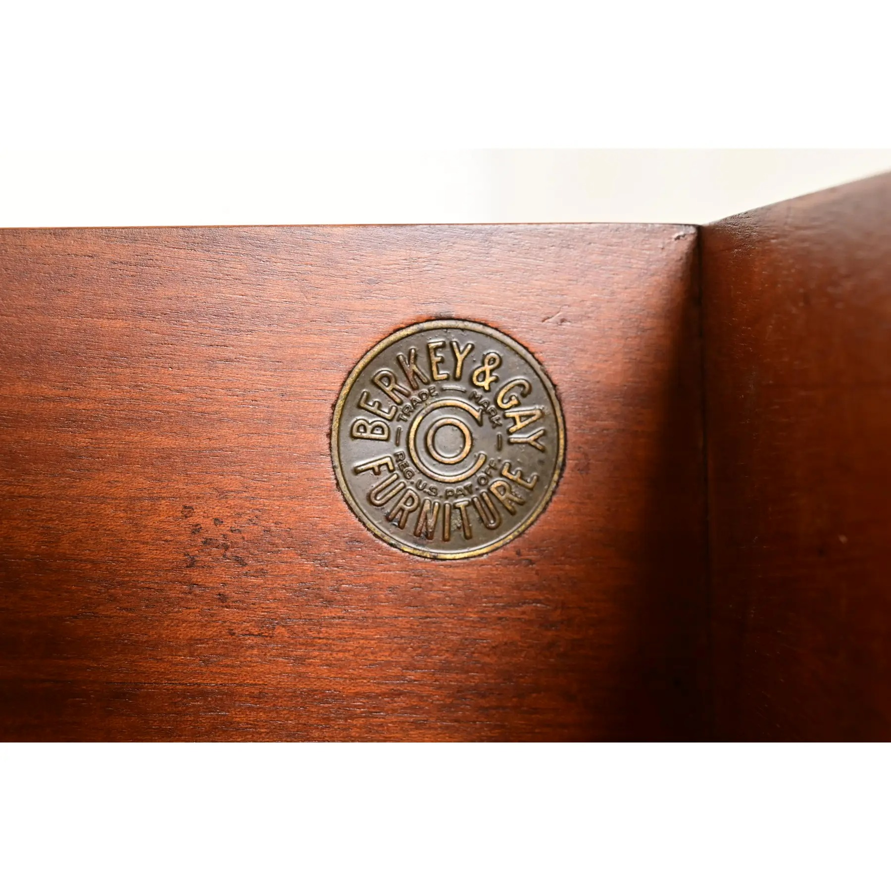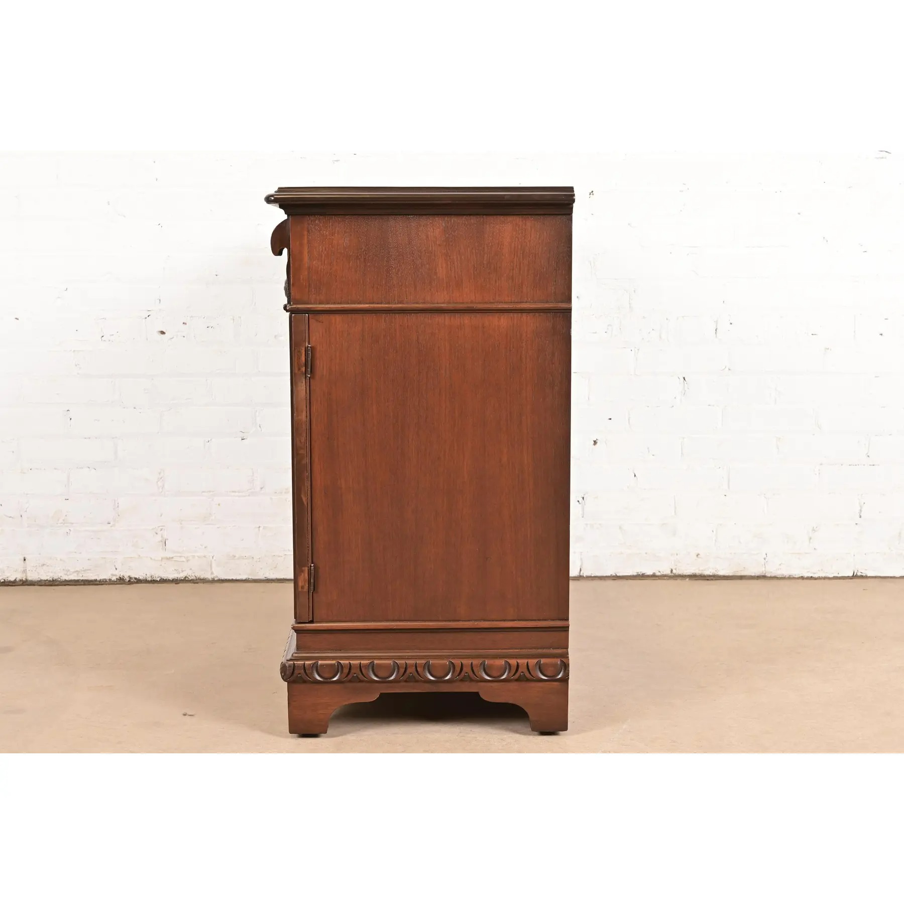 Berkey & Gay Antique English Tudor Carved Walnut and Burl Wood Bar Cabinet, Newly Refinished
