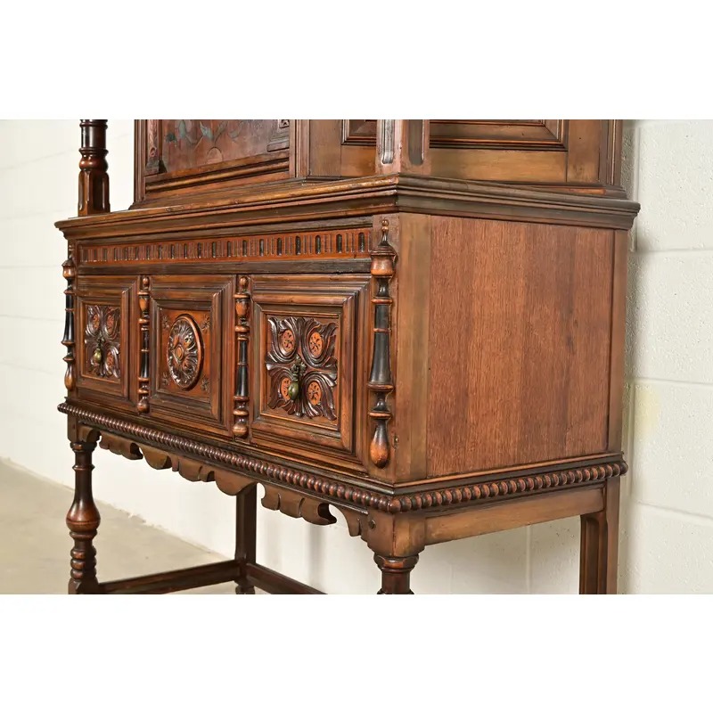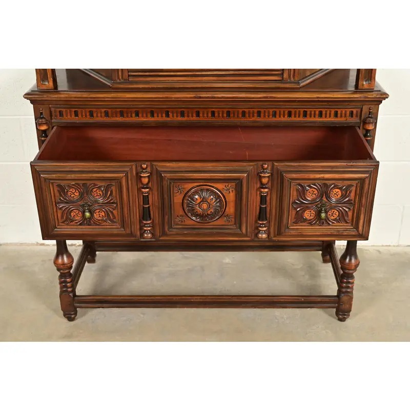 An exceptional English Jacobean or Tudor style bookcase, china hutch, or bar cabinet