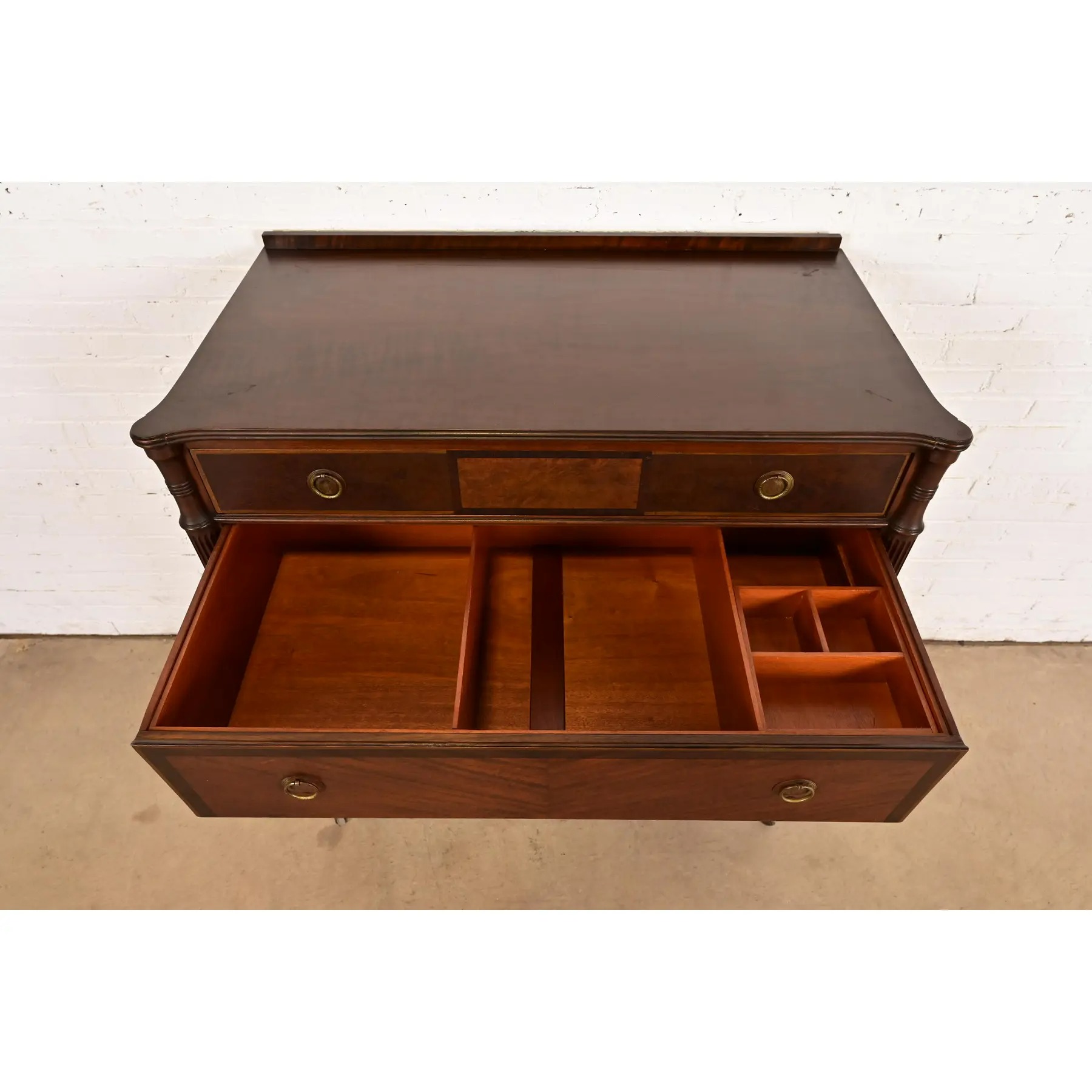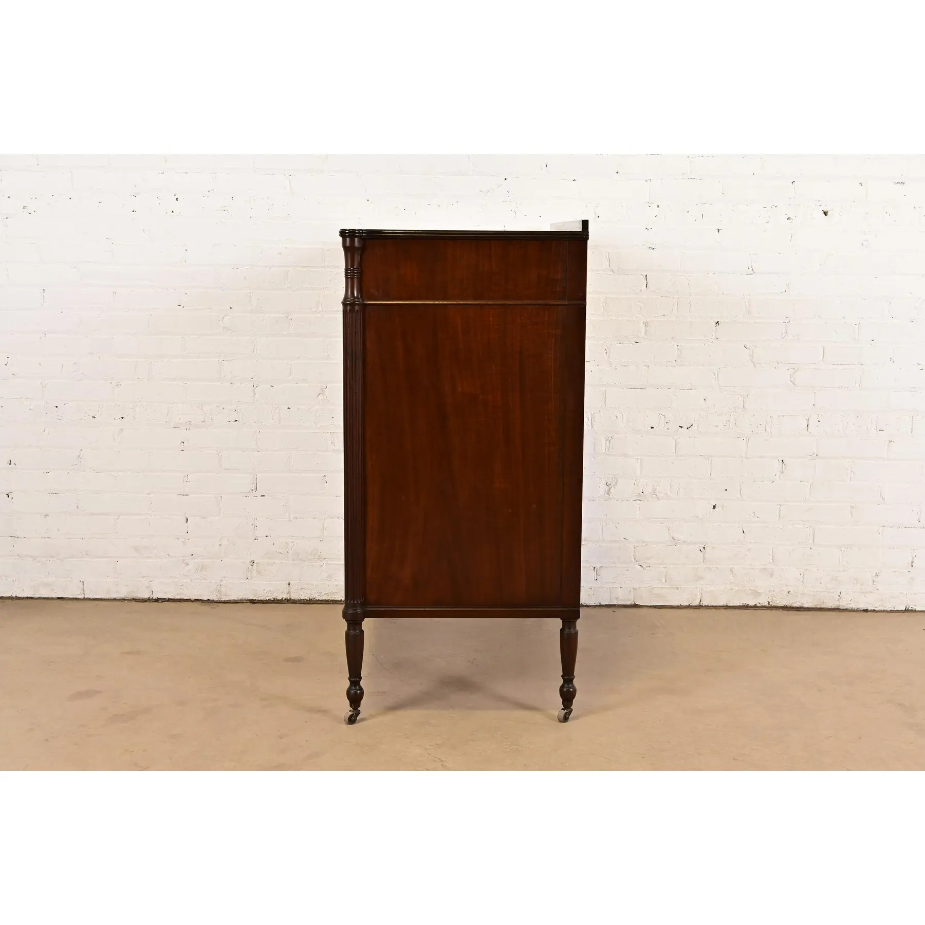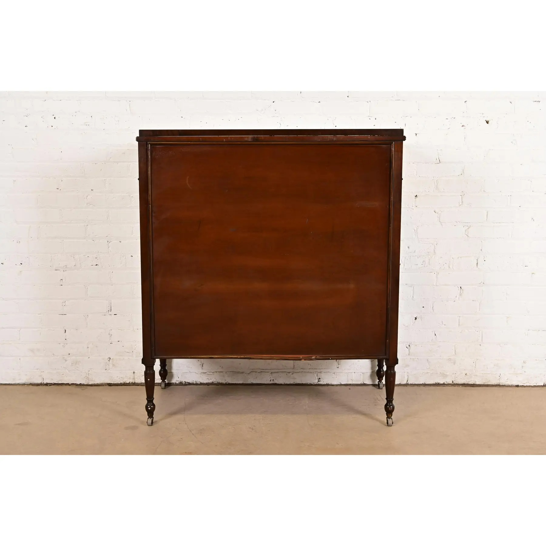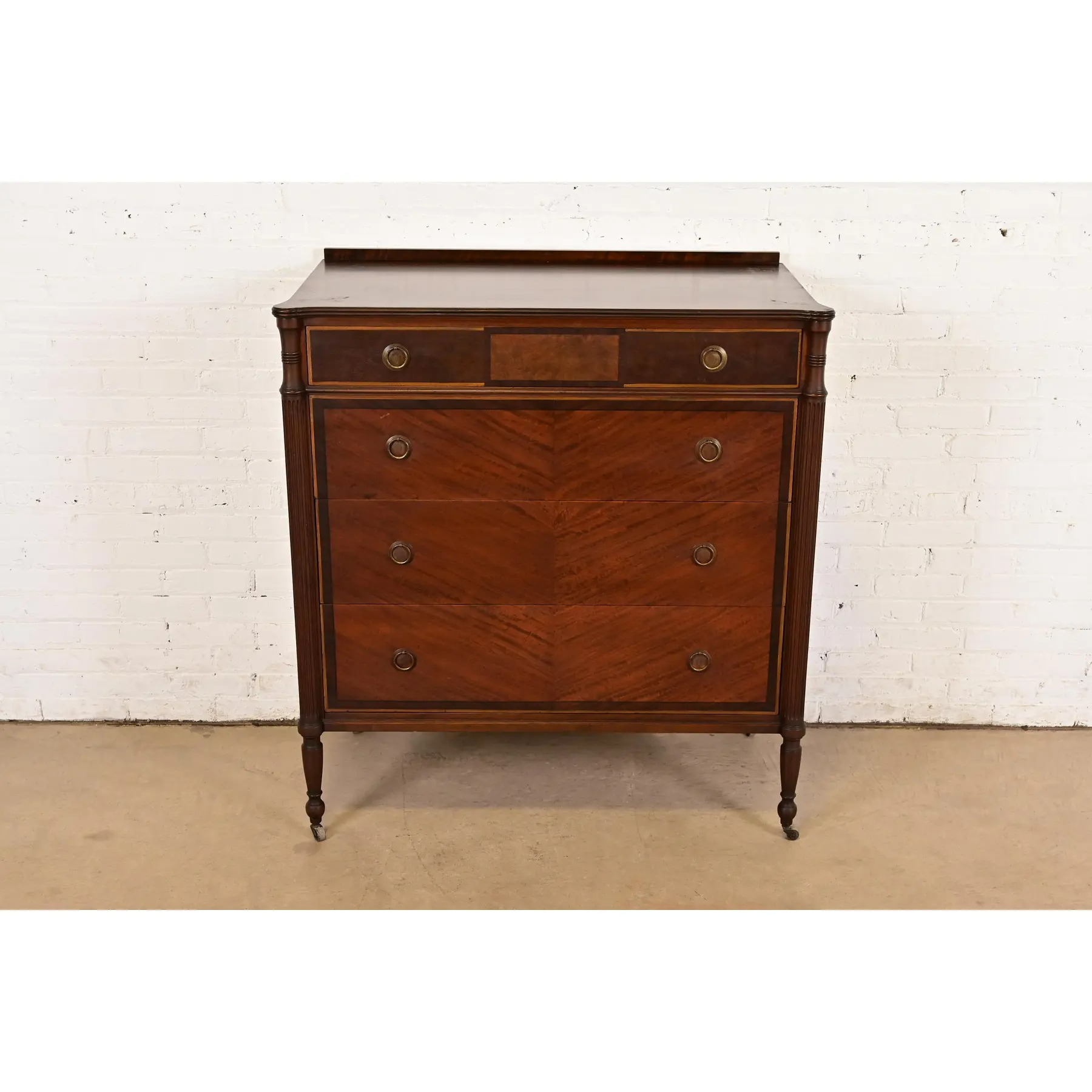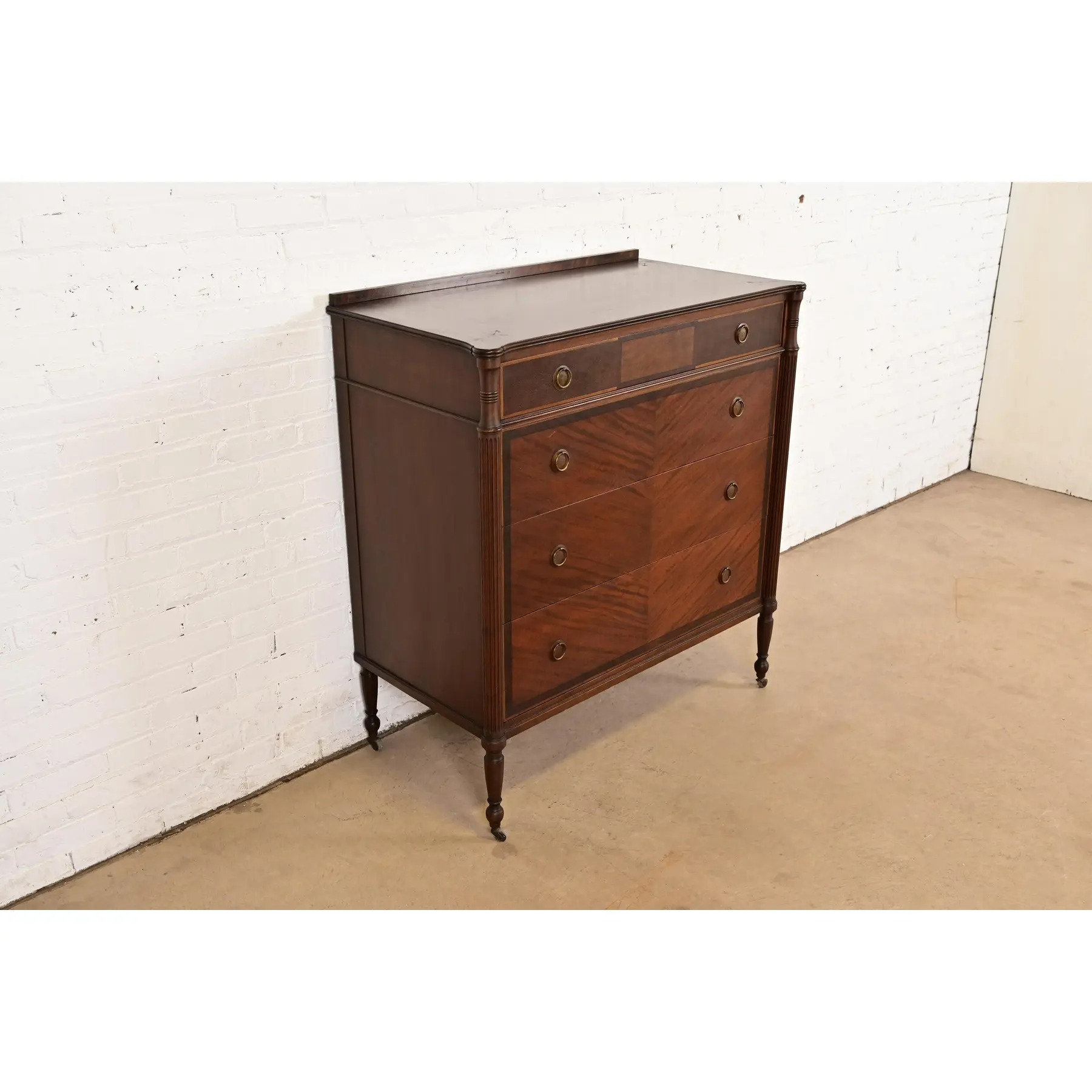 Berkey & Gay Antique French Regency Louis XVI Carved Mahogany and Burled Walnut Highboy Dresser, Circa 1920s