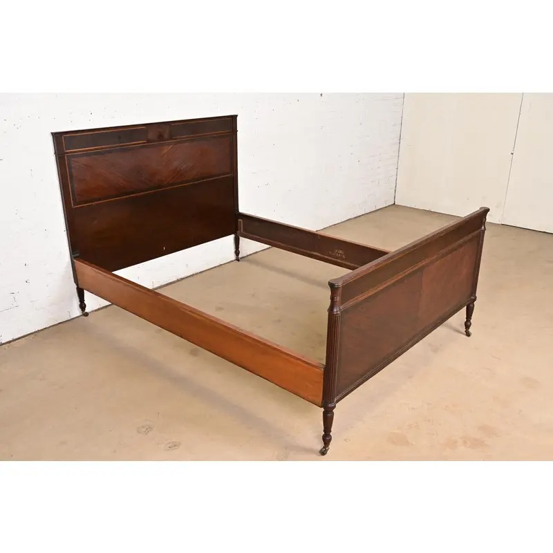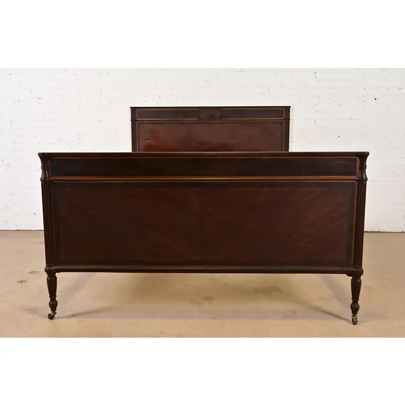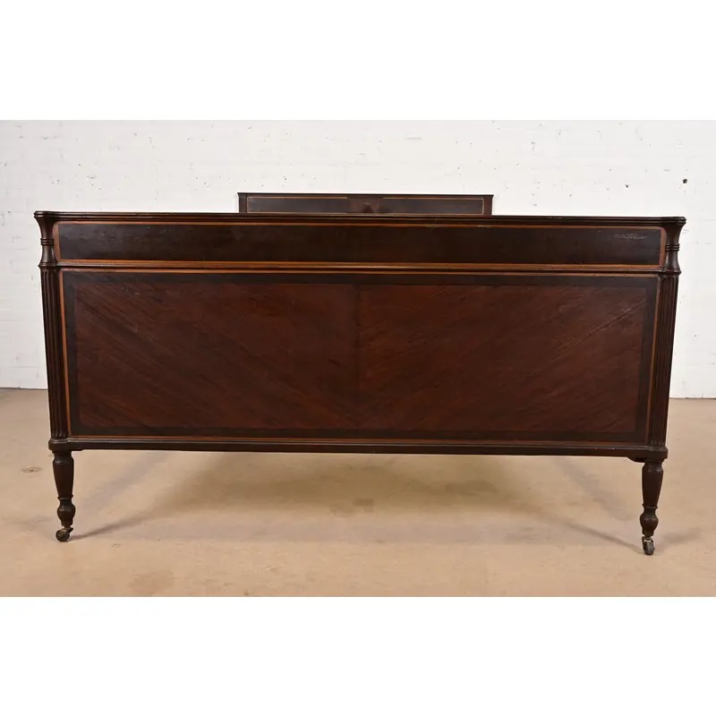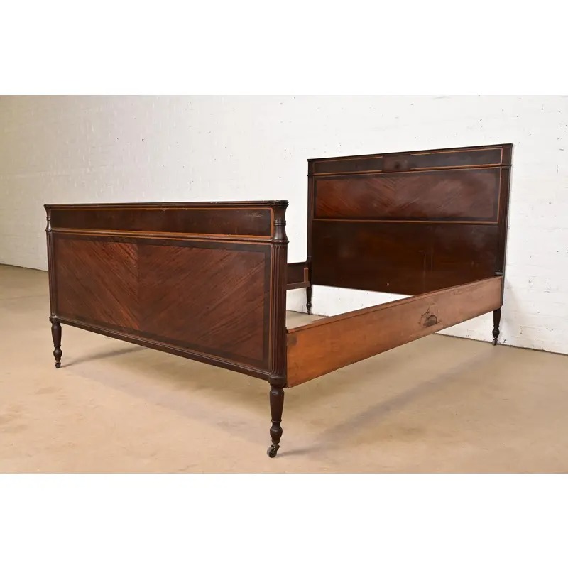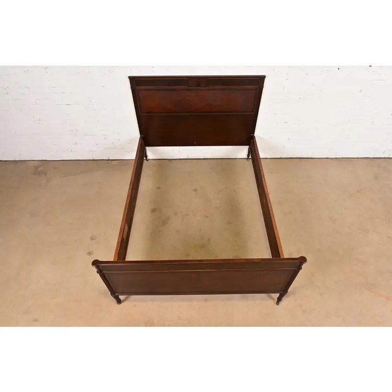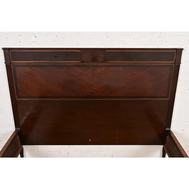 Berkey & Gay Antique French Regency Louis XVI Mahogany and Burl Wood Full Size Bed, Circa 1920s
