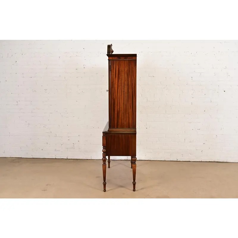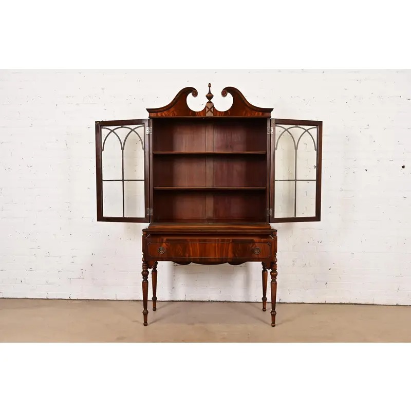 Berkey & Gay Antique Georgian Flame Mahogany Bookcase or Bar Cabinet, Circa 1920s