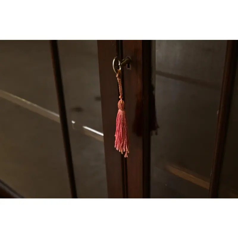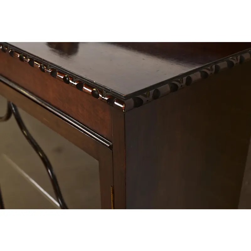 Gorgeous carved mahogany, with mullioned glass front doors.