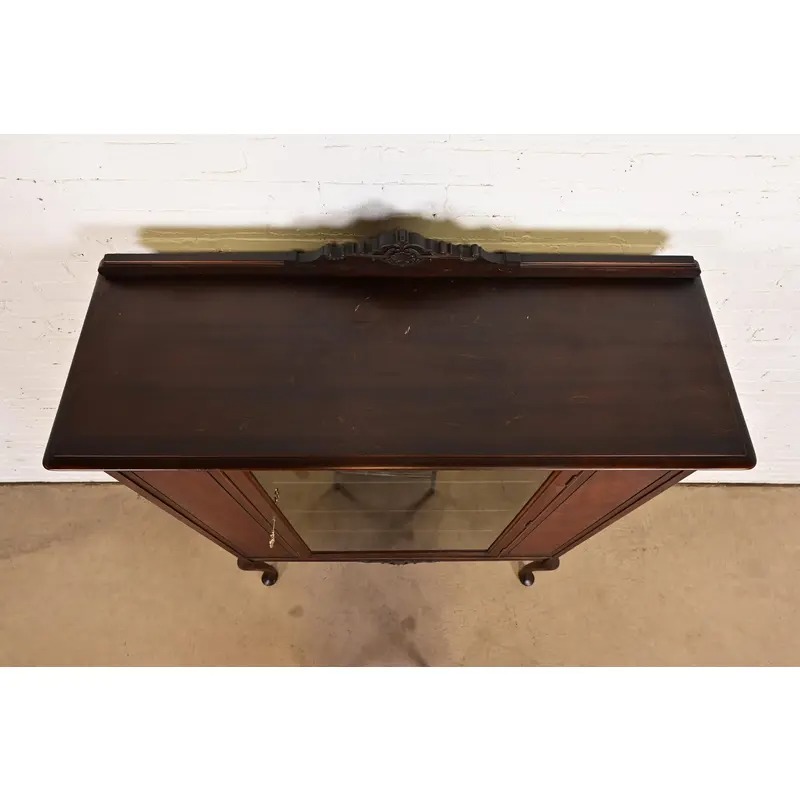 A gorgeous antique Queen Anne style bookcase, bar cabinet, or dining cabinet