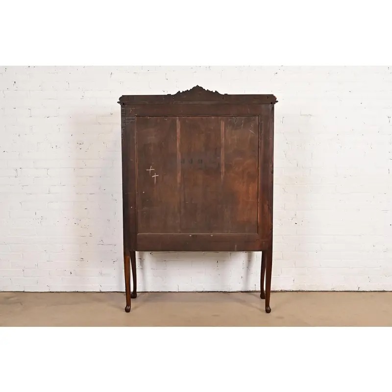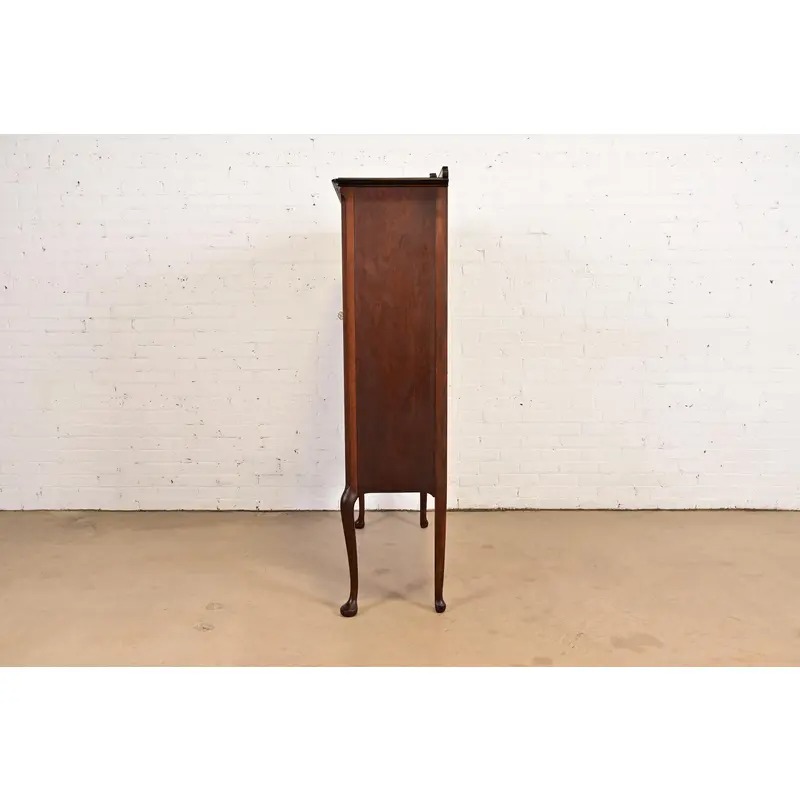 Berkey & Gay Style Antique Queen Anne Carved Walnut Bookcase or Bar Cabinet, Circa 1920s