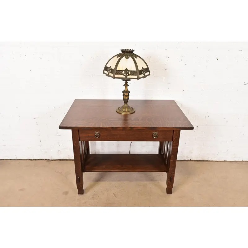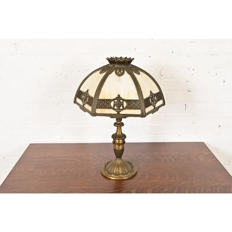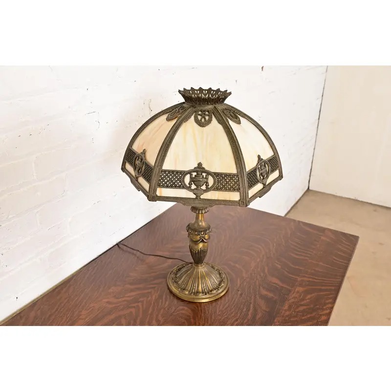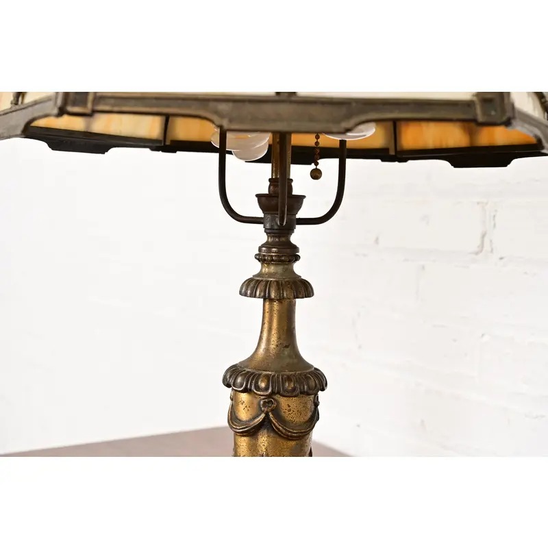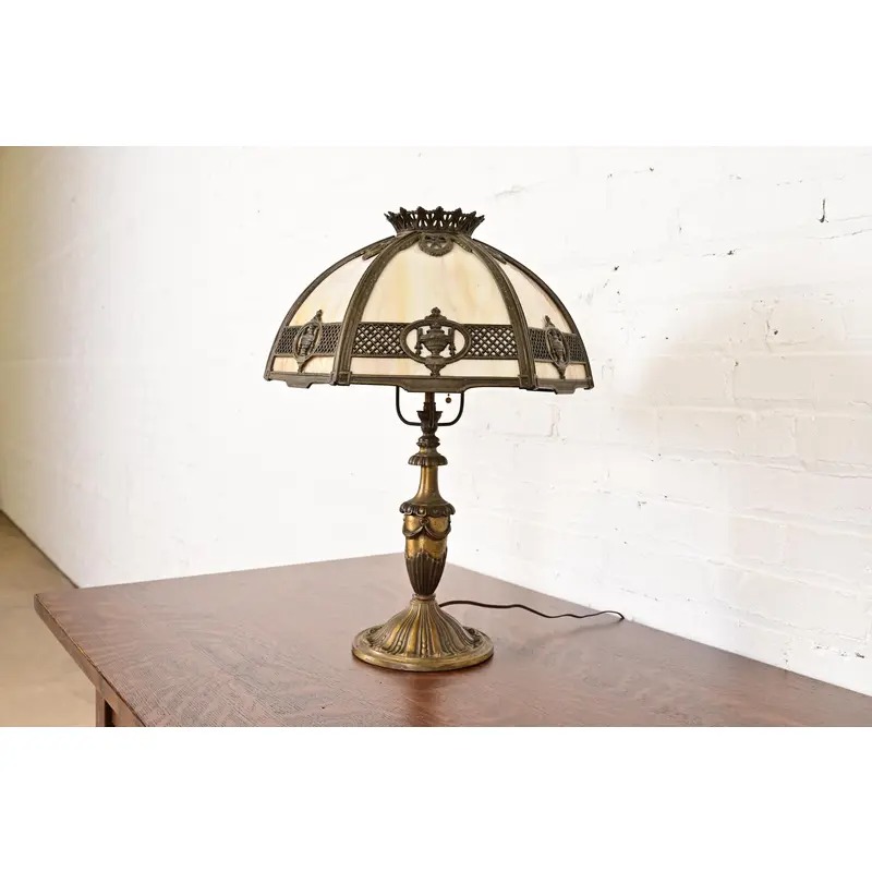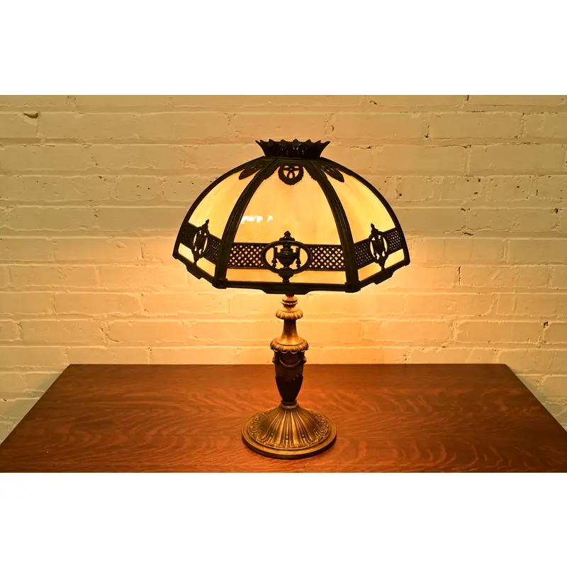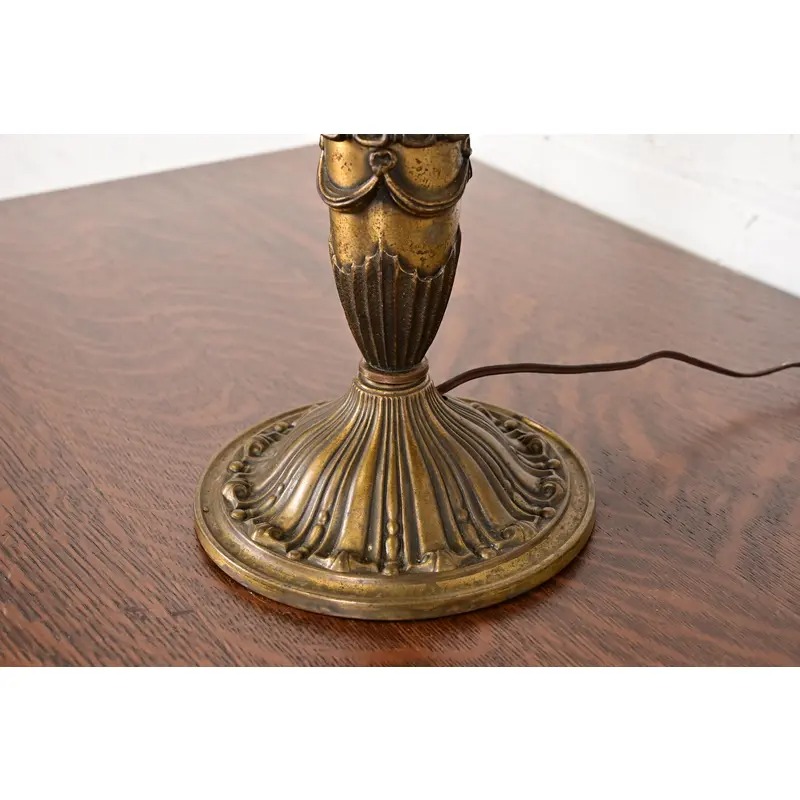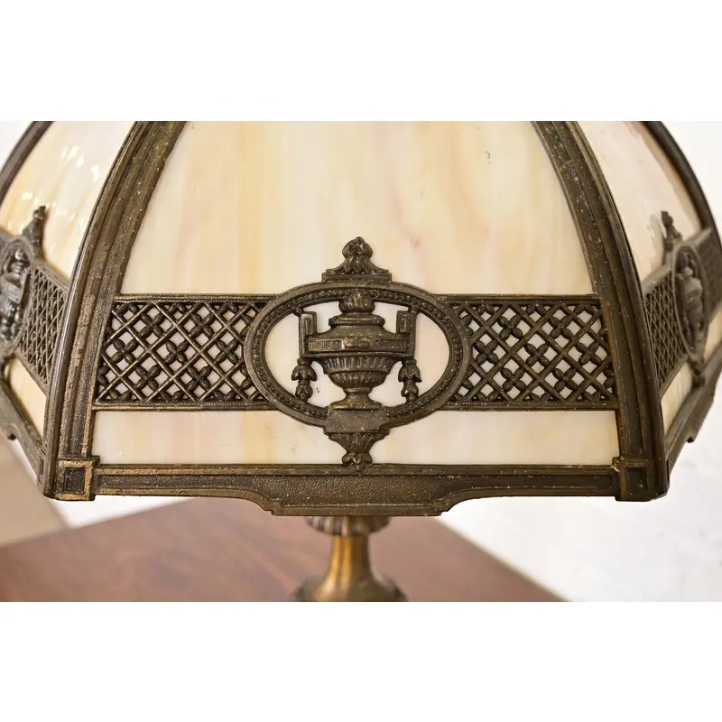 Bradley & Hubbard Antique Art Nouveau Slag Glass Table Lamp, Circa 1910