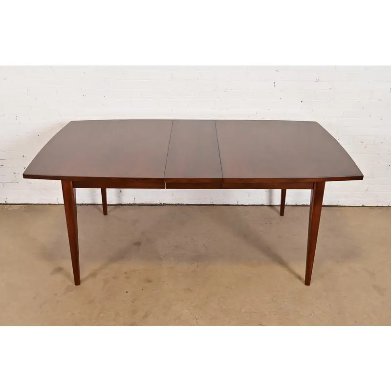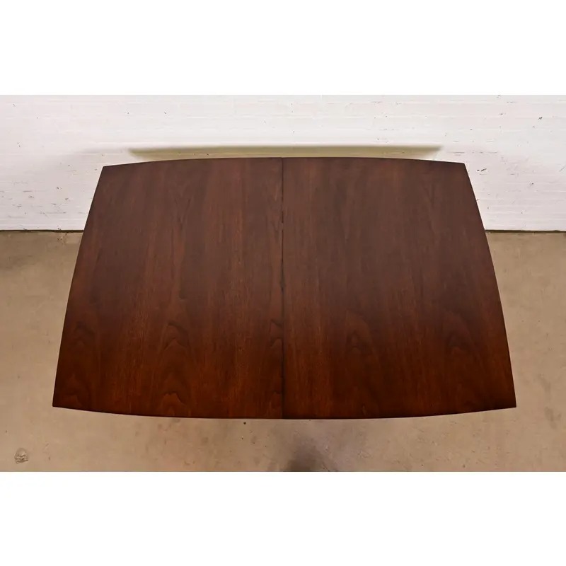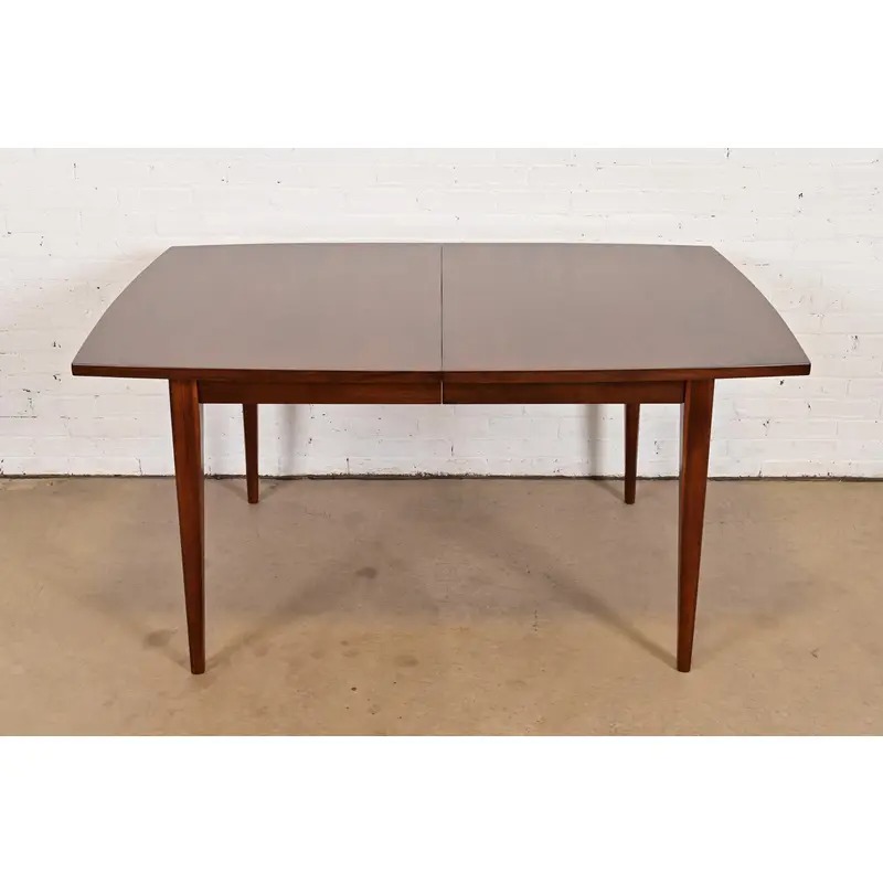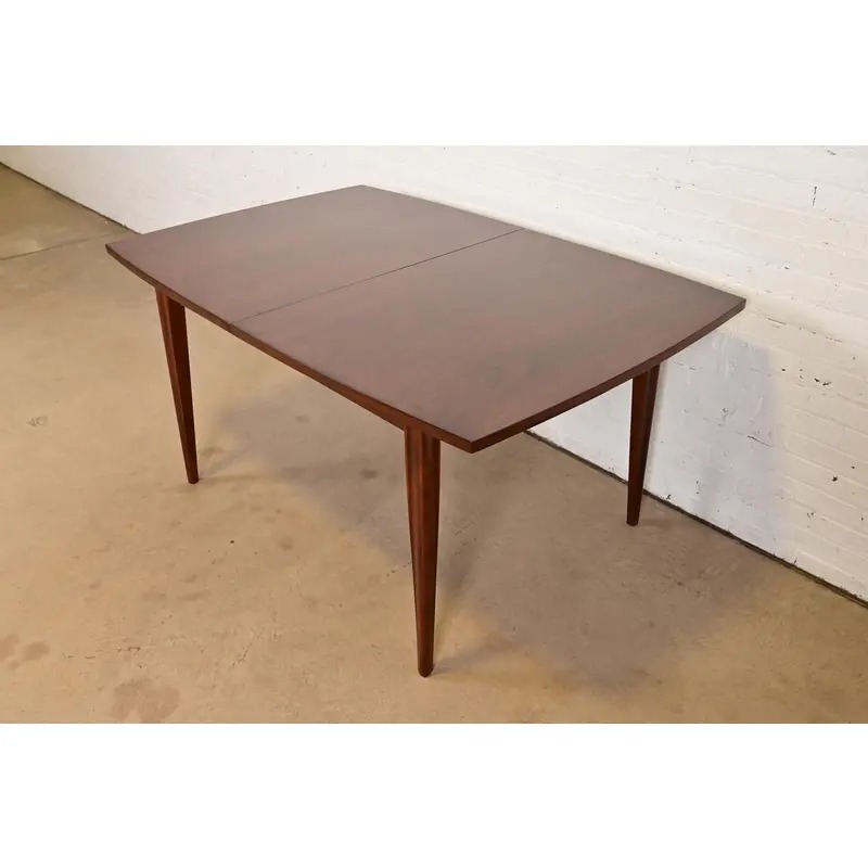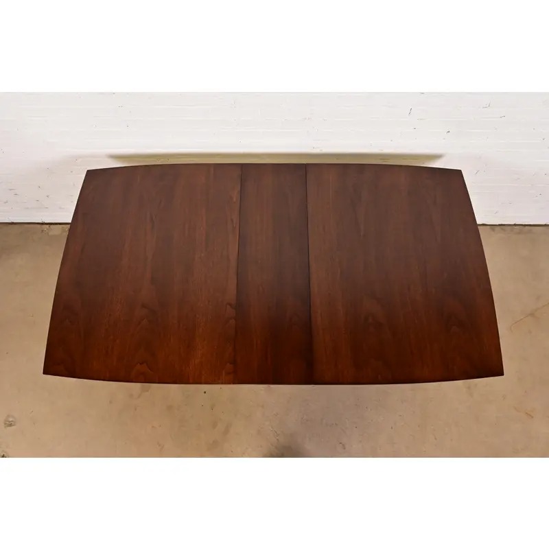 An exceptional Mid-Century Modern walnut boat-shaped extension dining table