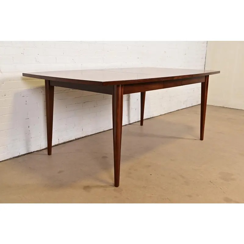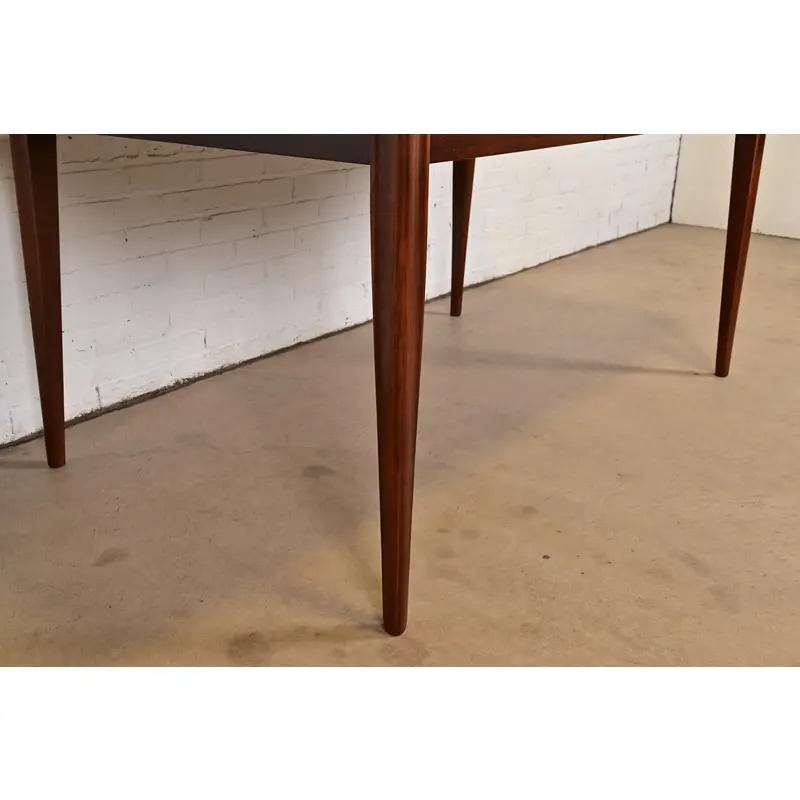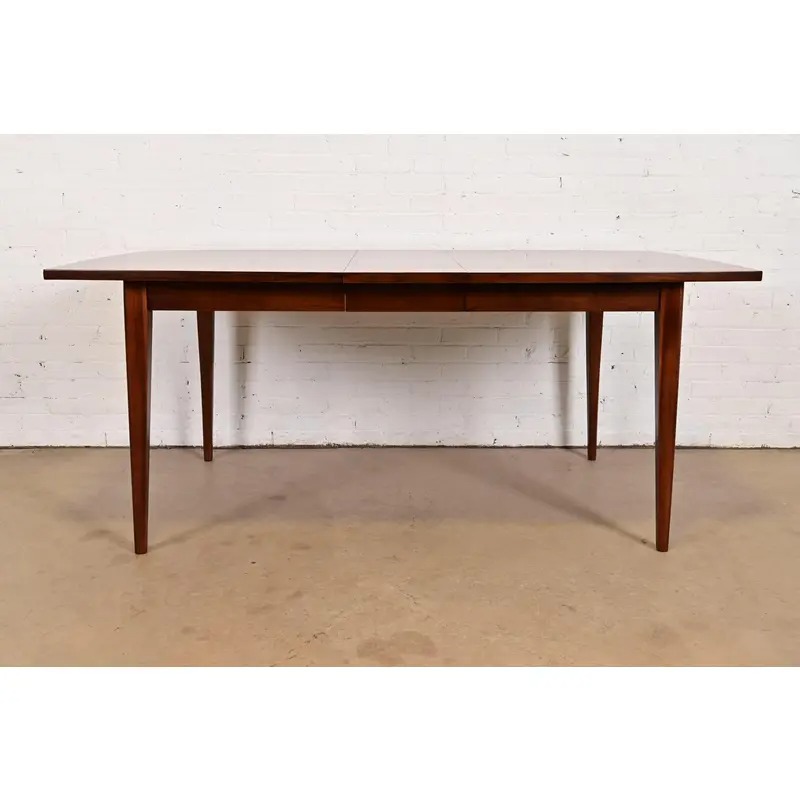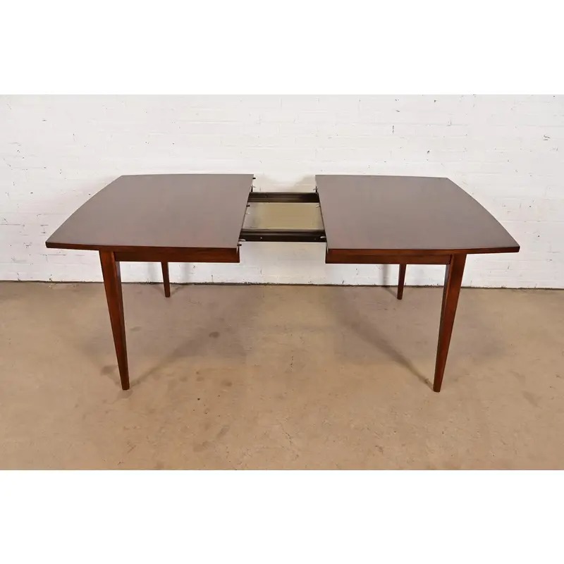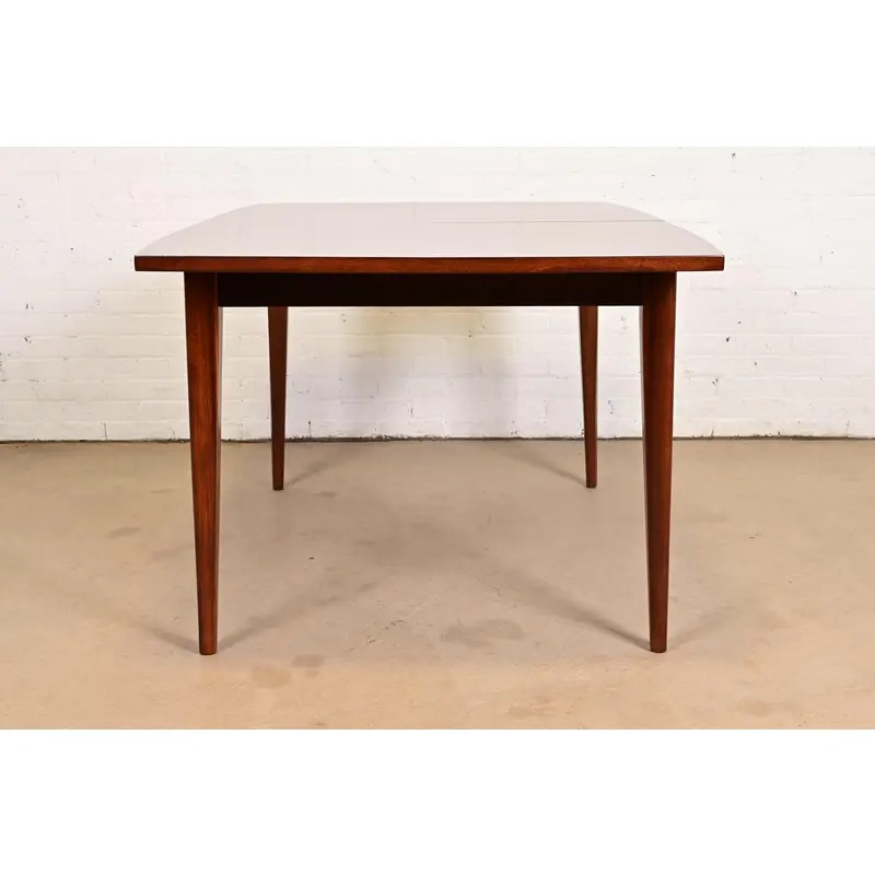 An exceptional Mid-Century Modern walnut boat-shaped extension dining table