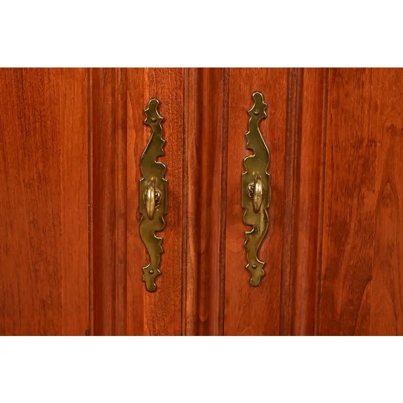 Carved cherry wood, with original brass hardware. Interior shelf is adjustable.
