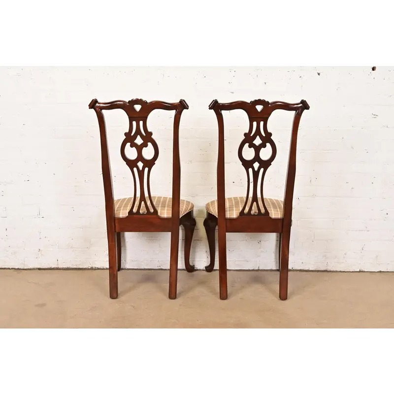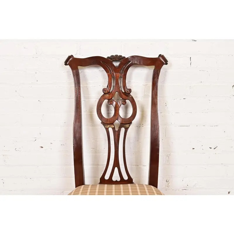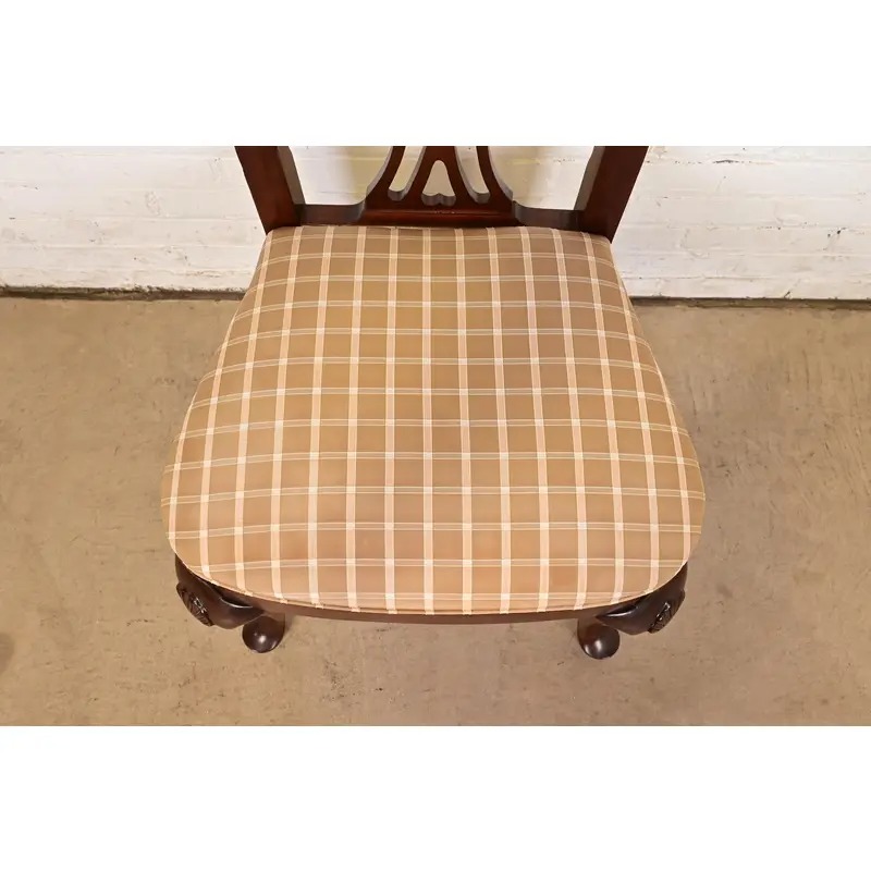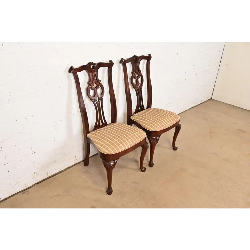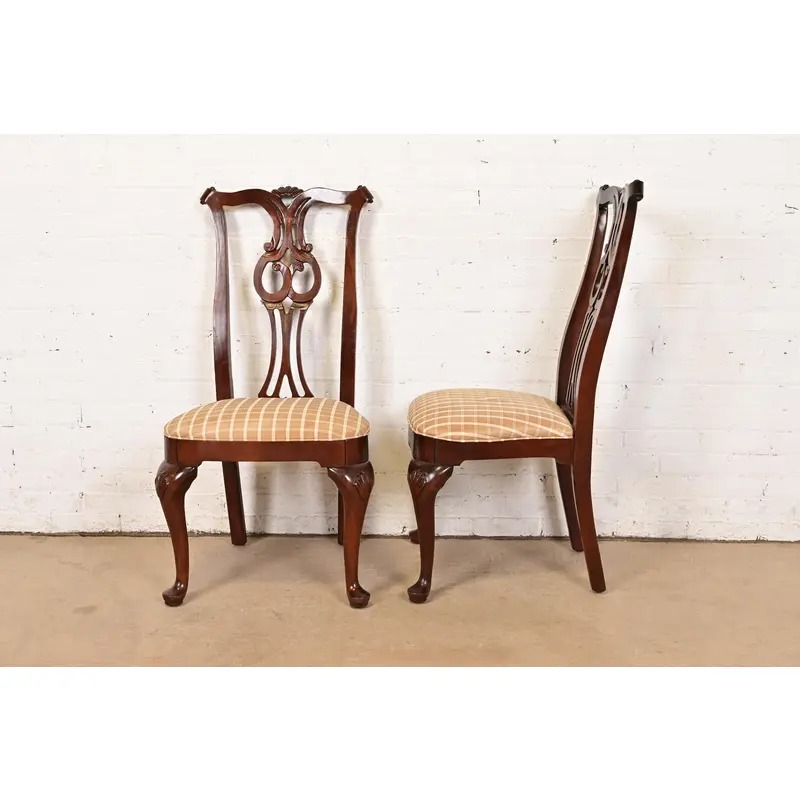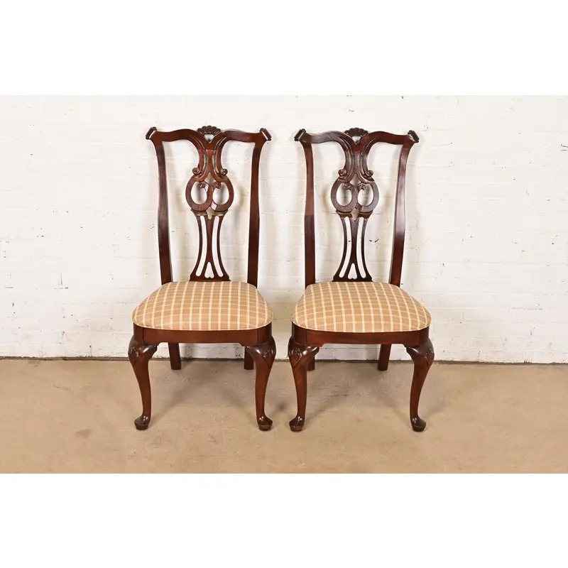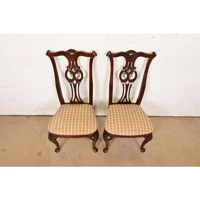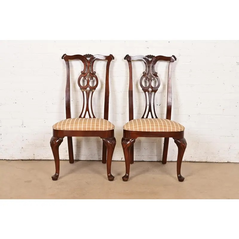 Century Furniture Georgian Carved Mahogany Side Chairs or Dining Chairs, Pair