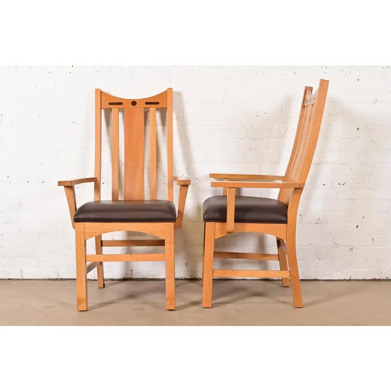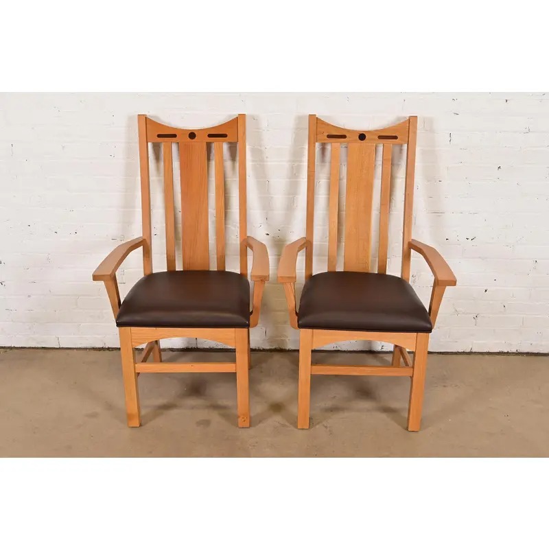 An exceptional pair of Mission or Arts & Crafts style high back armchairs or dining captain chairs