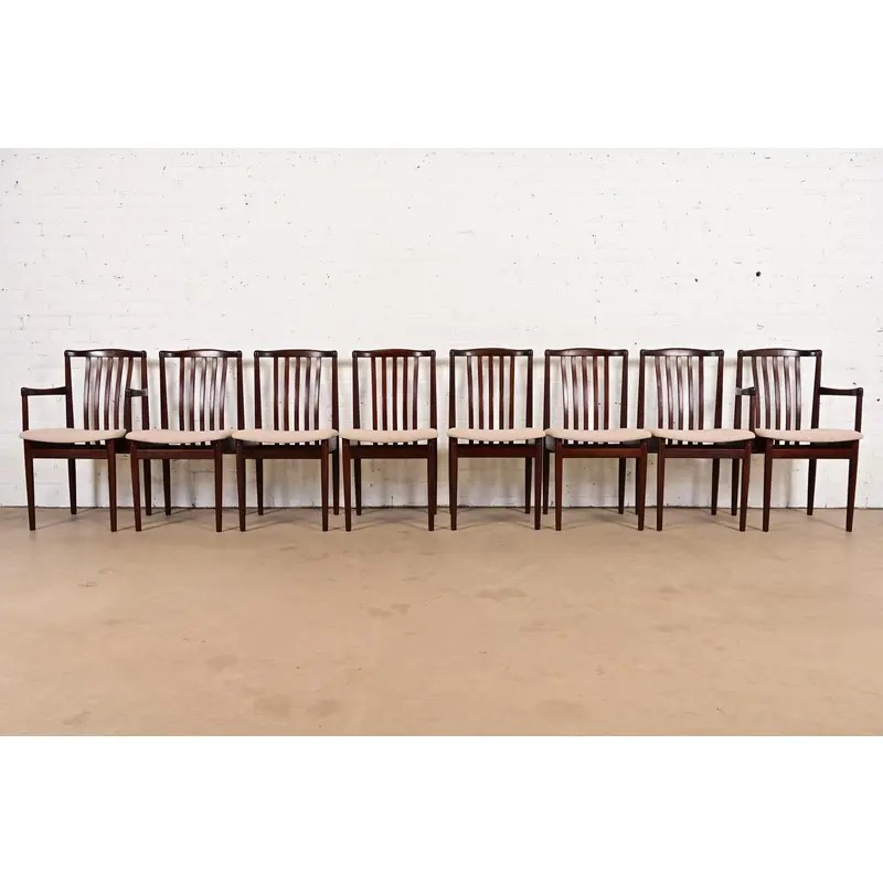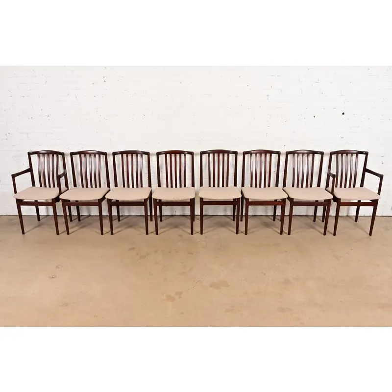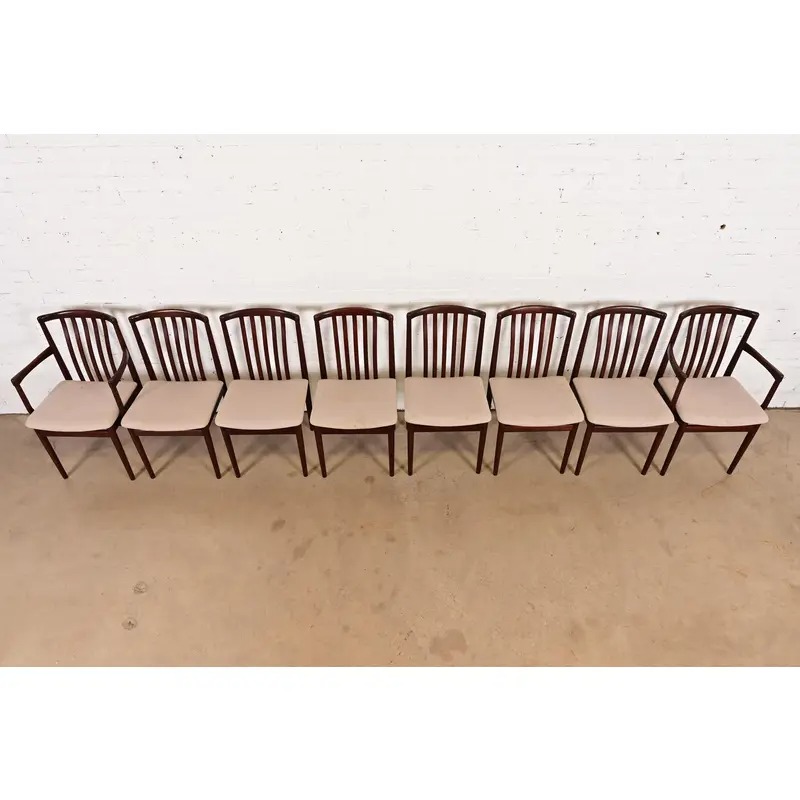 A sleek and stylish set of eight mid-century Danish Modern sculpted rosewood dining chairs