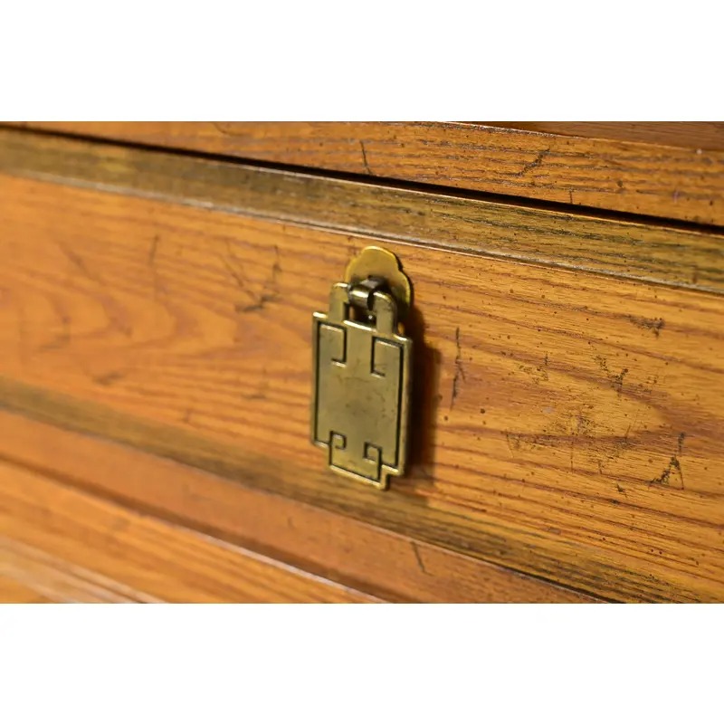 Carved teak, with original Asian-inspired brass hardware.