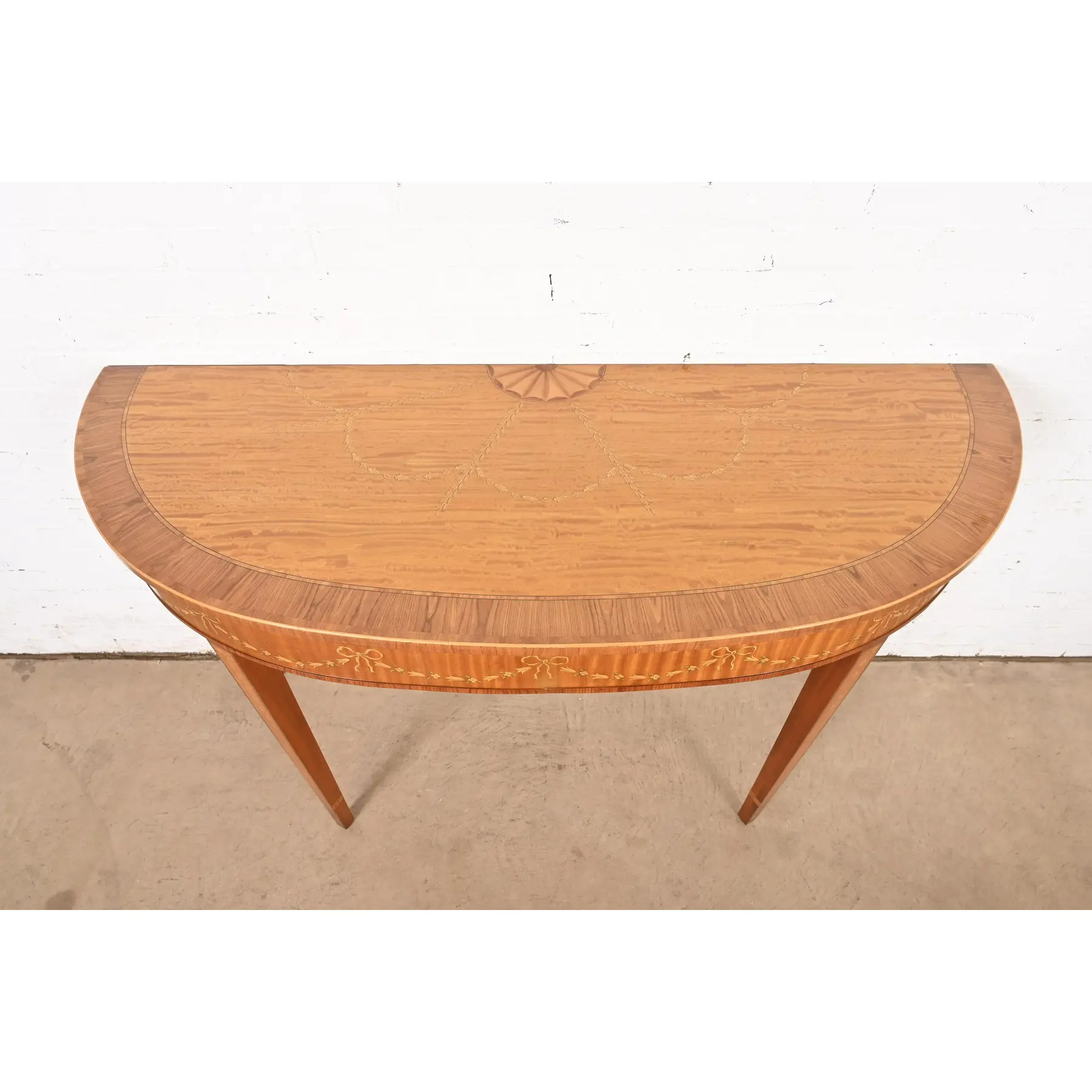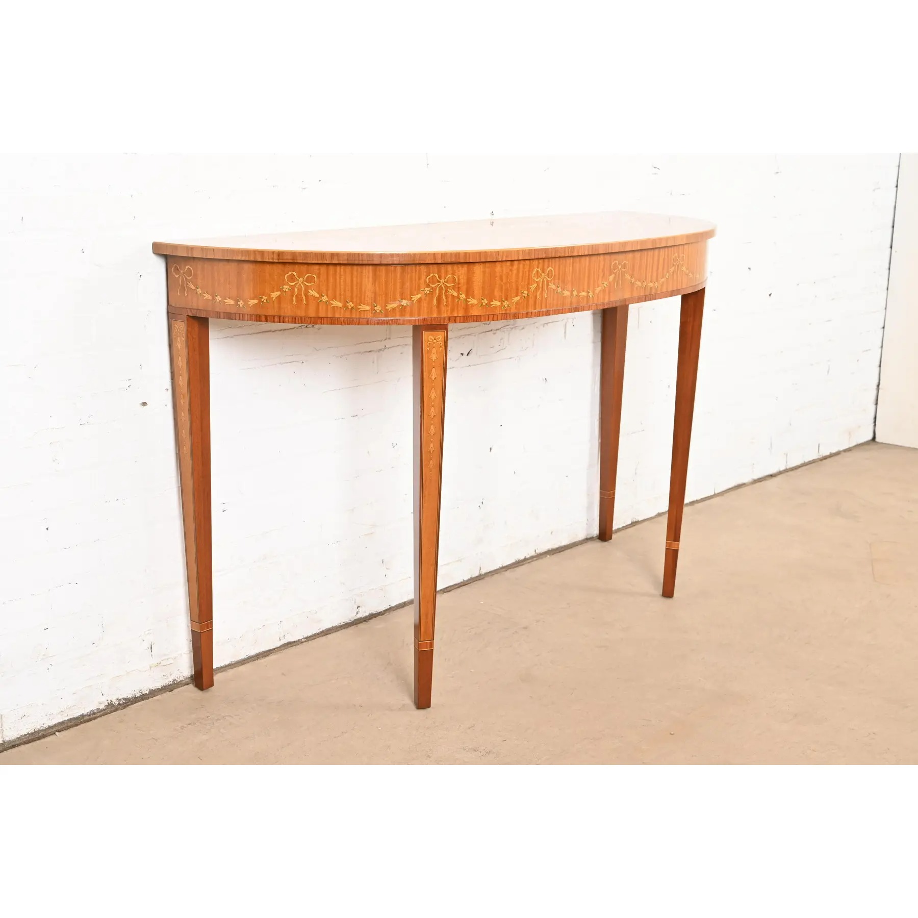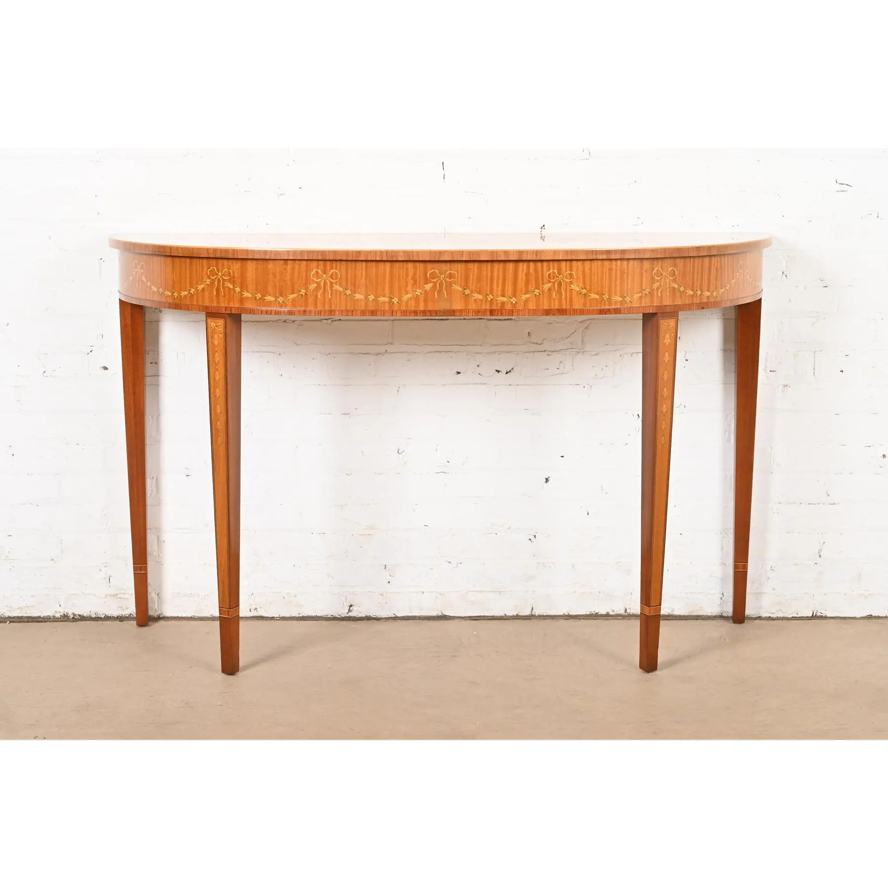 Drexel Heritage Federal Inlaid Satinwood Demilune Console Table