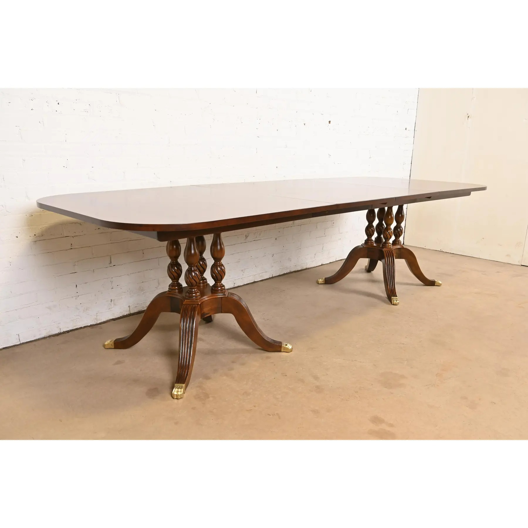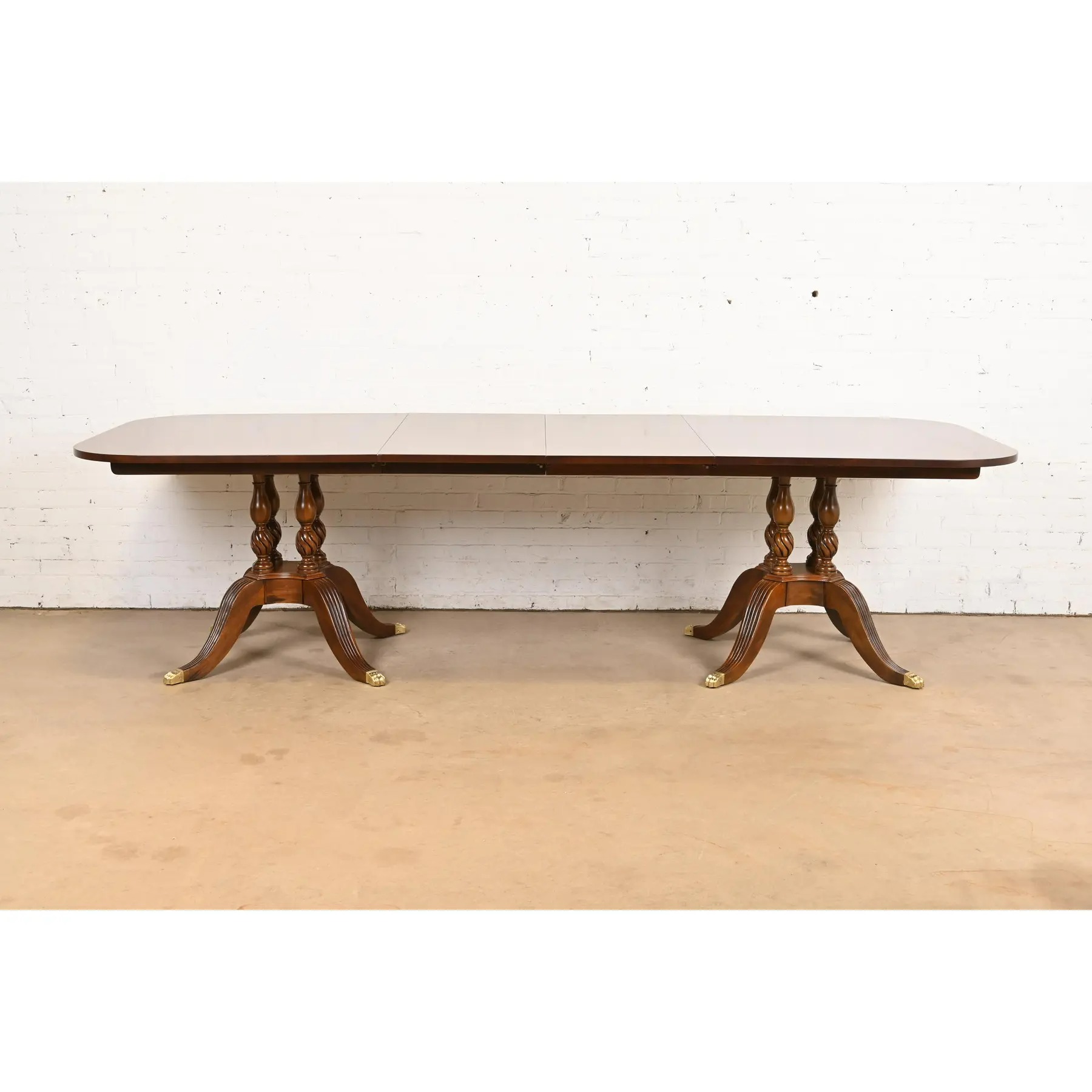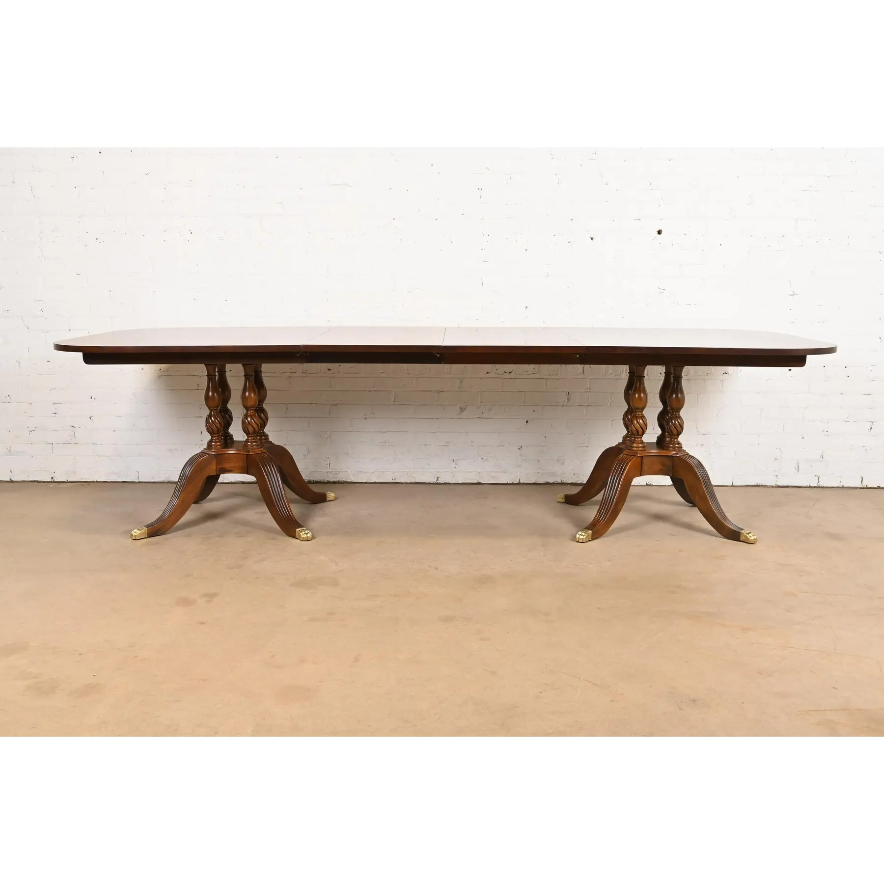 An exceptional Georgian or Regency style double pedestal extension dining table