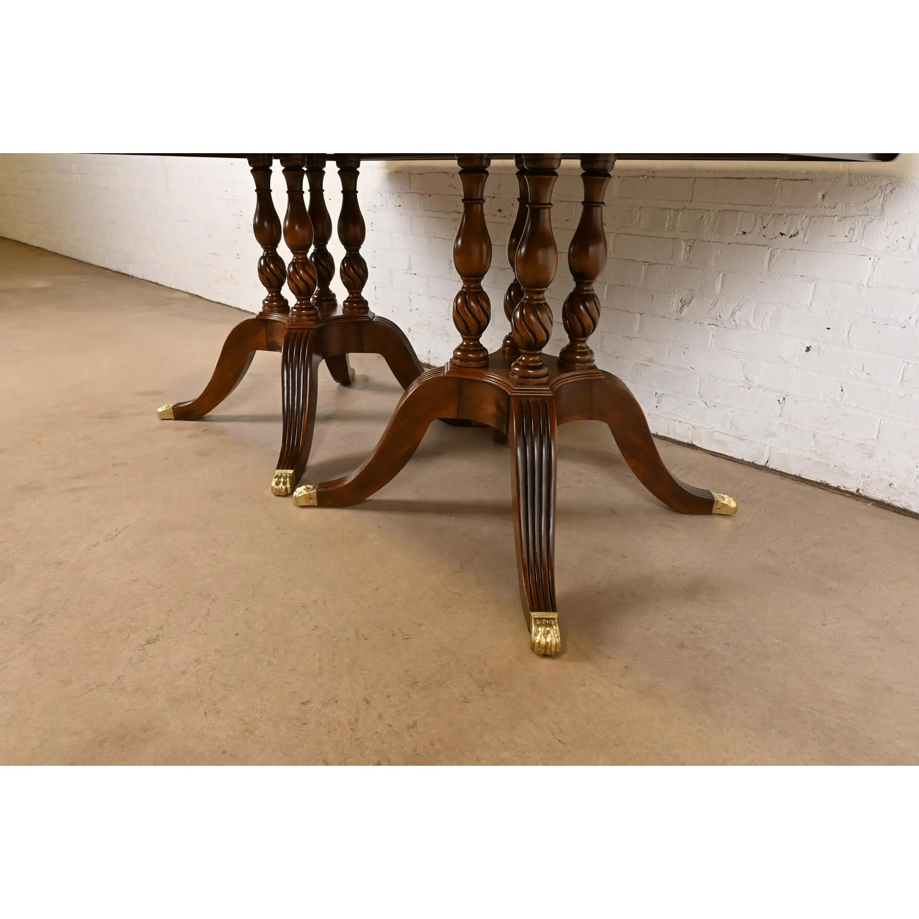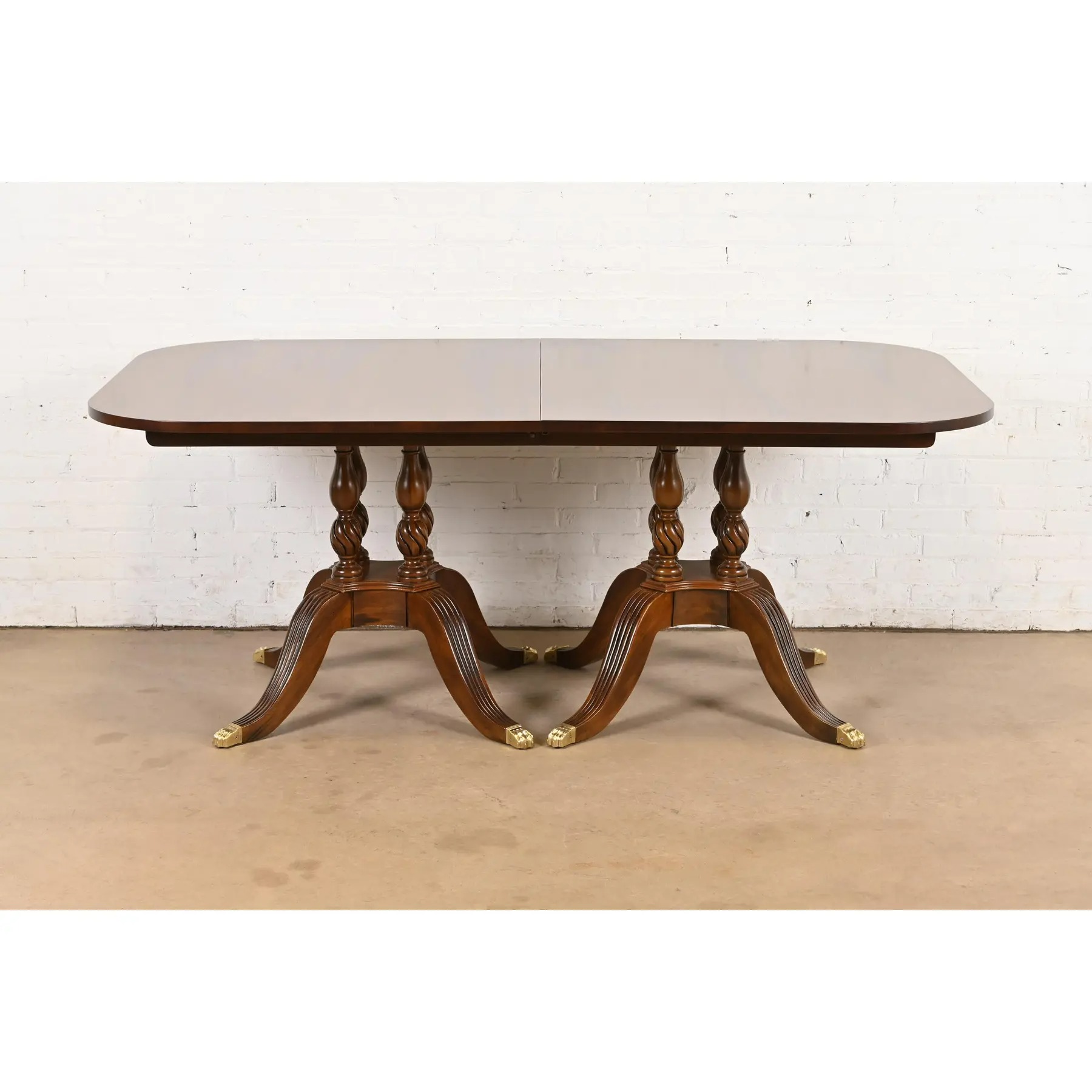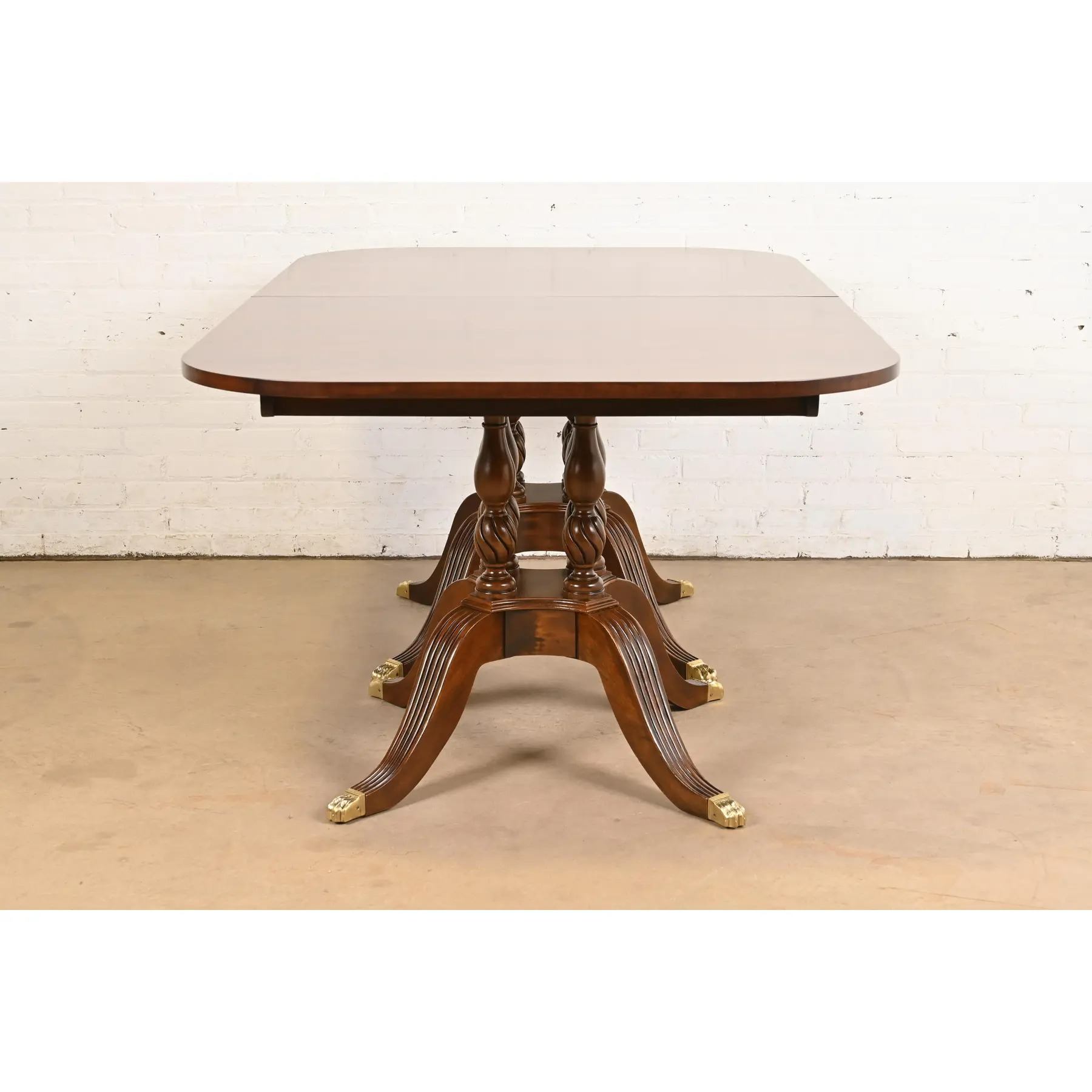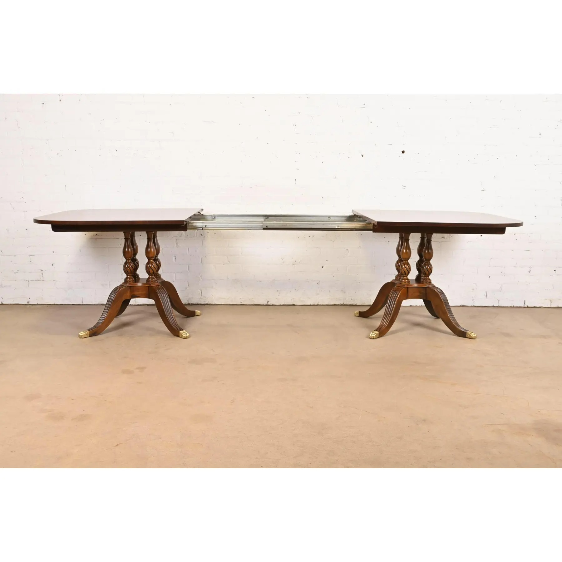 An exceptional Georgian or Regency style double pedestal extension dining table