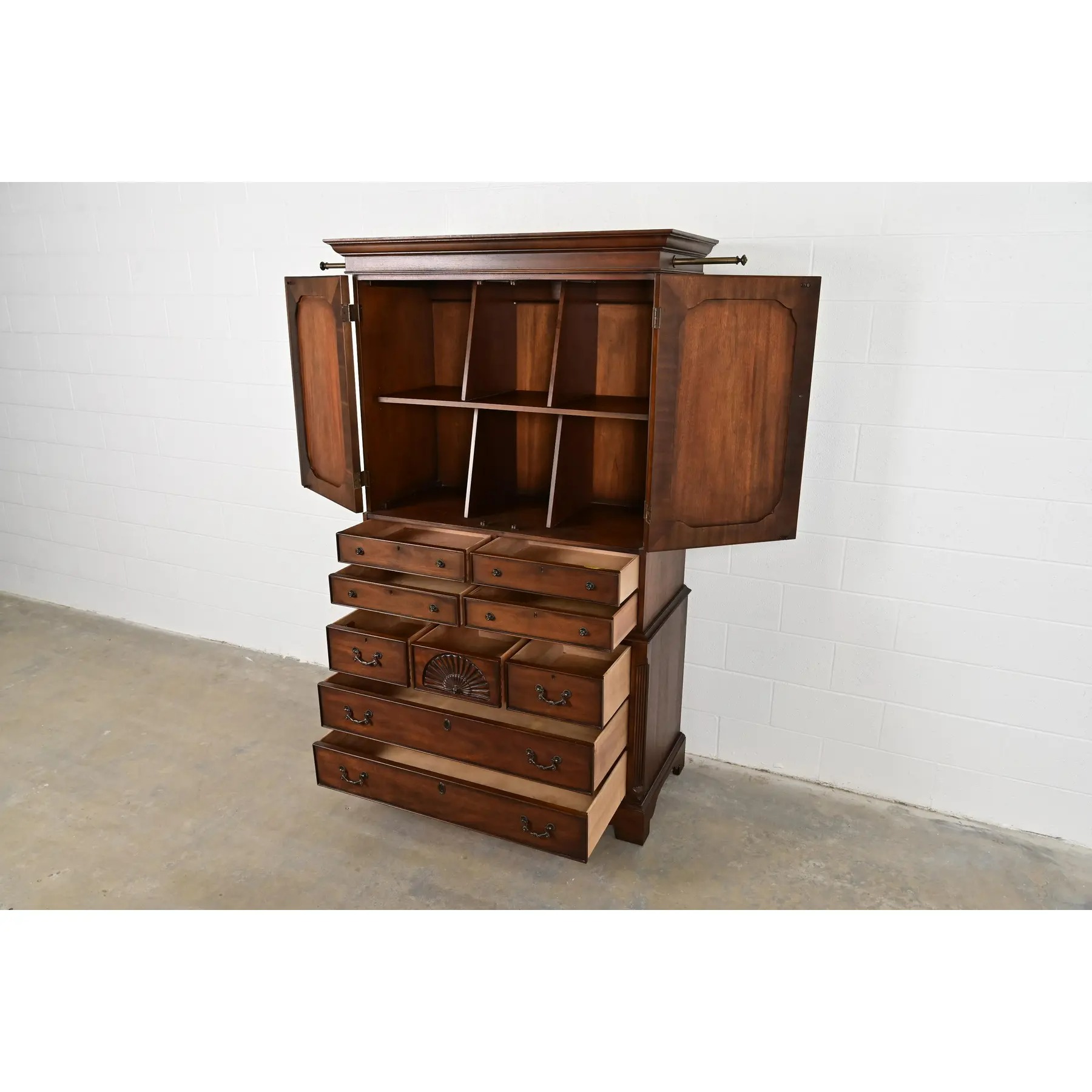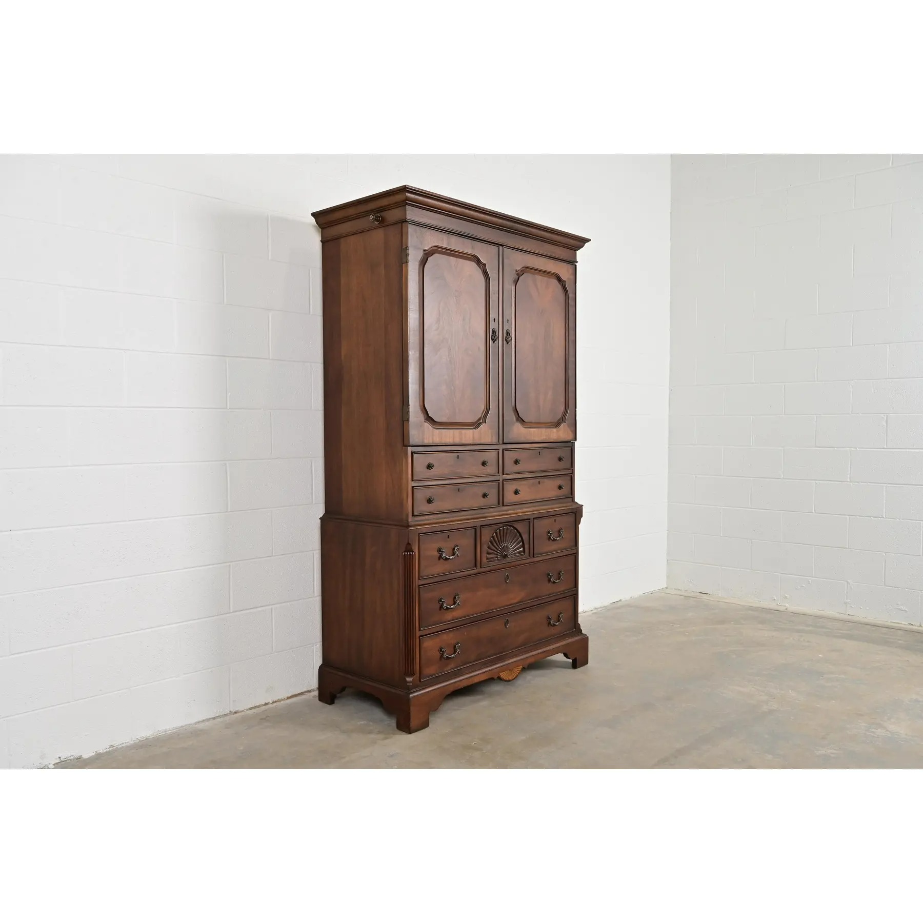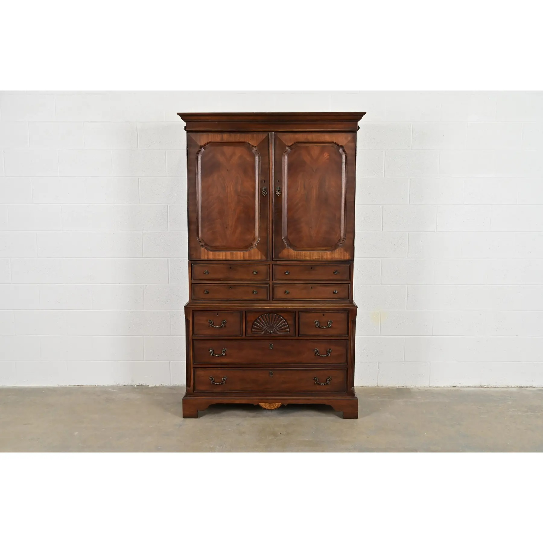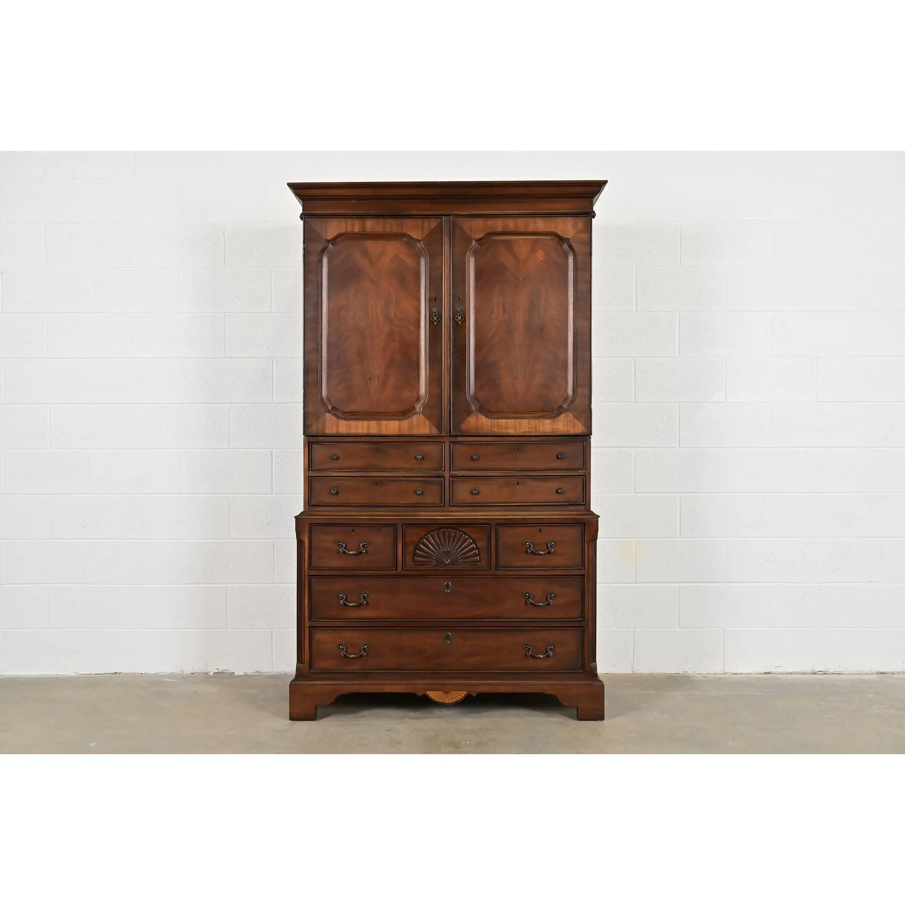 A gorgeous Georgian or Chippendale style armoire dresser, gentleman’s chest, or linen press