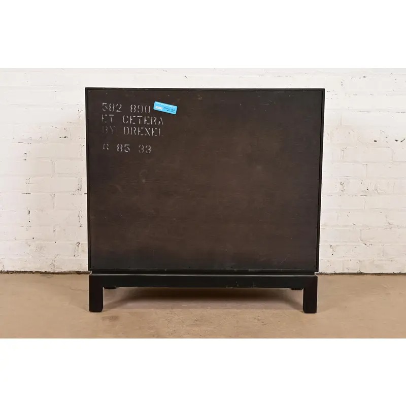 Black lacquered mahogany, with hand-painted Chinese scenes, and original Asian-inspired brass hardware.