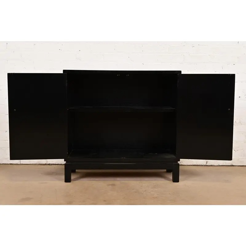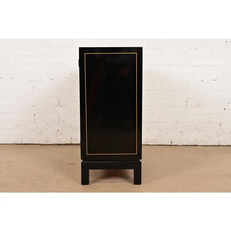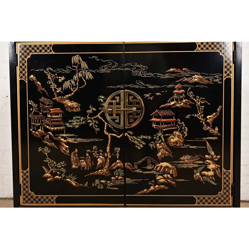 Drexel Heritage Hollywood Regency Chinoiserie Hand-Painted Black Lacquered Bar Cabinet
