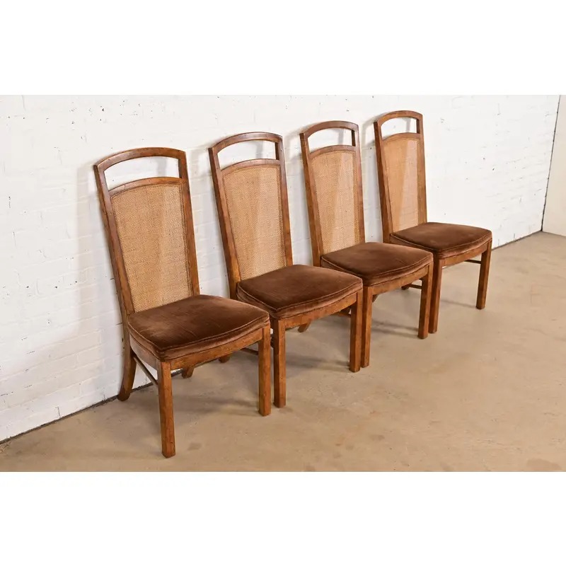 A gorgeous set of four of Mid-Century Modern high back side chairs or dining chairs