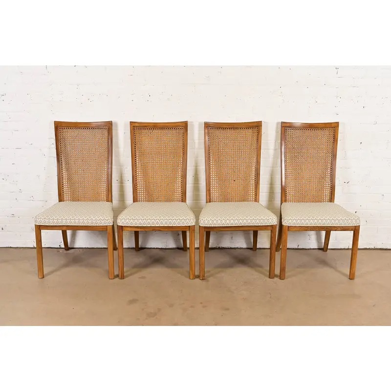 A gorgeous set of four Mid-Century Modern high back side chairs or dining chairs