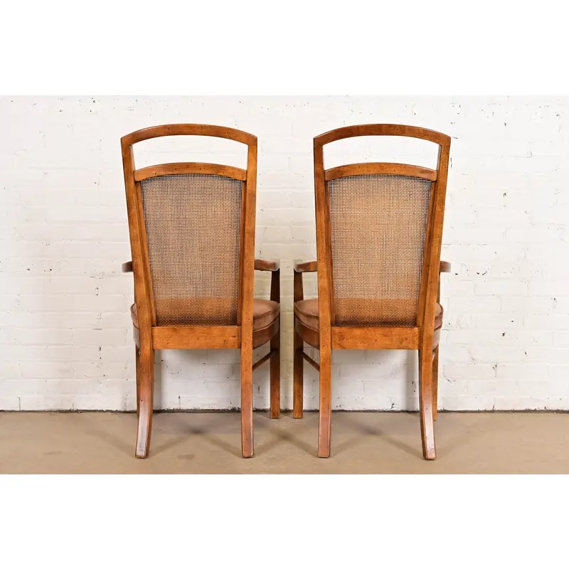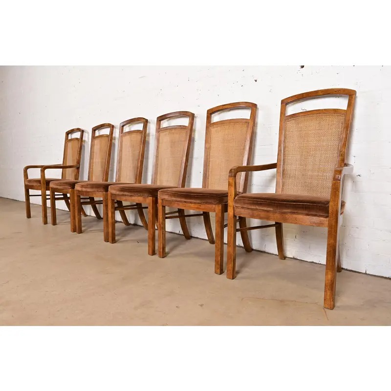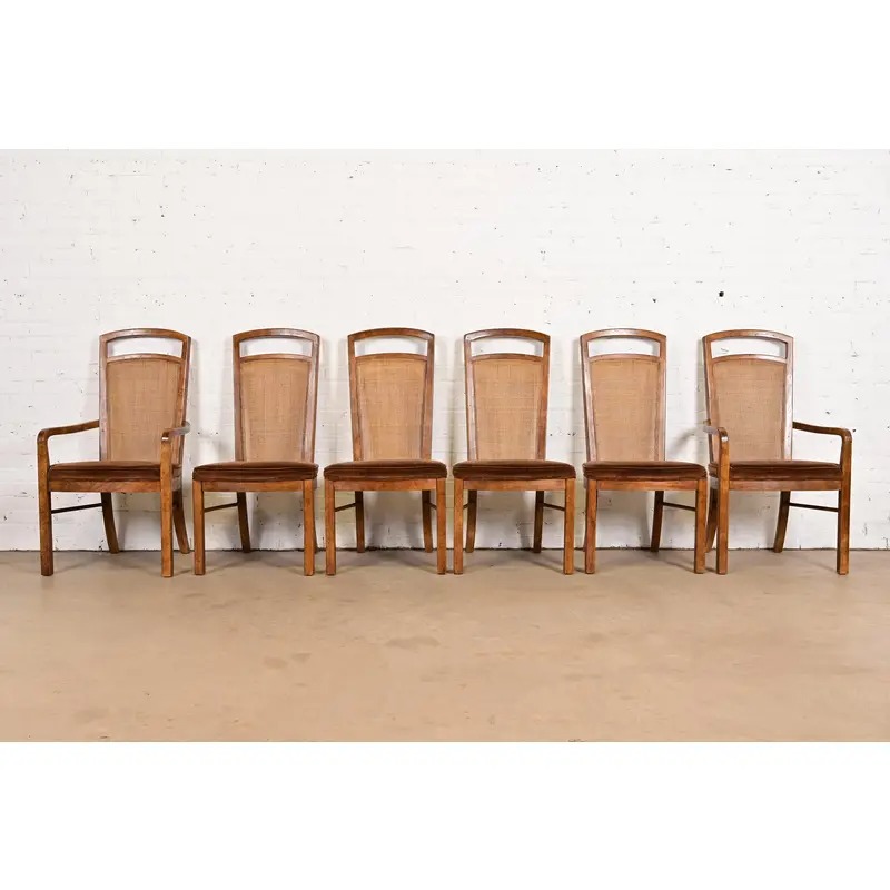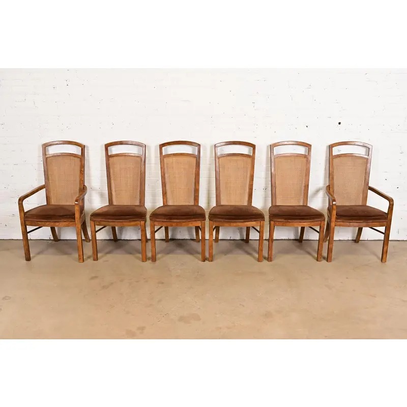Drexel Heritage Mid-Century Modern Walnut and Cane High Back Dining Chairs, Set of Six